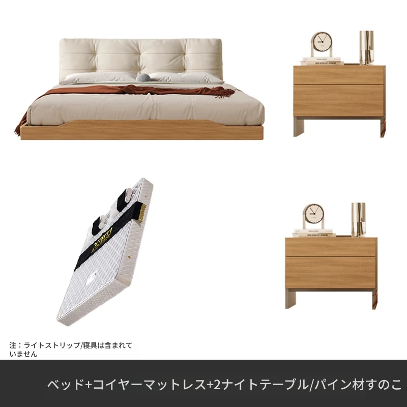 アッシュウッドベッド【1.8CMパインスラット】+ナイトスタンド*2+エココイヤーマットレス