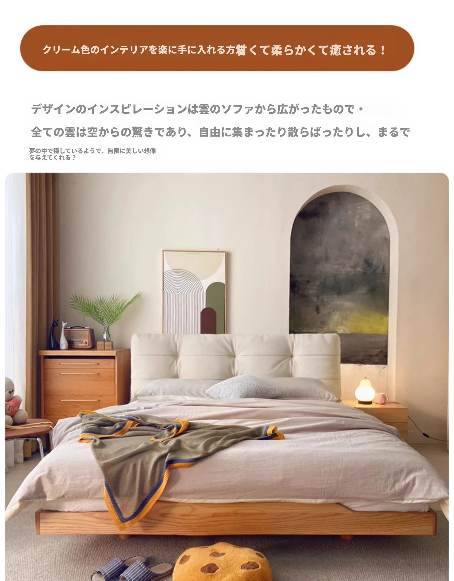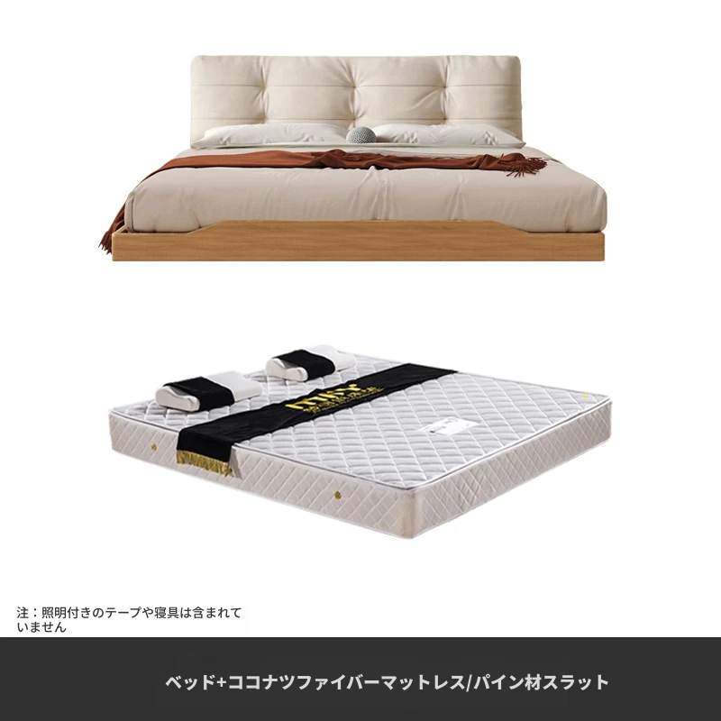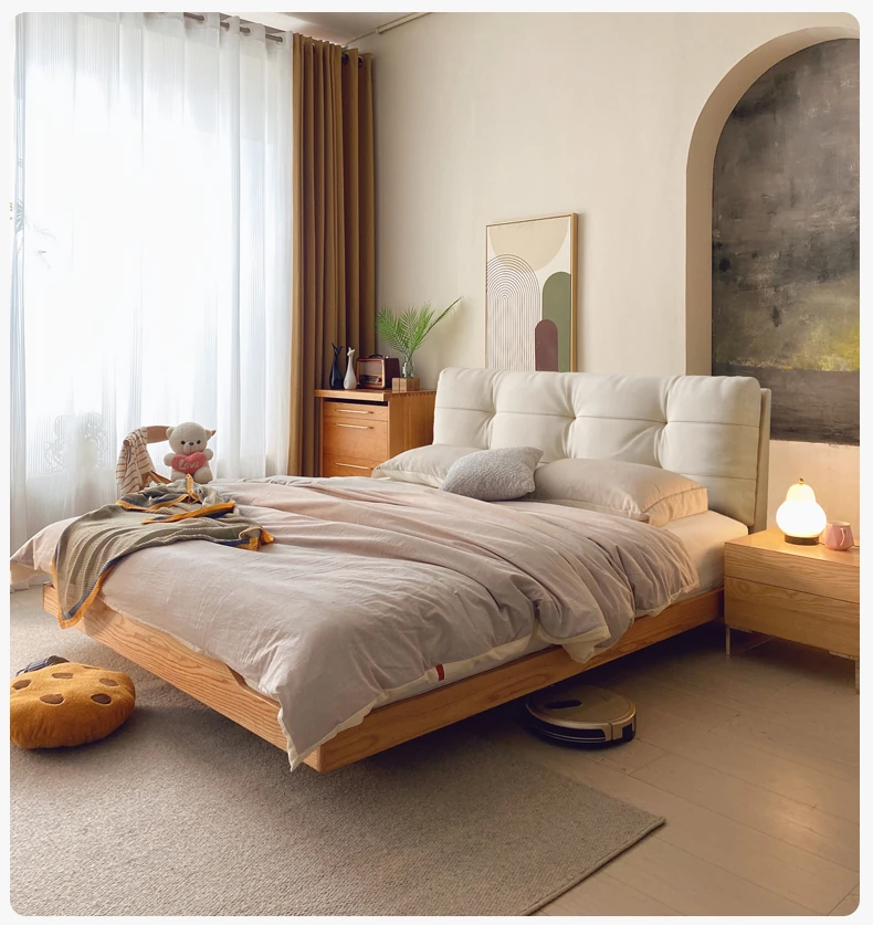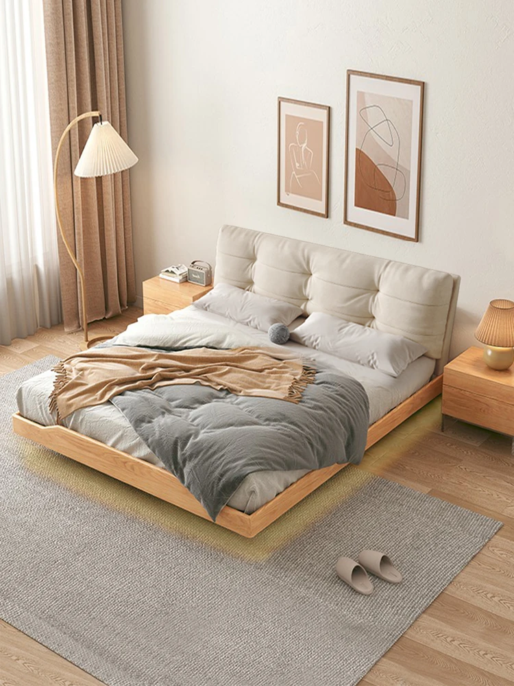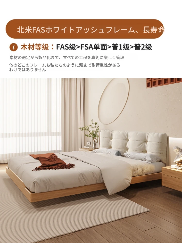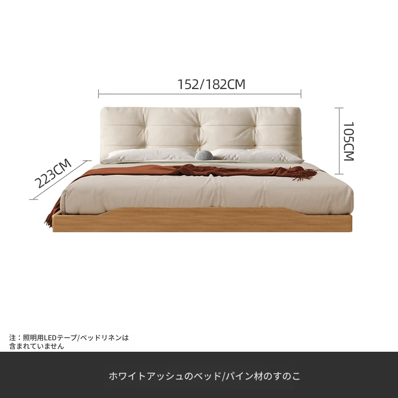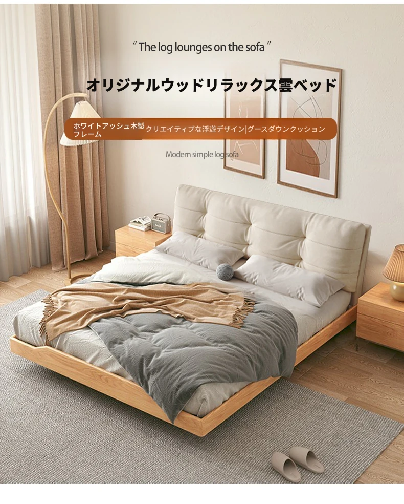 天然木材×浮雲デザインの洗えるファブリックベッド:心地よい1.8m/1.5mシンプル和モダン風ダブルベッド - 癒やしの主寝室にぴったりの侘寂スタイル!