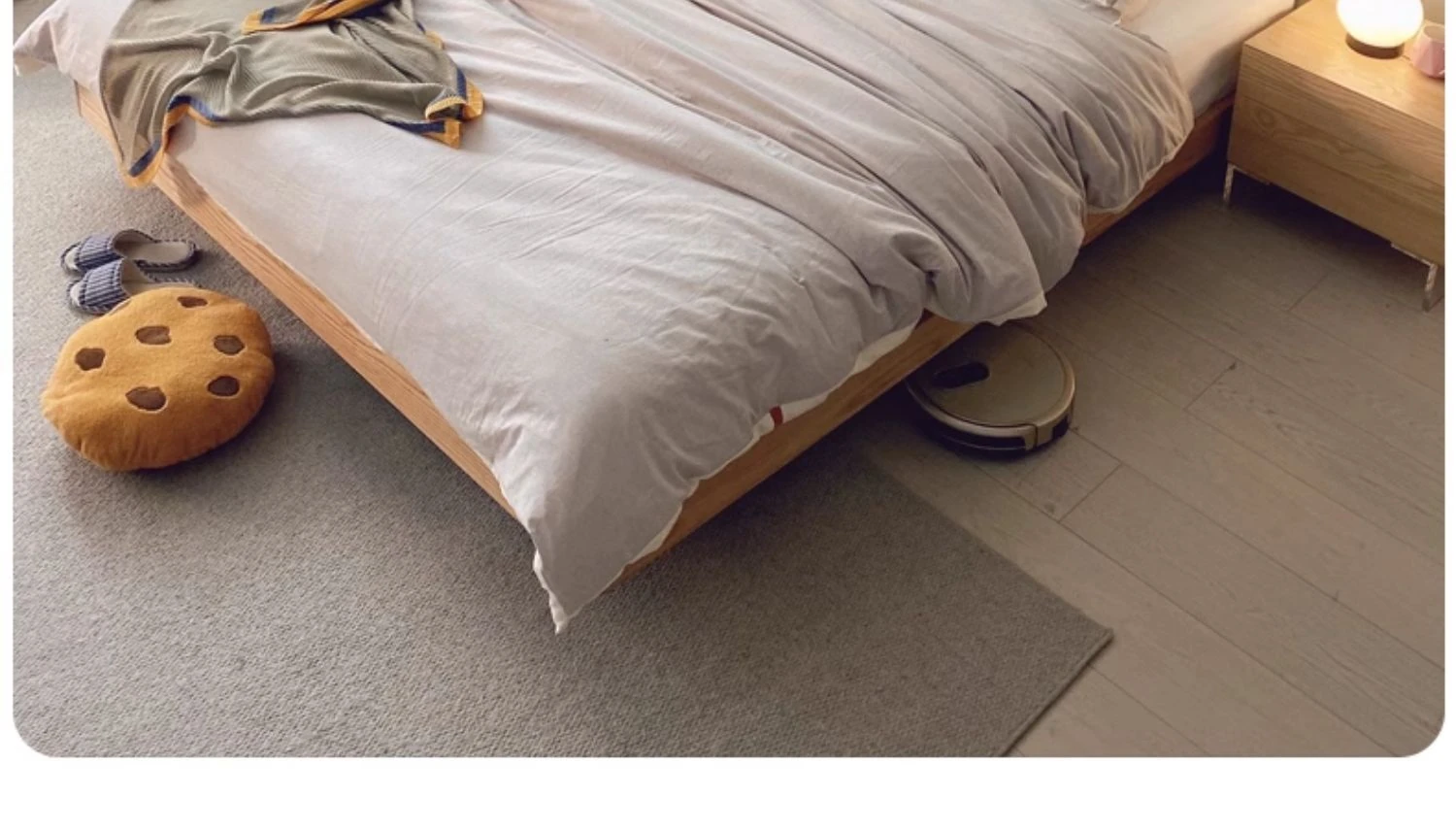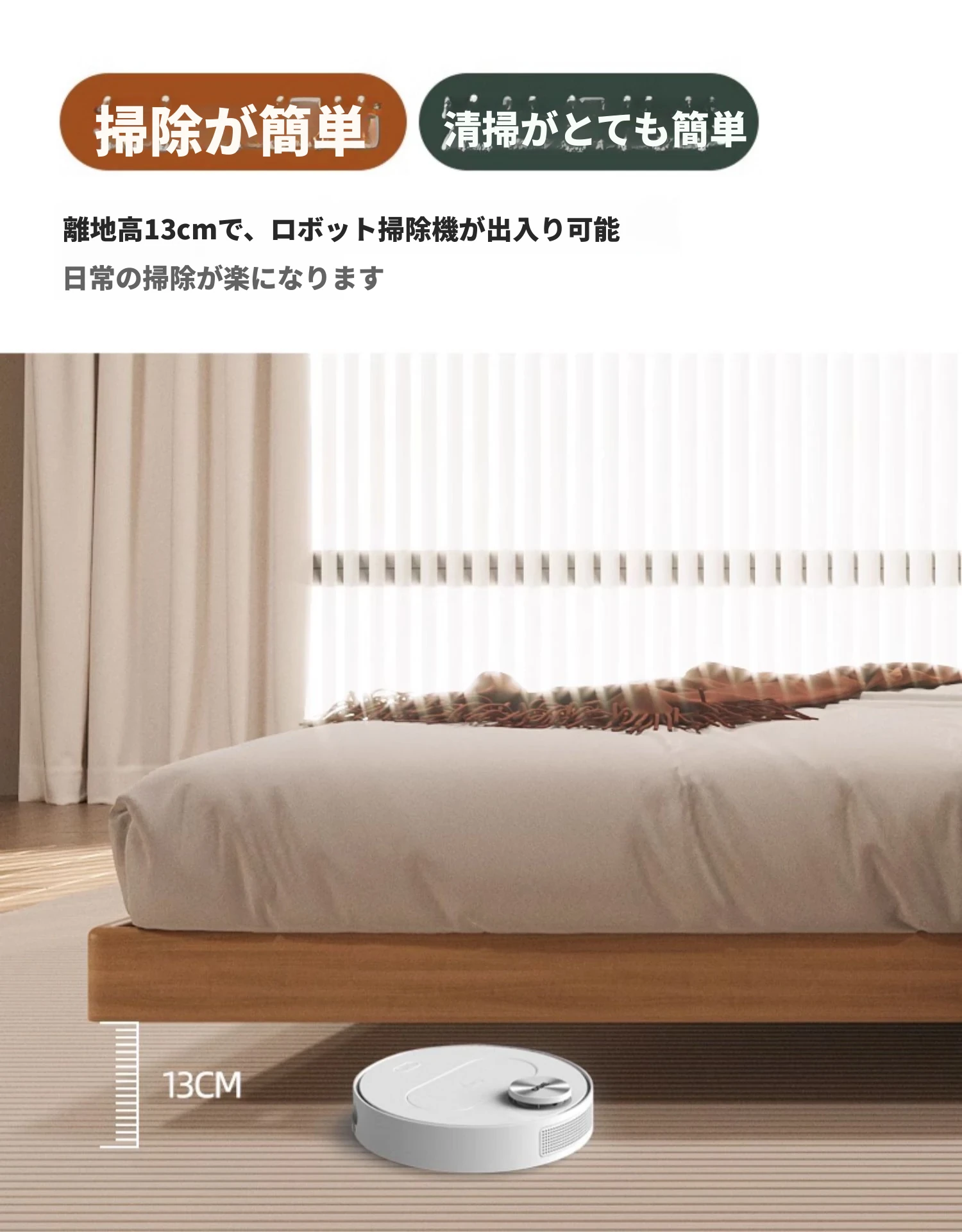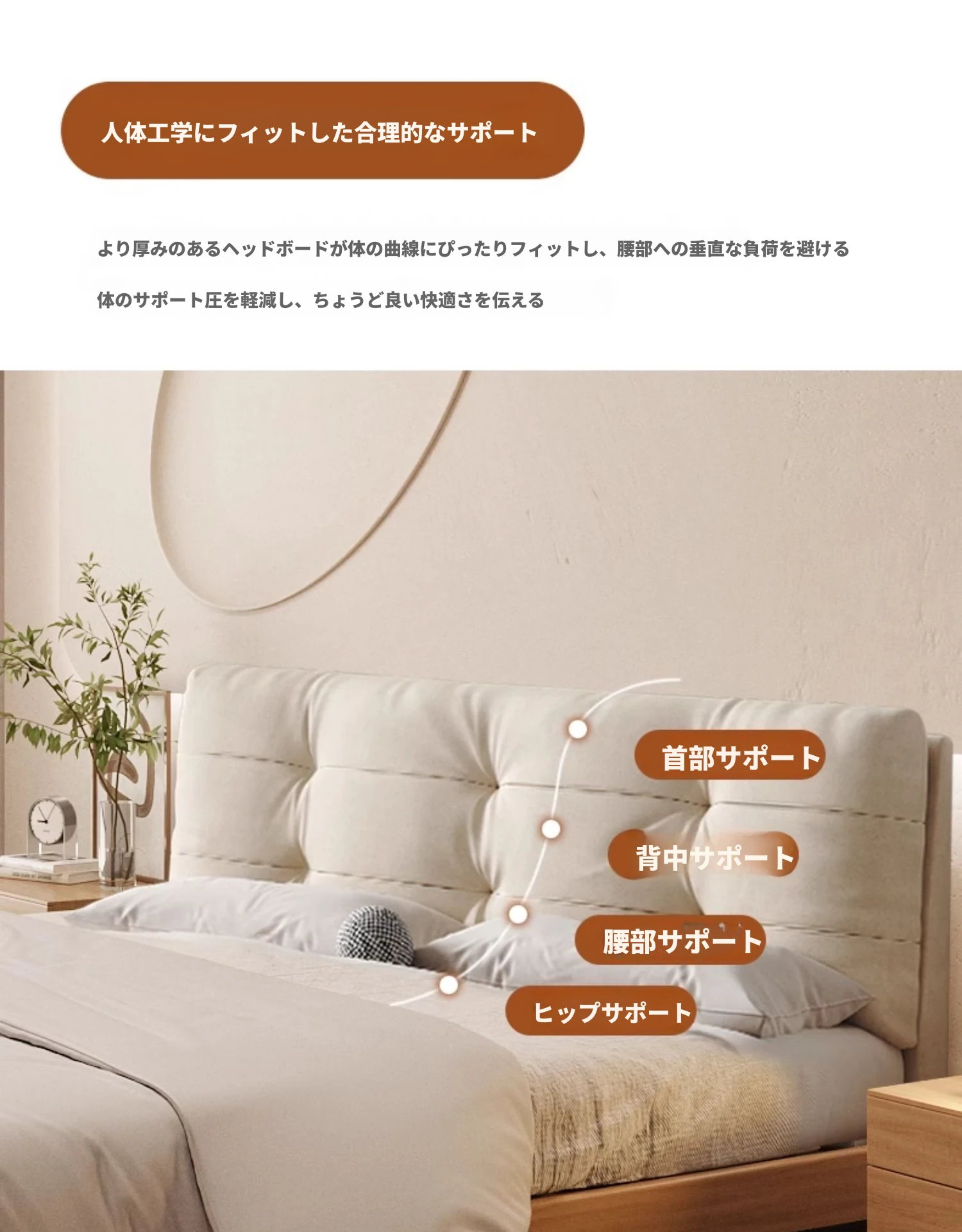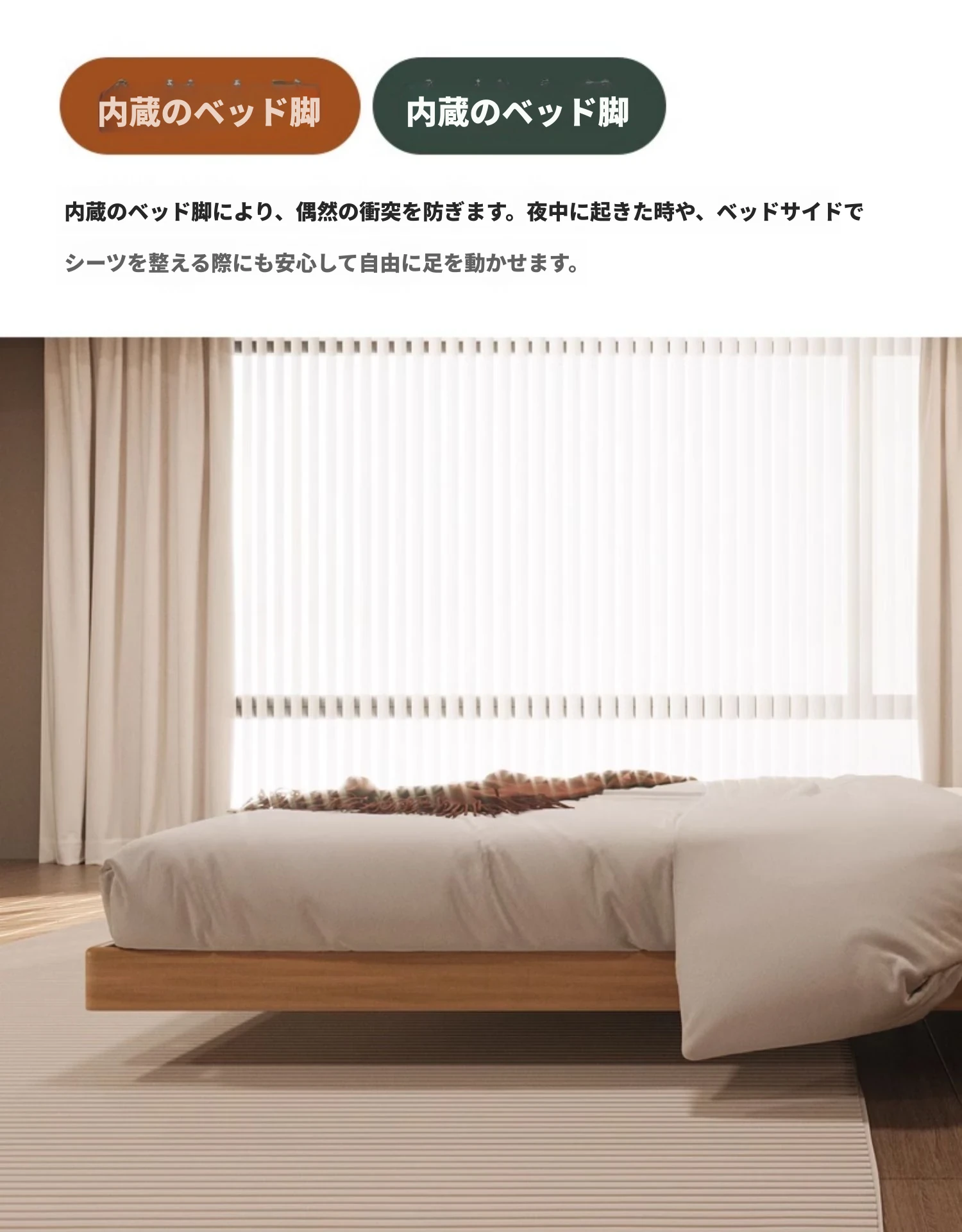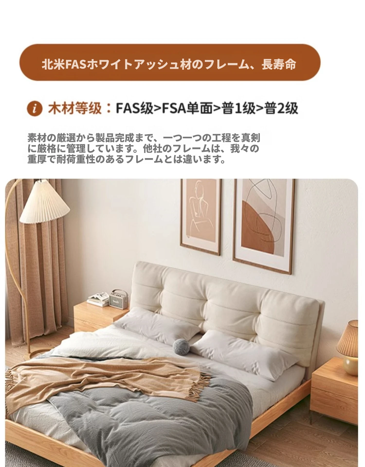 天然木材×浮雲デザインの洗えるファブリックベッド:心地よい1.8m/1.5mシンプル和モダン風ダブルベッド - 癒やしの主寝室にぴったりの侘寂スタイル!