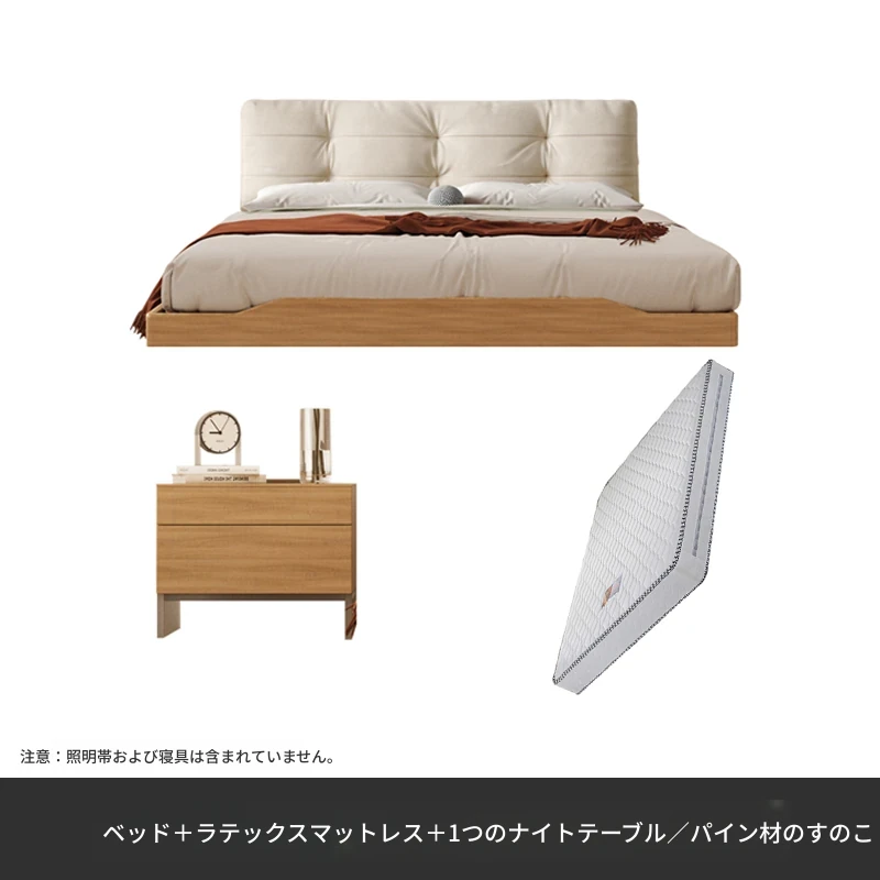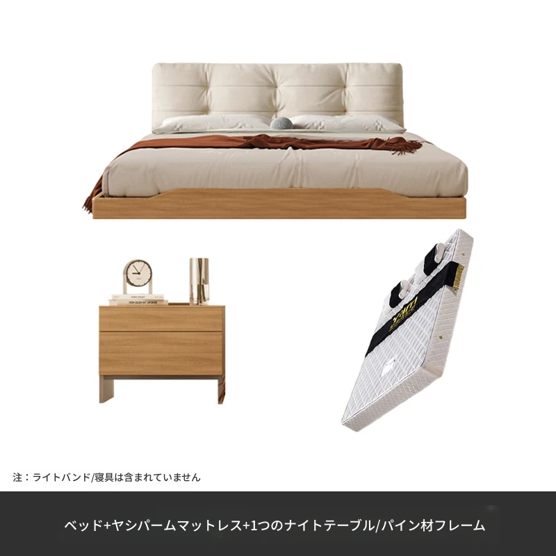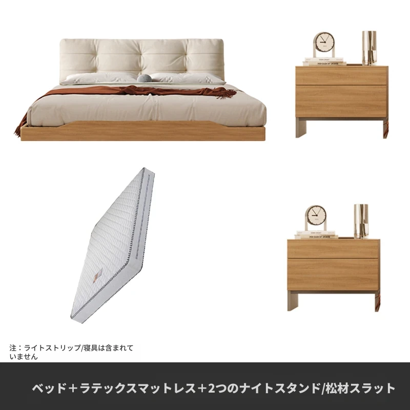 アッシュウッドベッド【1.8CMパインスラット】+ナイトスタンド*2+ラテックスマットレス