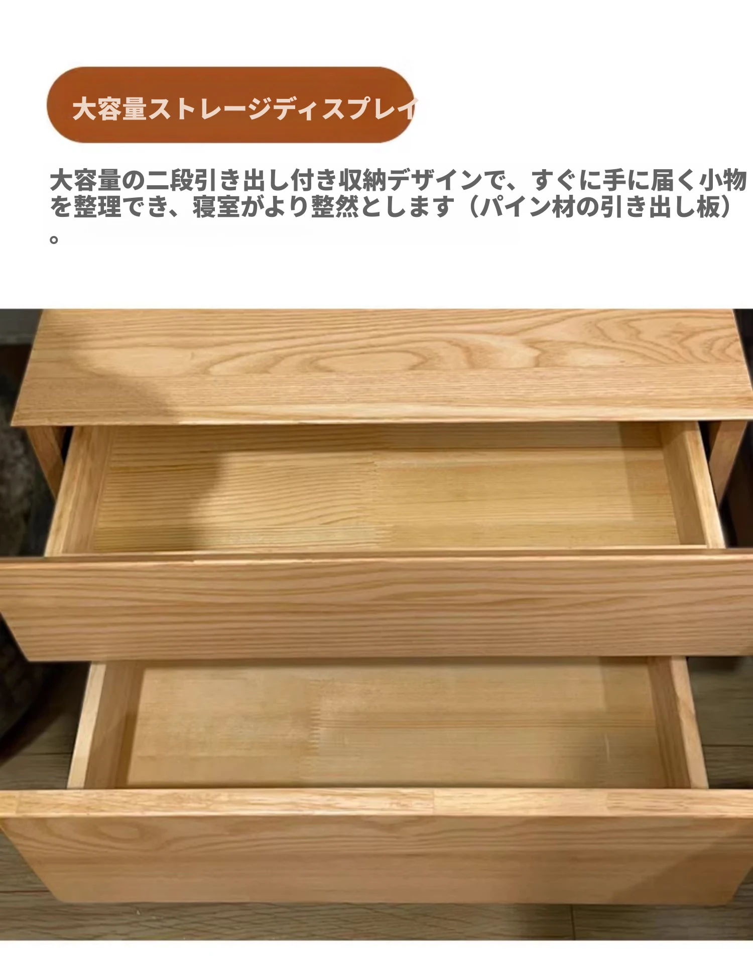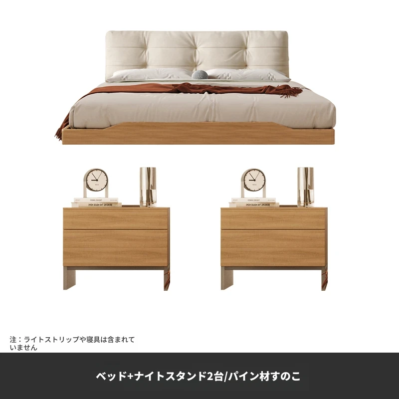 アッシュウッドベッド【1.8CMパインスラット】+ナイトスタンド*2