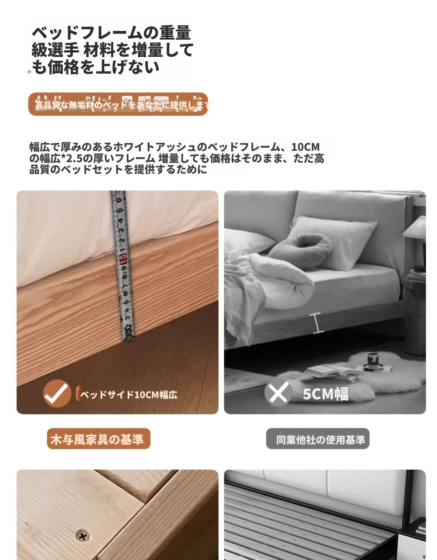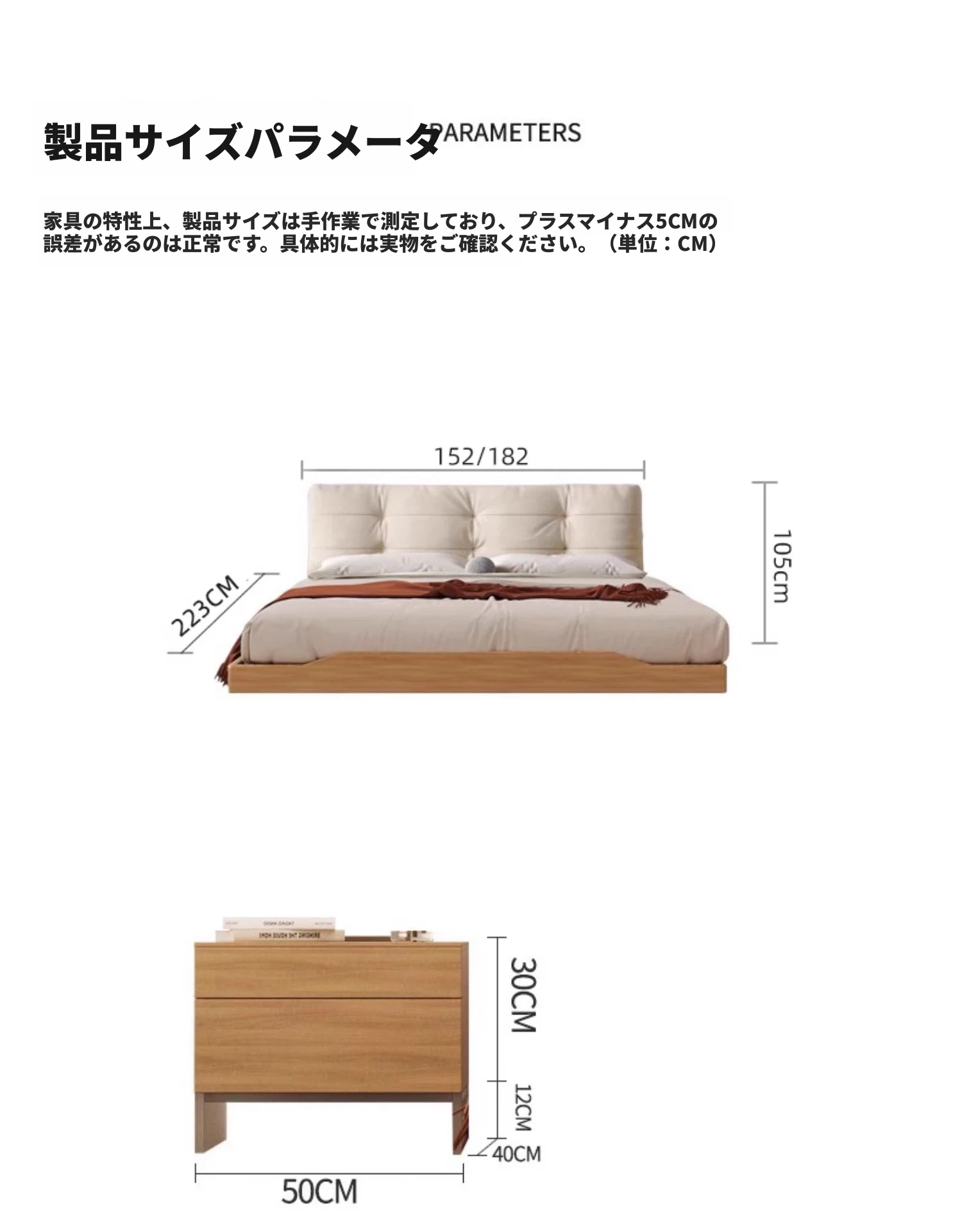 アッシュウッドベッド【1.8CMパインスラット】+ナイトスタンド*1