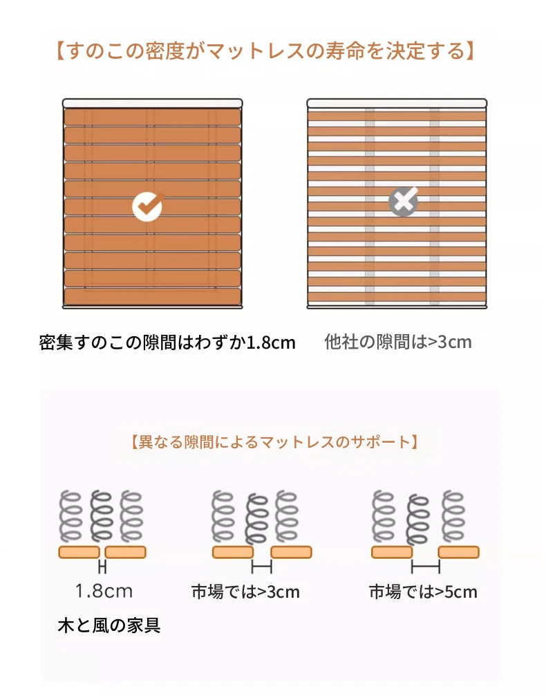 アッシュウッドベッド【1.8CMパインスラット】+コイヤーマットレス