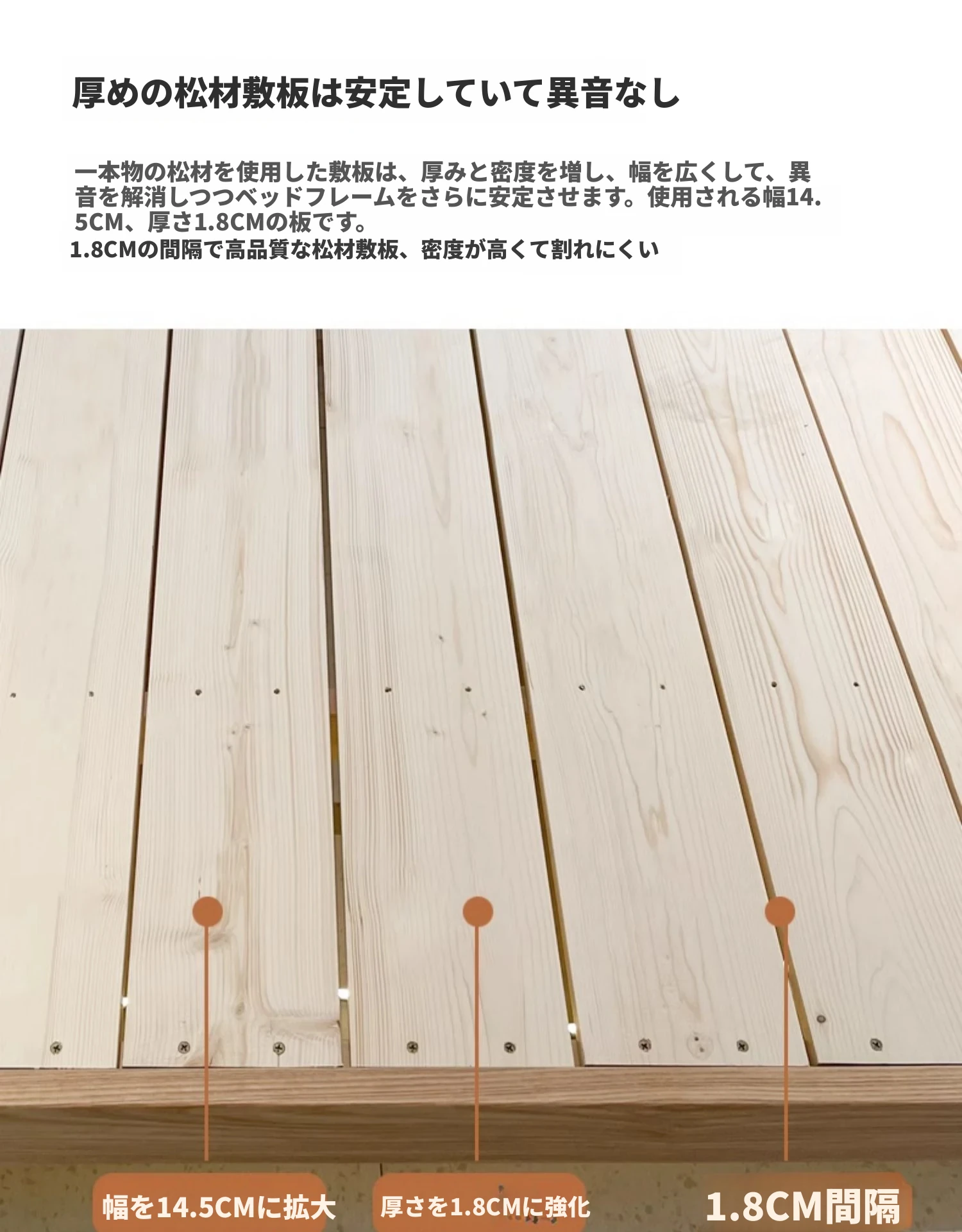 アッシュウッドベッド【1.8CMパインスラット】ライトストリップなし
