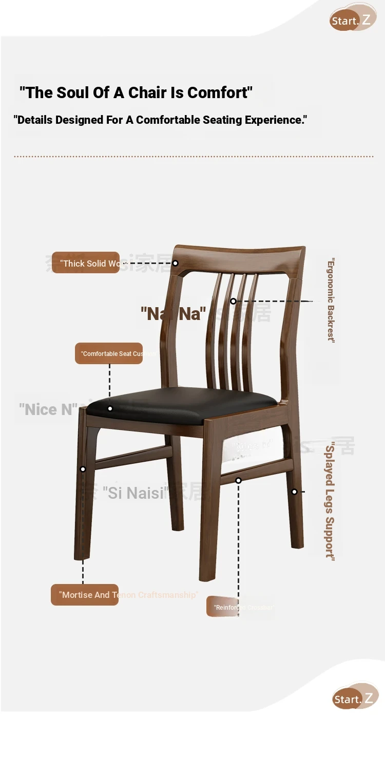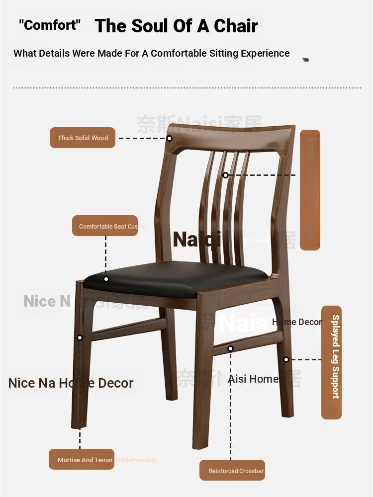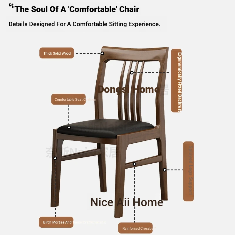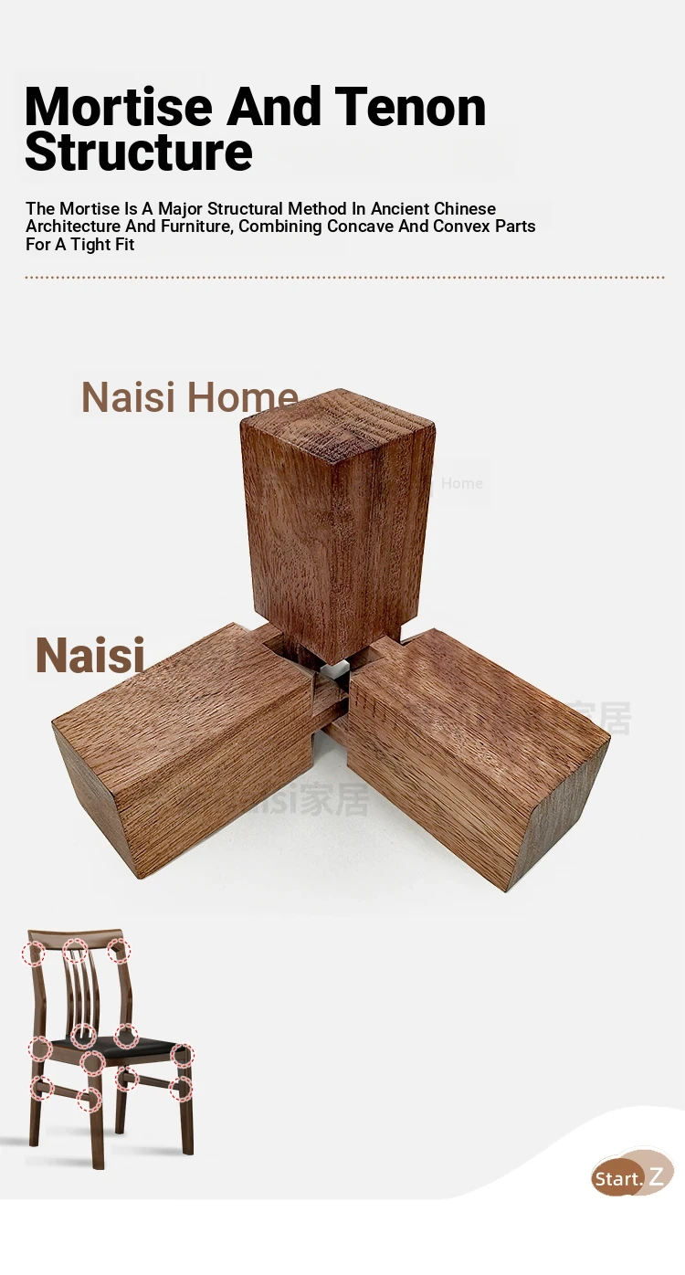 Solid Wood Mortise and Tenon Chair - Elegant Chinese Style Dining Chair for Hotels and Restaurants, Comfortable with Backrest, Perfect for Home Dining Rooms