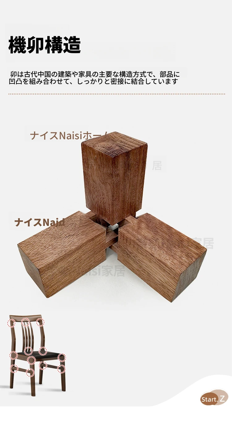 全実木製の椅子!伝統的な榫卯工法で作られた中華スタイルの高級レストラン用ダイニングチェア。洗練されたデザインで、家庭でもホテルのような上質な空間を演出します。快適な背もたれ付きで、お食事がもっと楽しくなる!