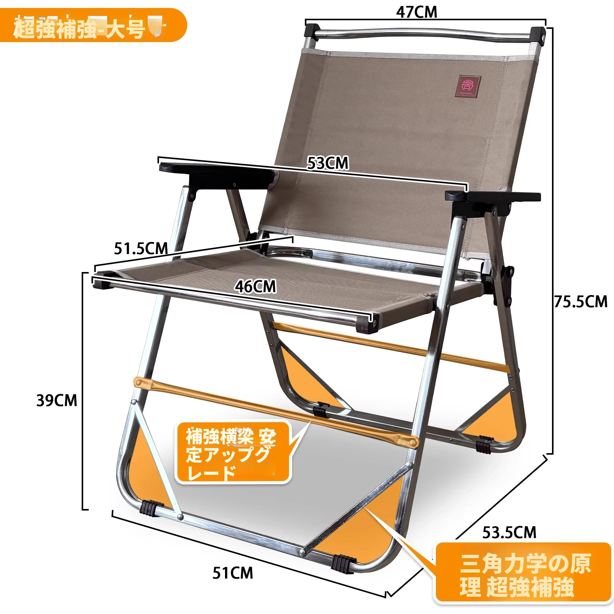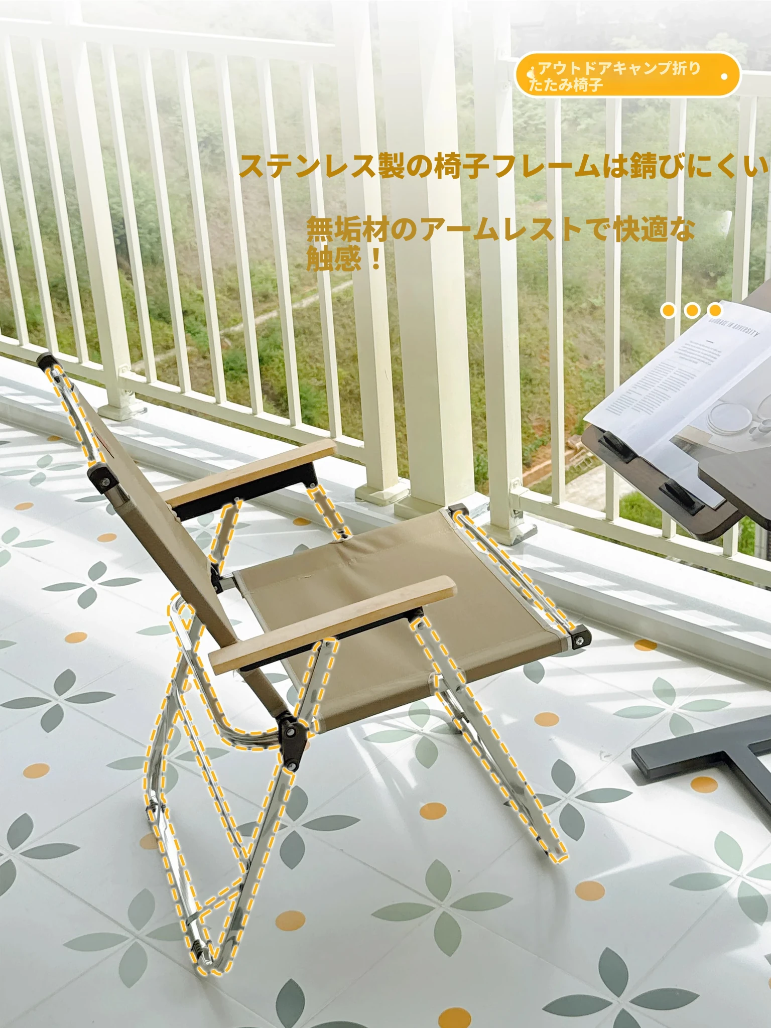 頑丈で持ち運びに便利なステンレス製折りたたみチェア!アウトドアやキャンプに最適、背もたれ付きで快適さも抜群。耐久性に優れたクミットチェアで、あなたの冒険をサポートします!