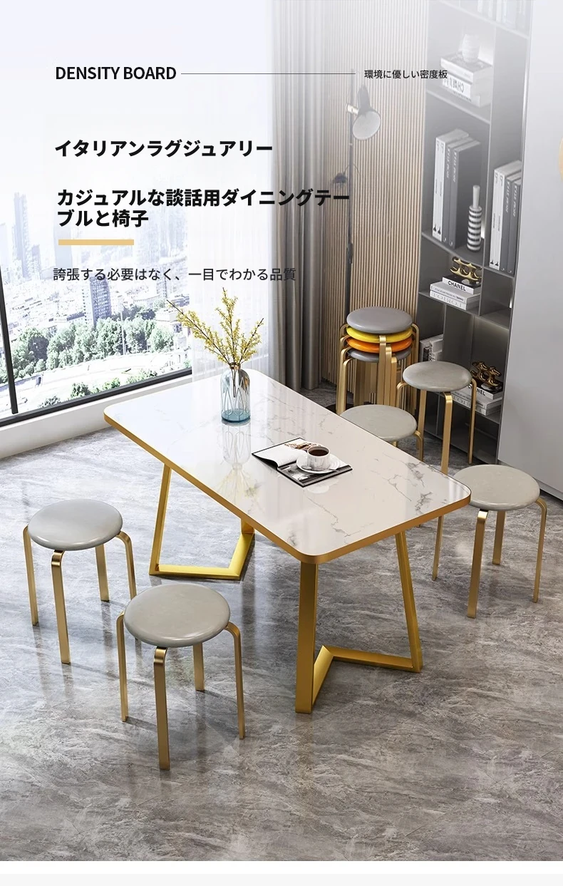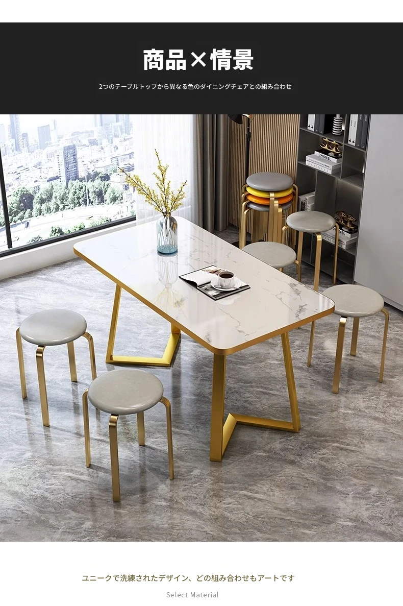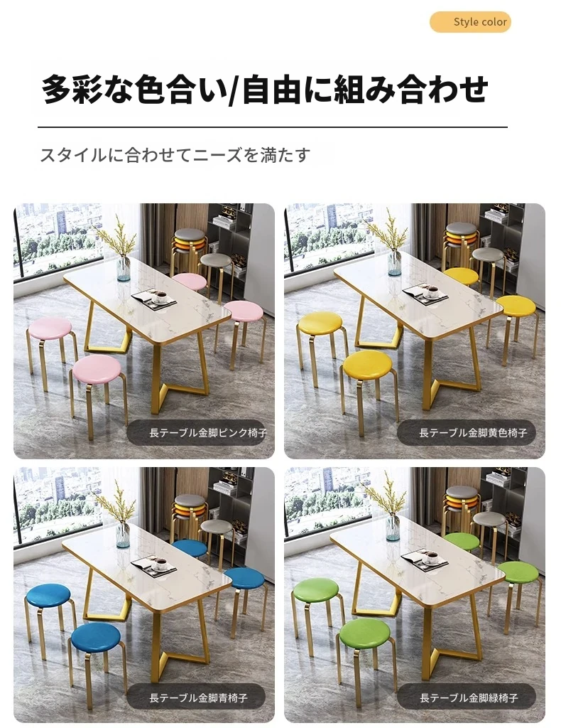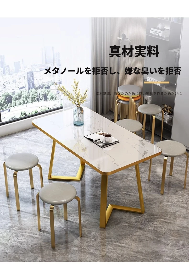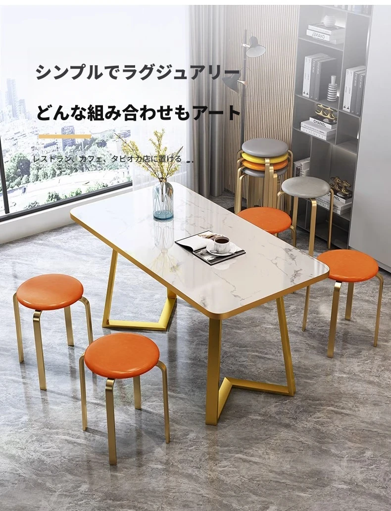アイボリー色120*60正方形テーブル+4脚のスツール
