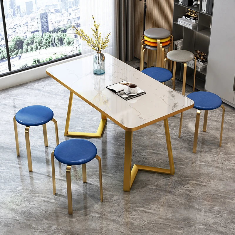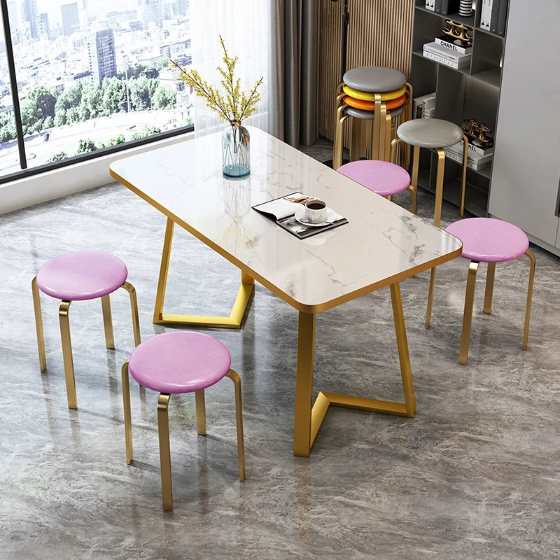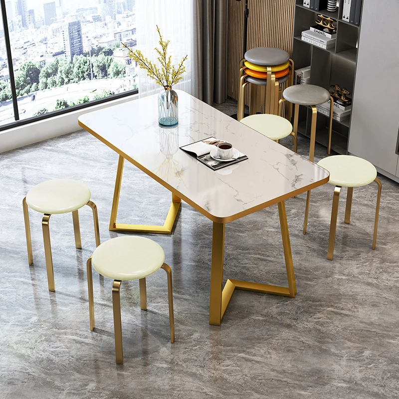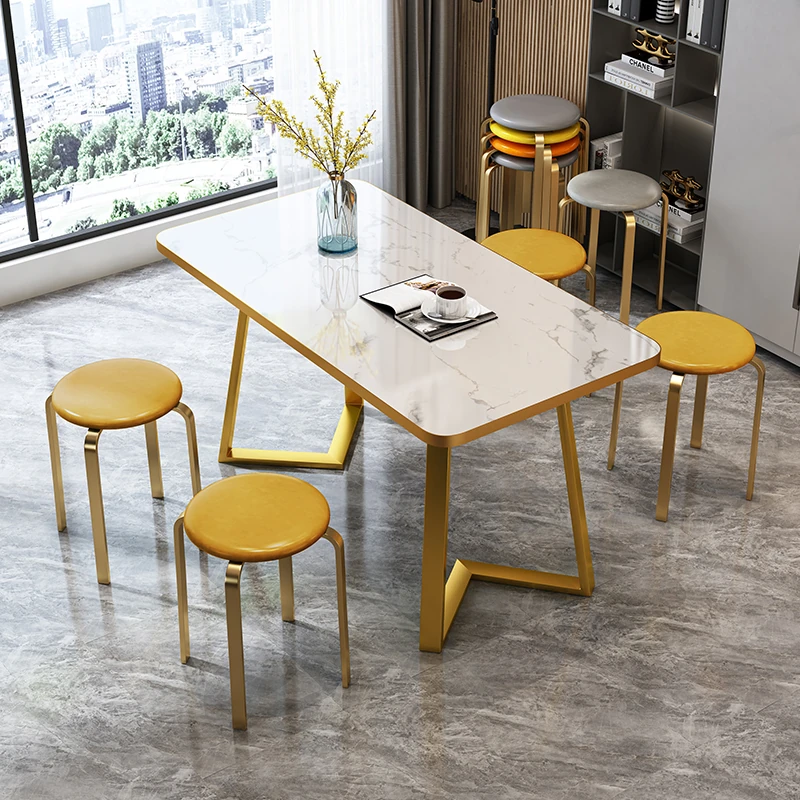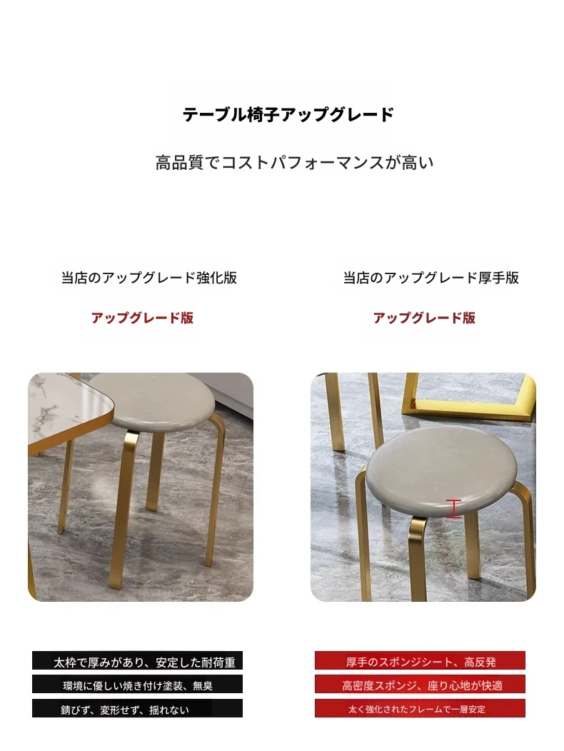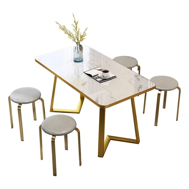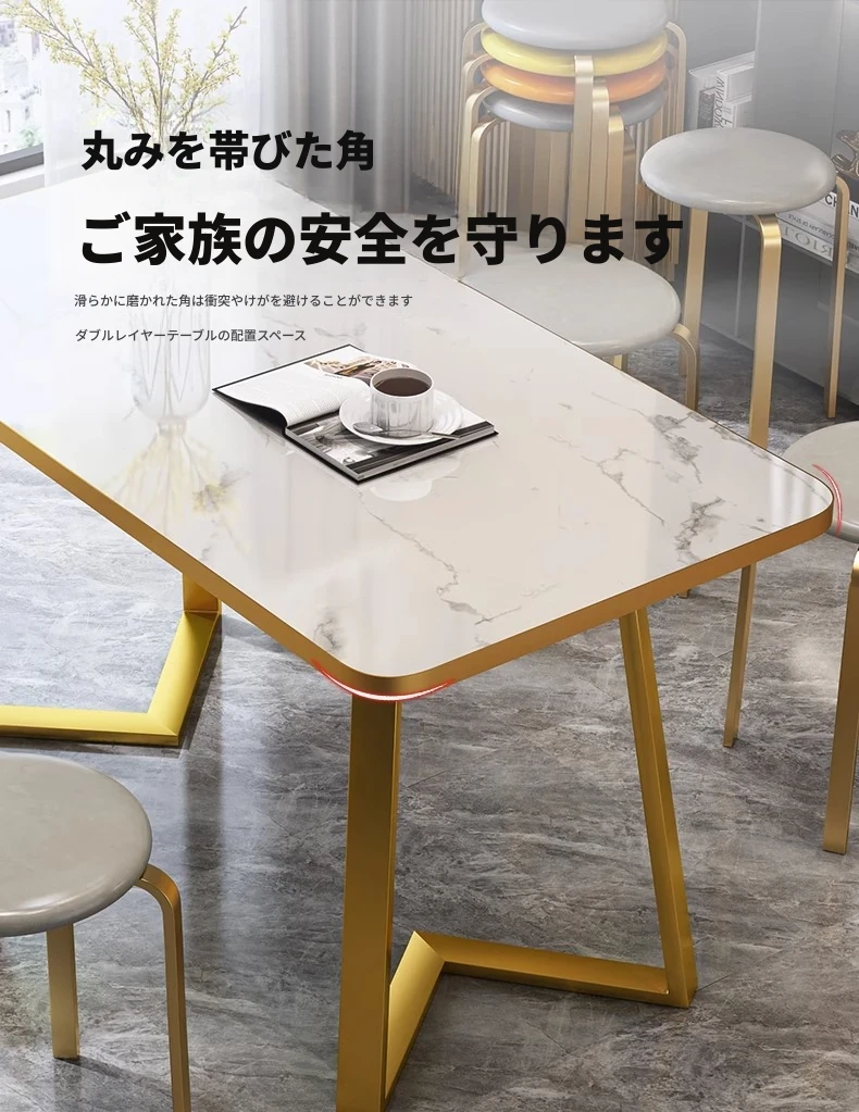 アイボリー色120*60正方形テーブル+4脚のスツール
