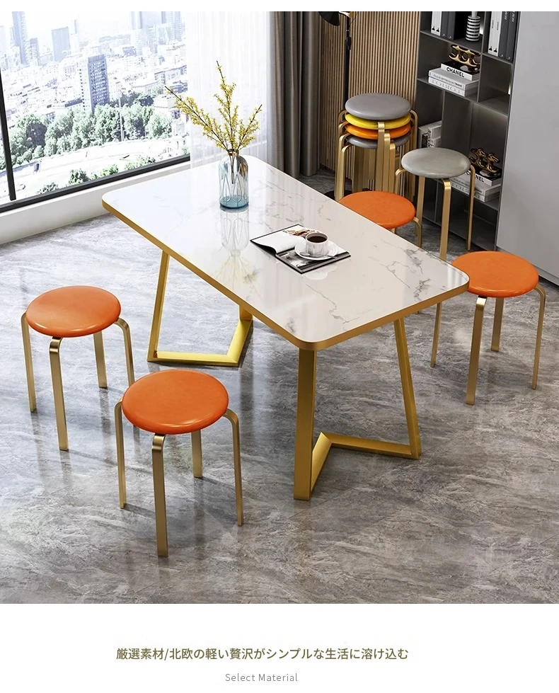 オレンジ色120*60正方形テーブル+4脚のスツール