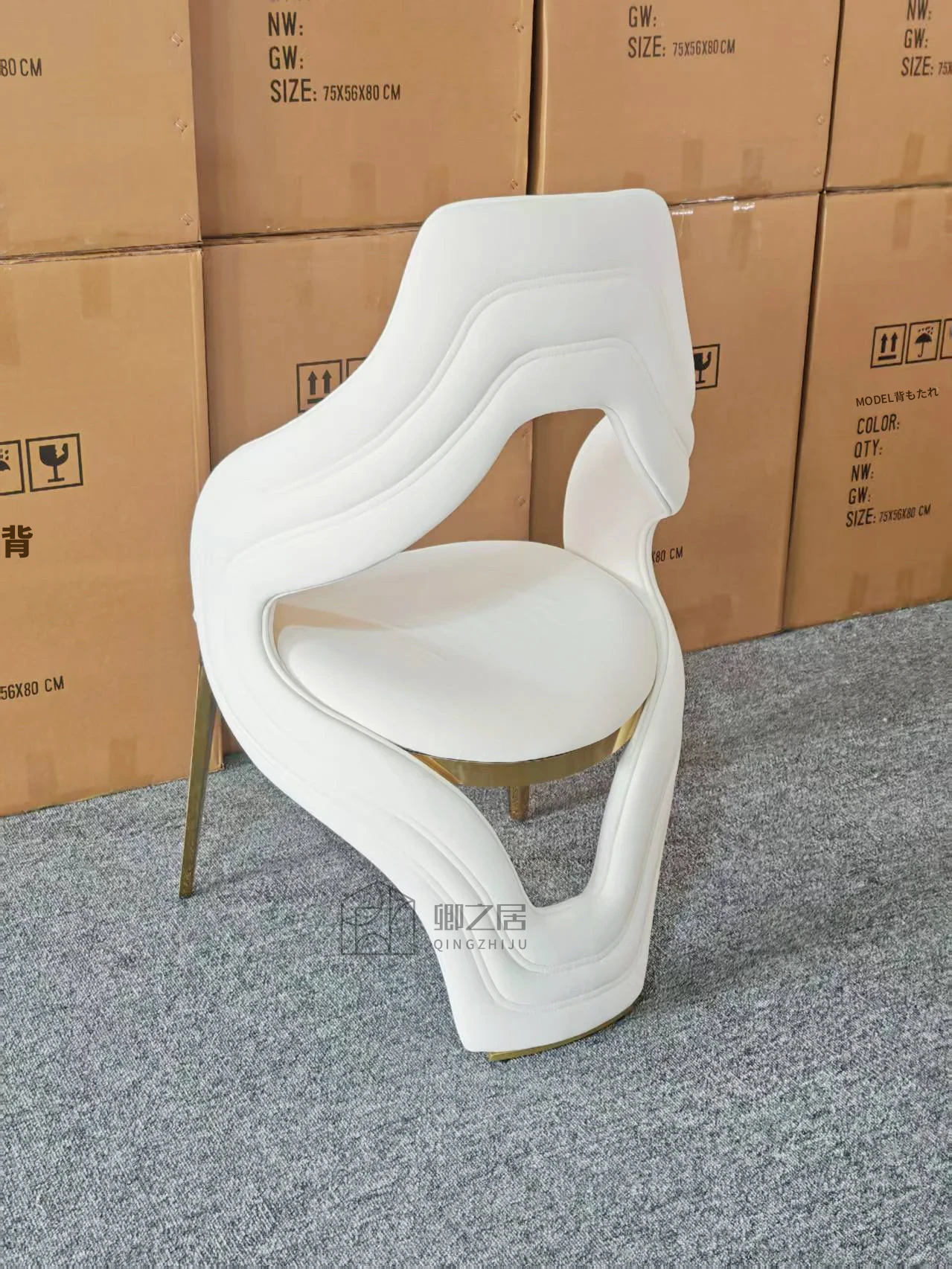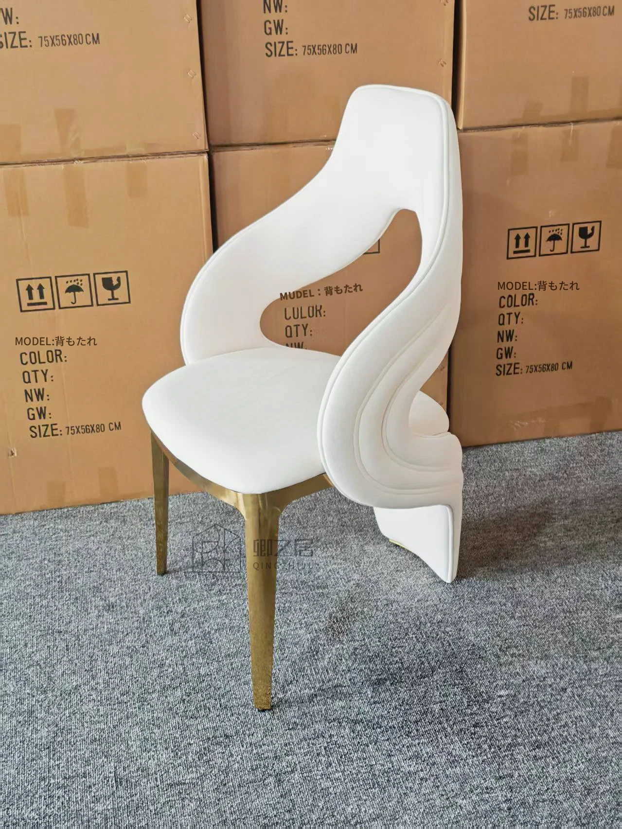 高級感溢れるステンレス製モダンデザインのダイニングチェア、シンプルで洗練された一人用椅子。別荘にも最適な背もたれ付き、軽やかな贅沢をあなたの生活空間に。
