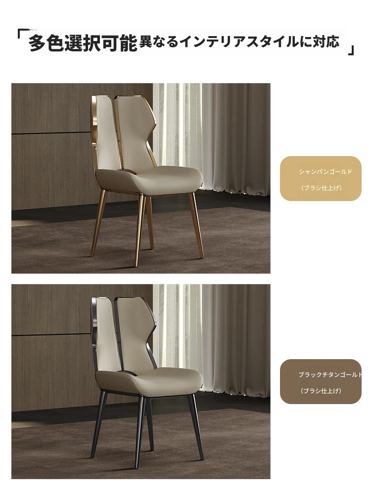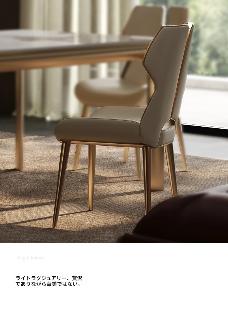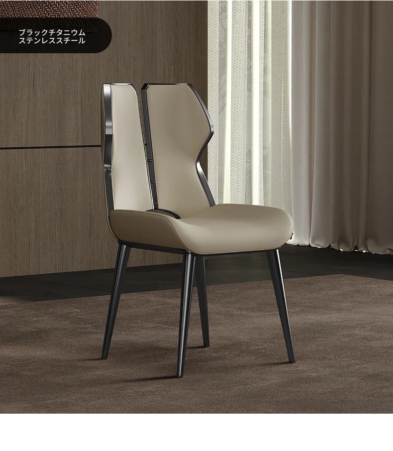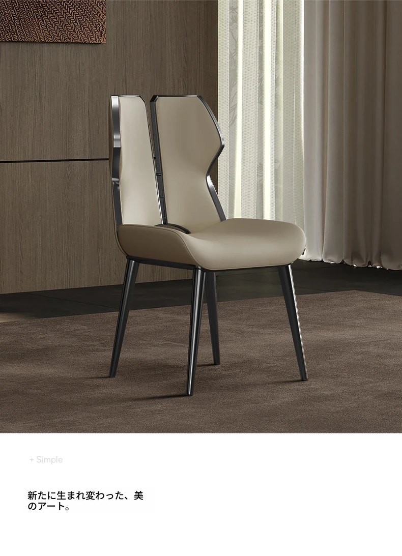 軽やかな高級感!ステンレス製のダイニングチェア、背もたれ付きで快適な座り心地。モダンでシンプルなデザイン、人気のレザー仕上げで食事の時間をおしゃれに演出します。
