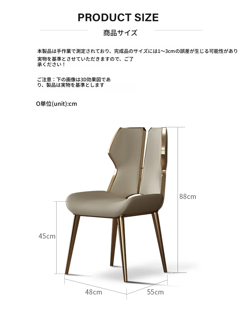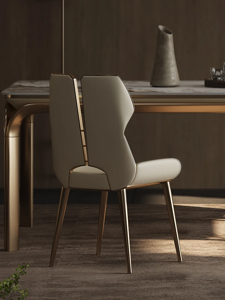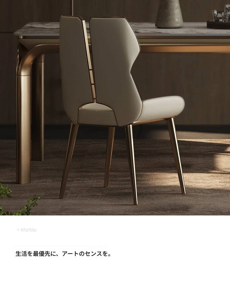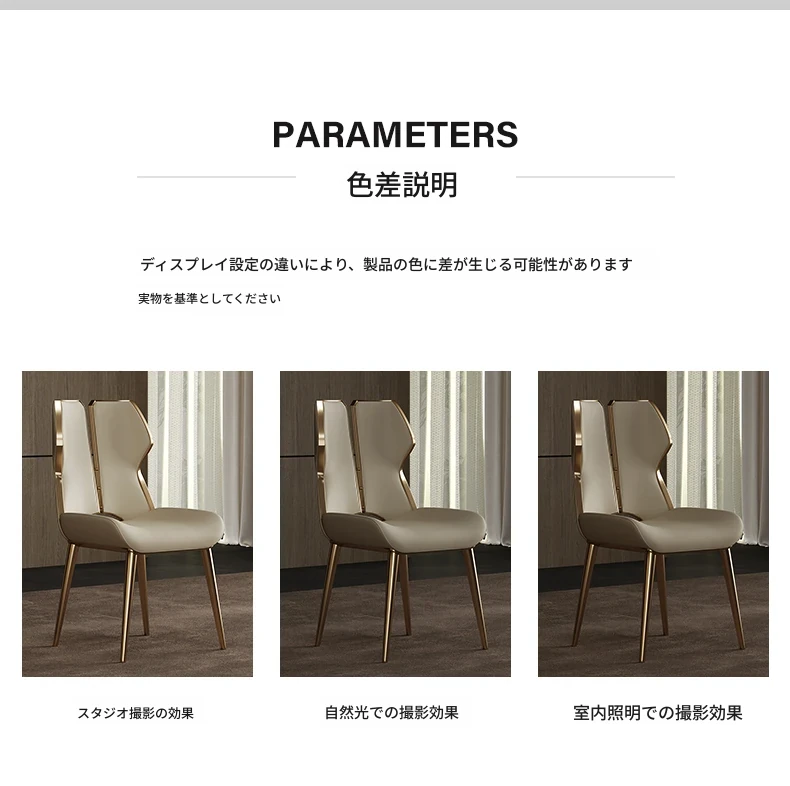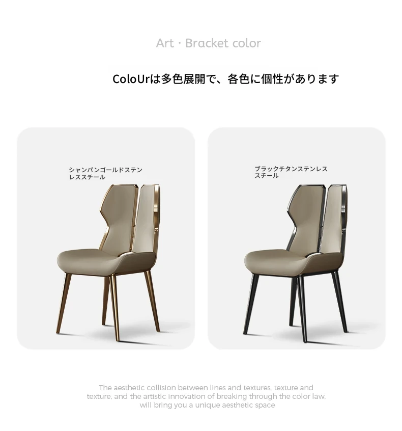 軽やかな高級感!ステンレス製のダイニングチェア、背もたれ付きで快適な座り心地。モダンでシンプルなデザイン、人気のレザー仕上げで食事の時間をおしゃれに演出します。