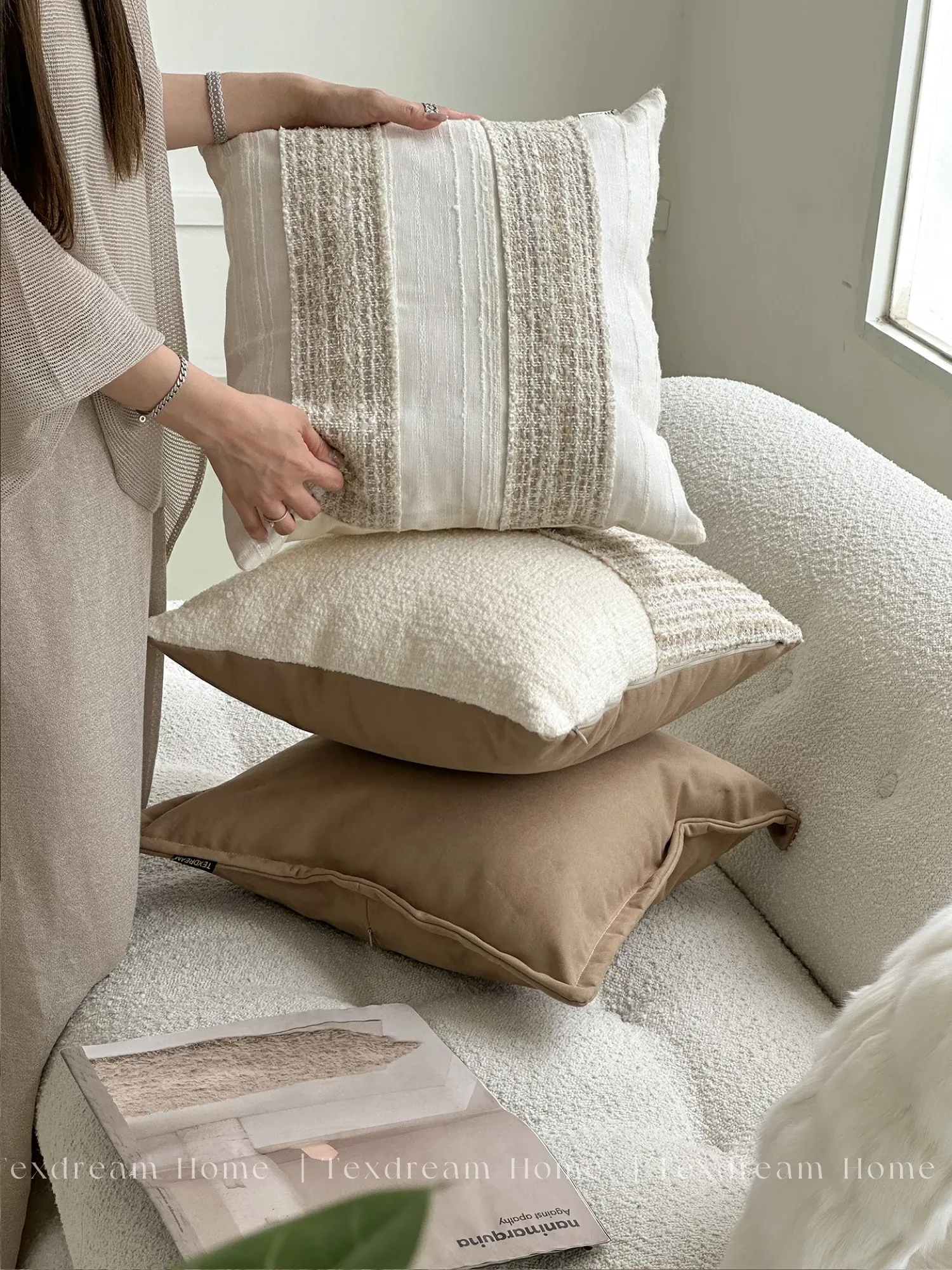 TEXDEREAMの態度を表現するモカムースの侘び寂び風デザインクッションカバー - リビングやソファ、ベッドルームに最適なスタイリッシュなアクセント!