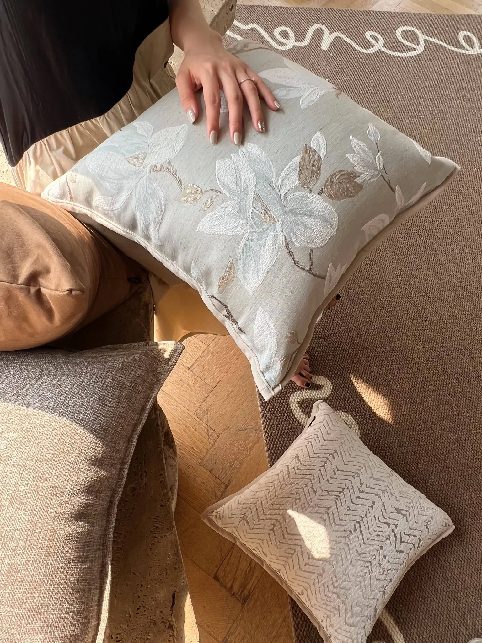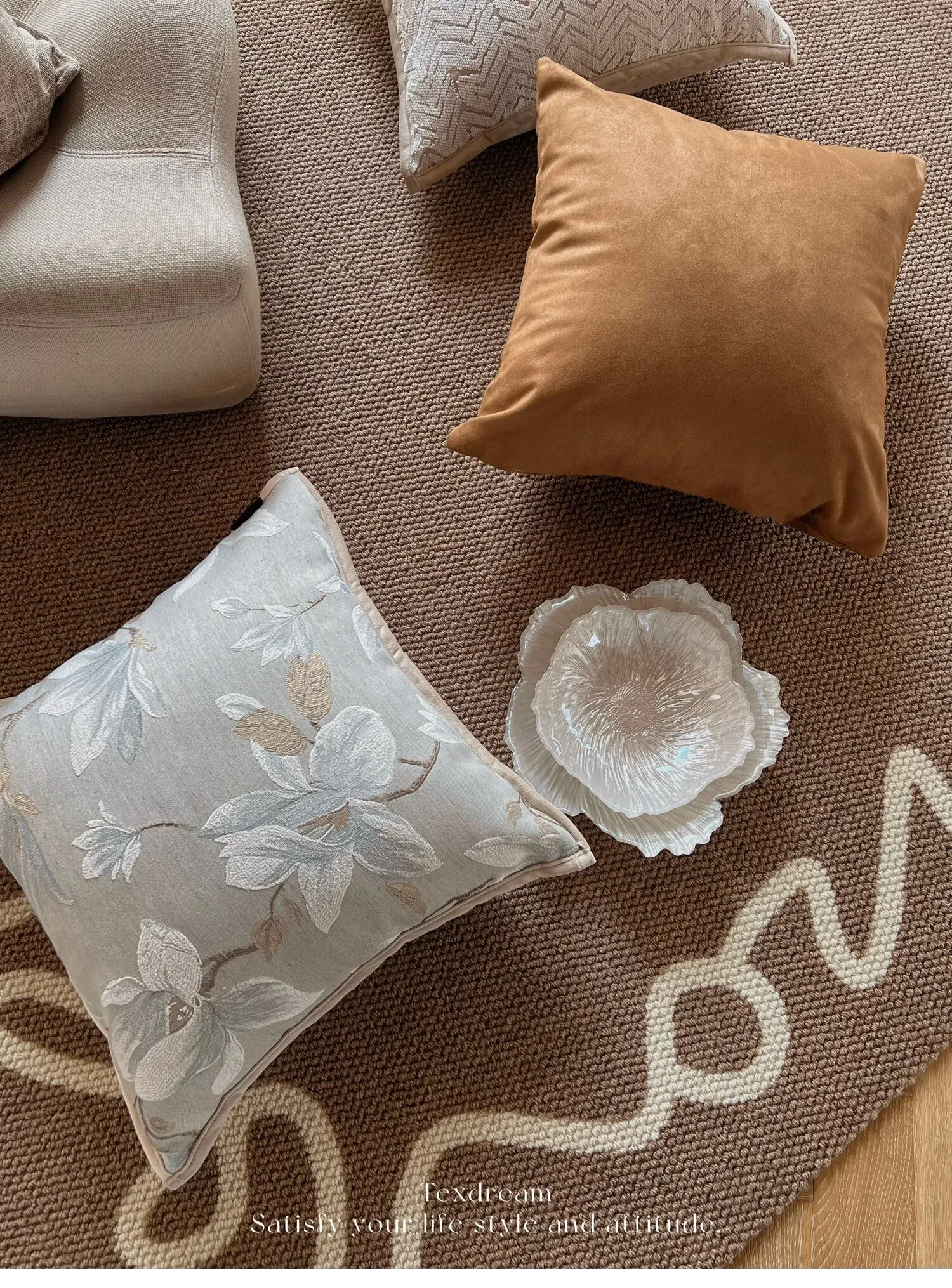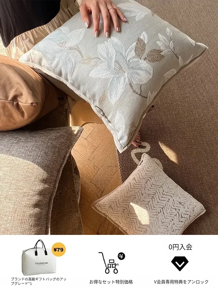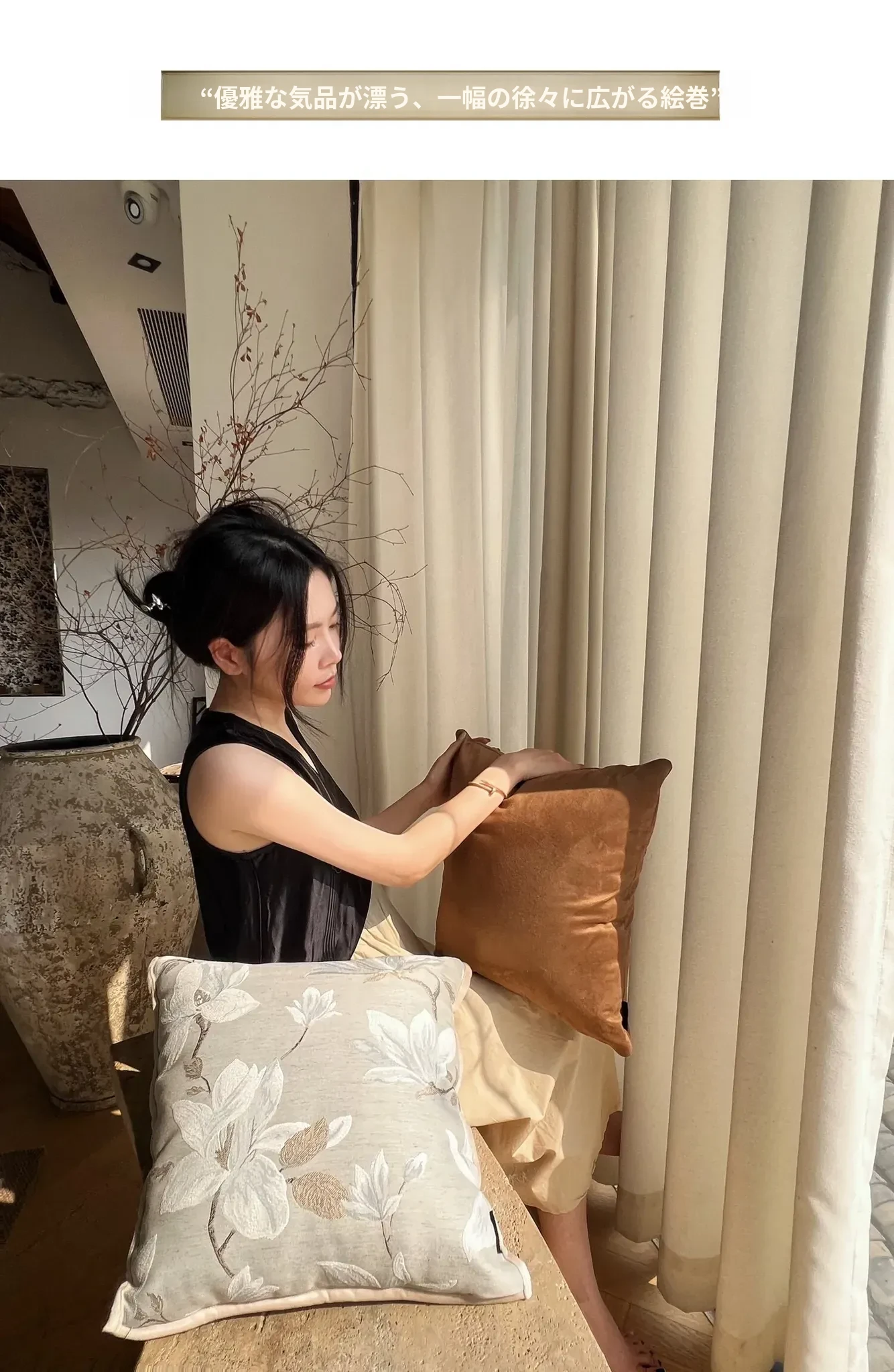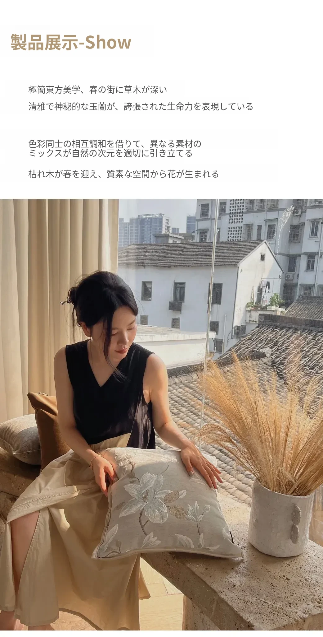 Texdream | 花枝玉兰 フランス風レトロクッション - 和モダンな侘び寂びスタイルのリビングソファ用クッションカバー(クッション付き)で、心地よいひとときをお楽しみください。