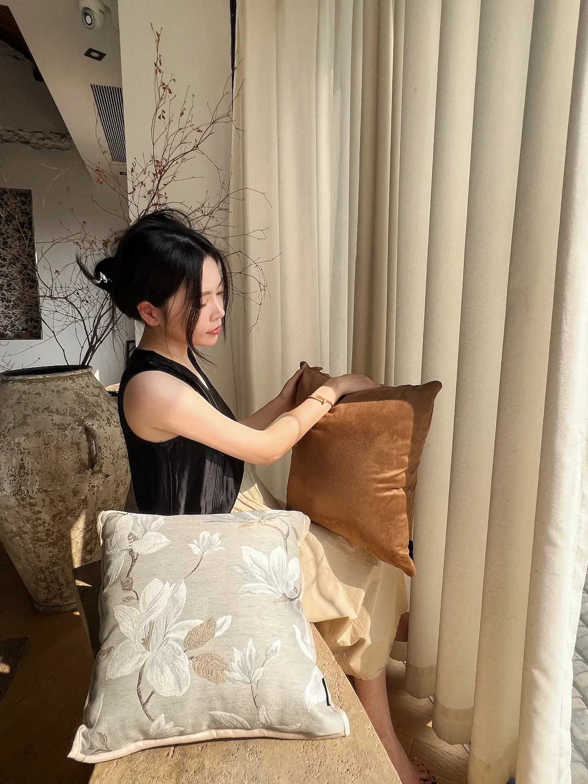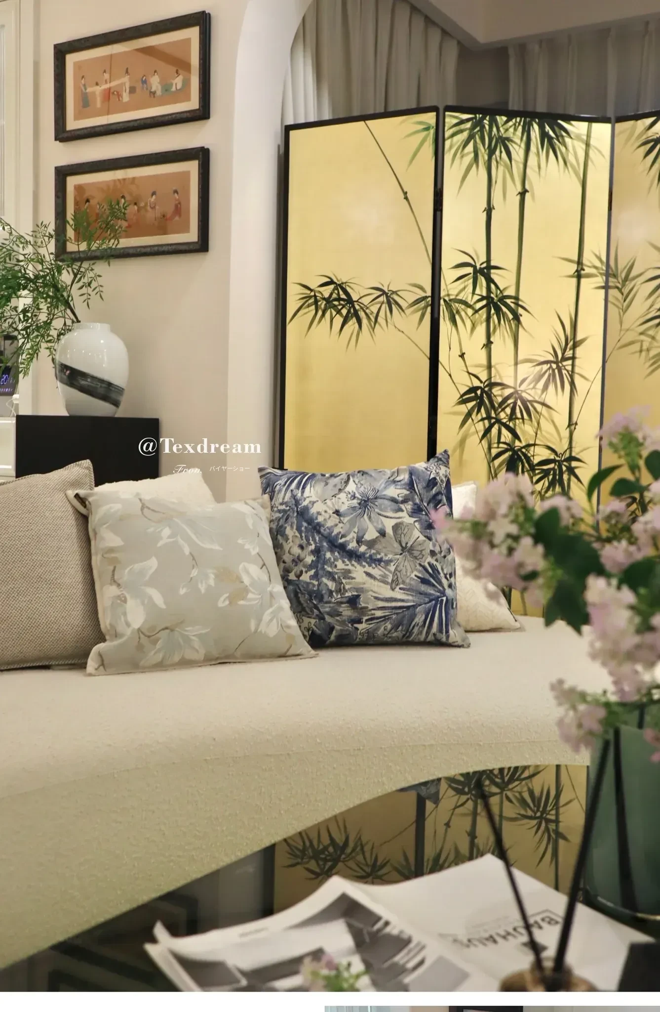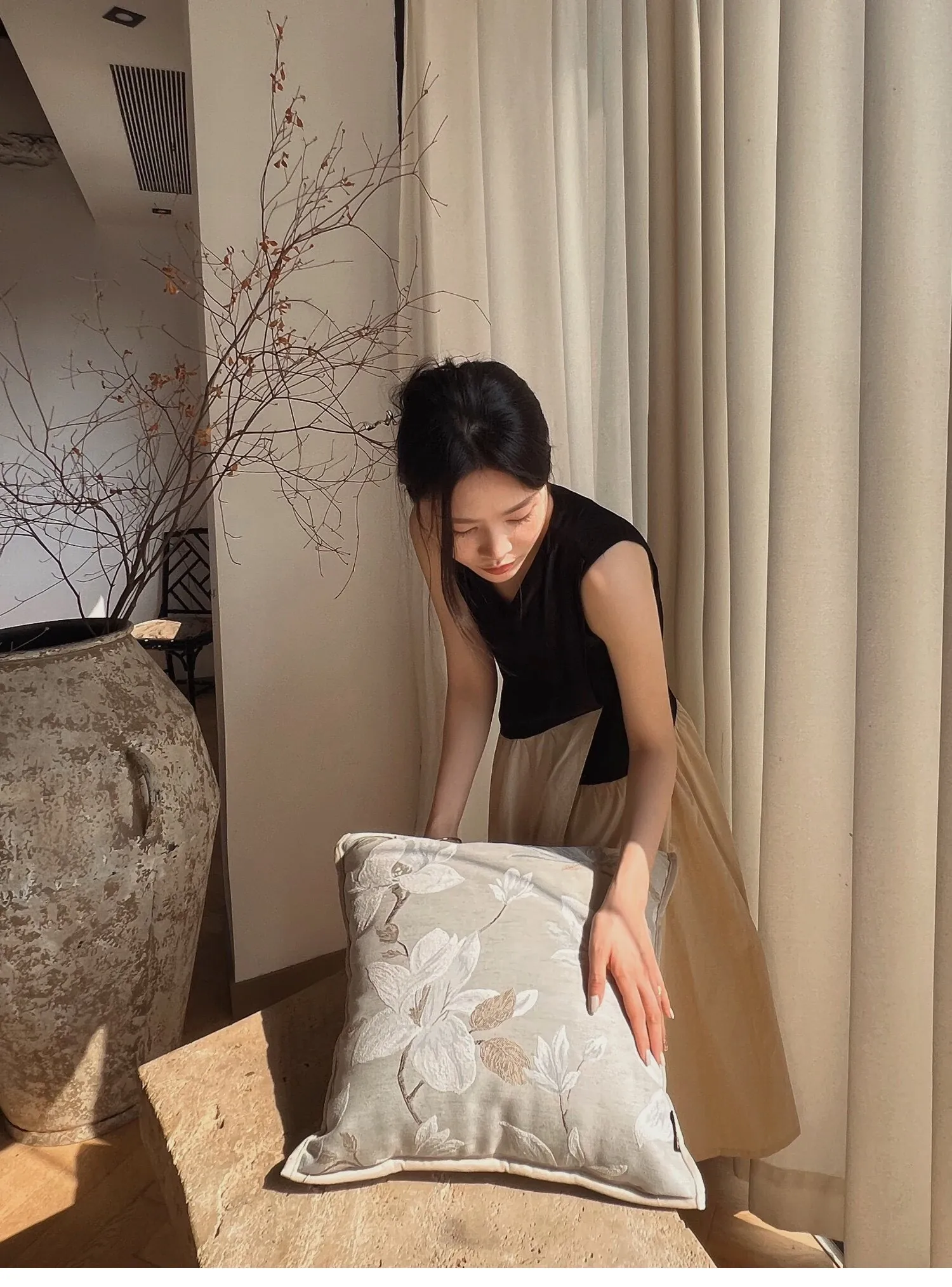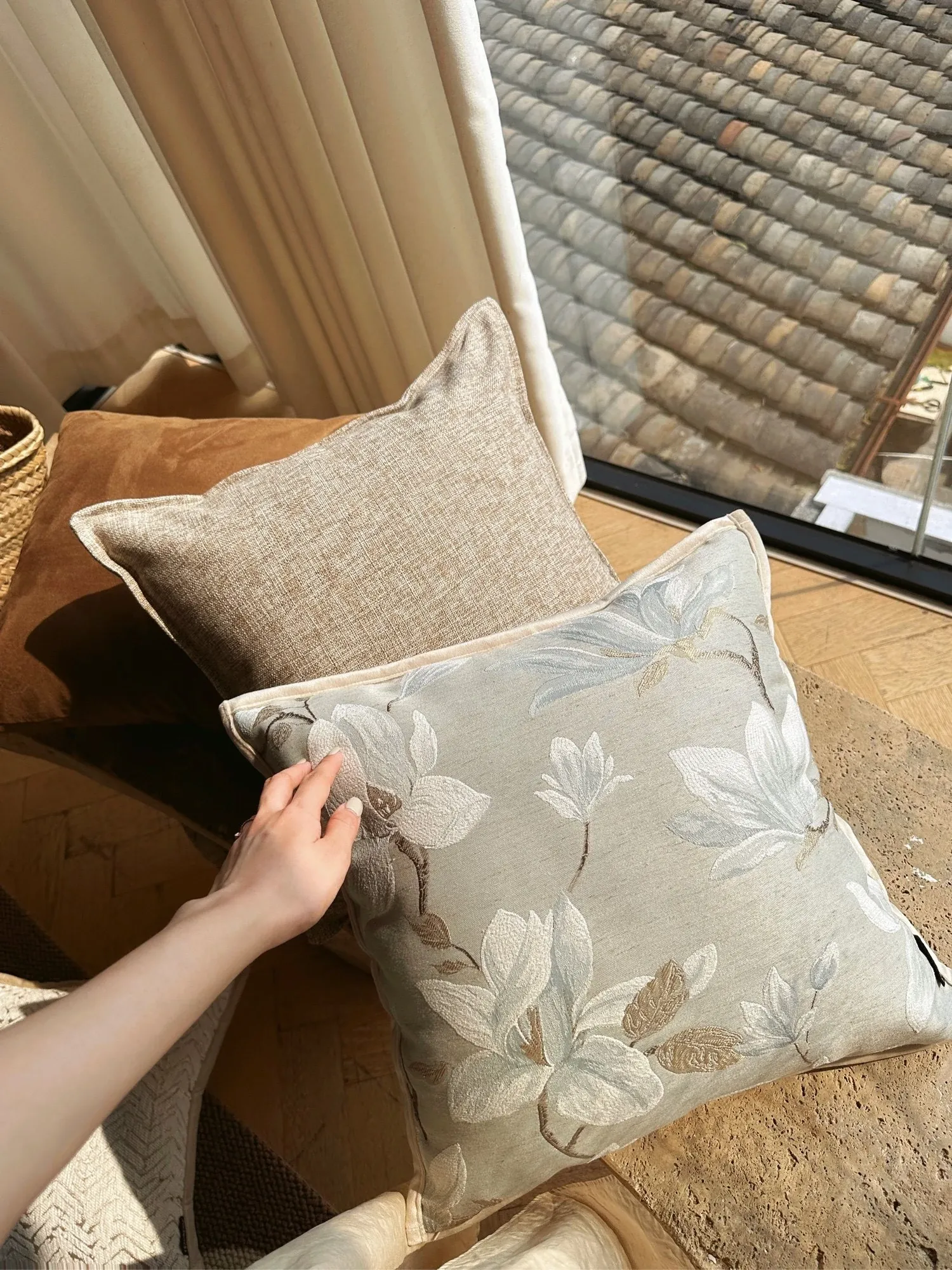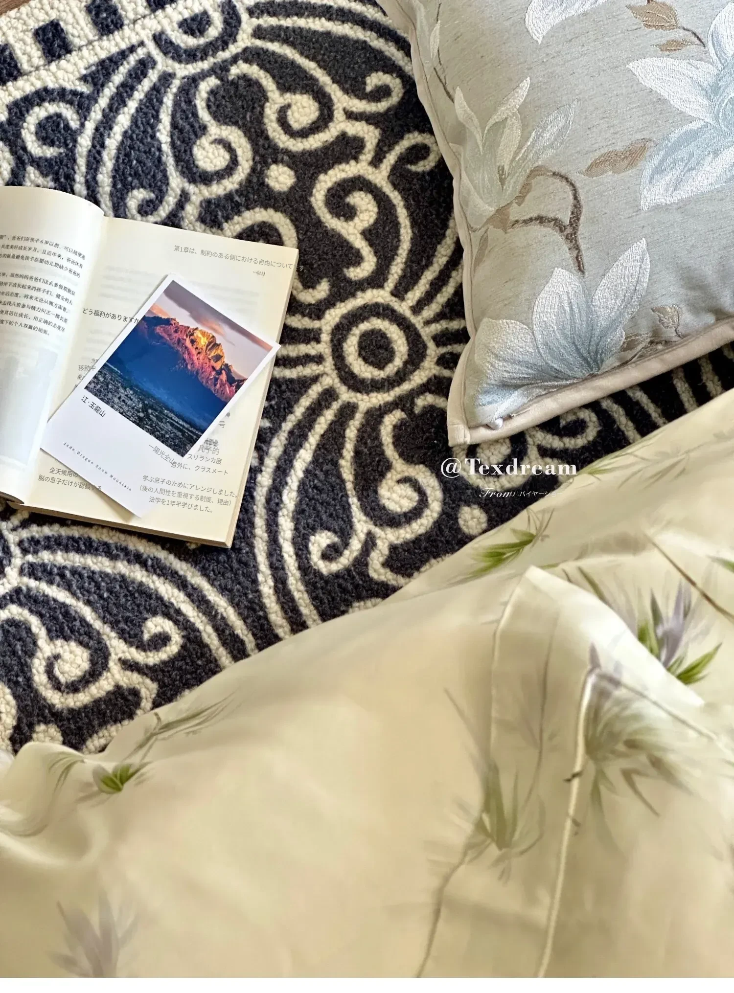 Texdream | 花枝玉兰 フランス風レトロクッション - 和モダンな侘び寂びスタイルのリビングソファ用クッションカバー(クッション付き)で、心地よいひとときをお楽しみください。