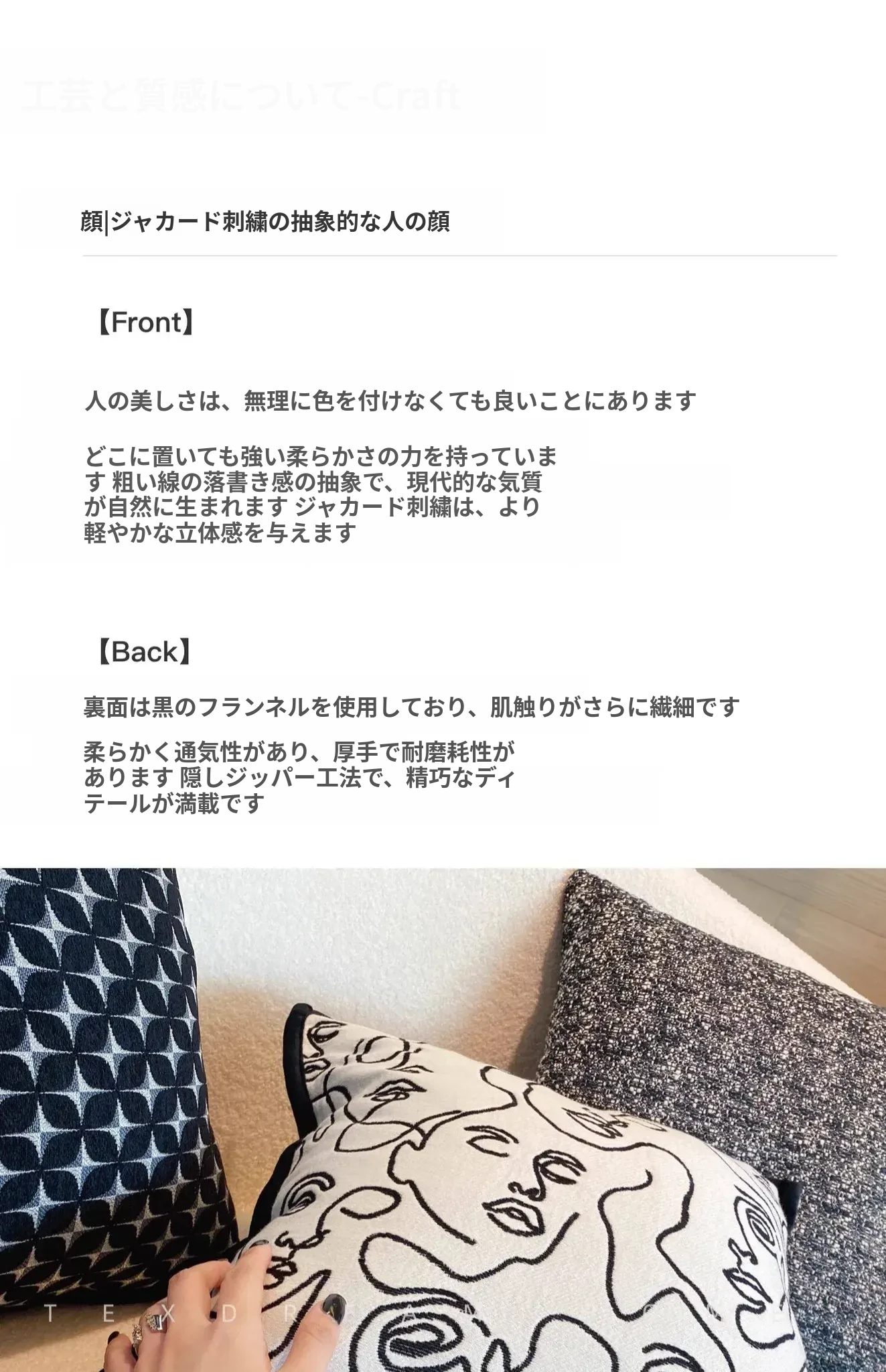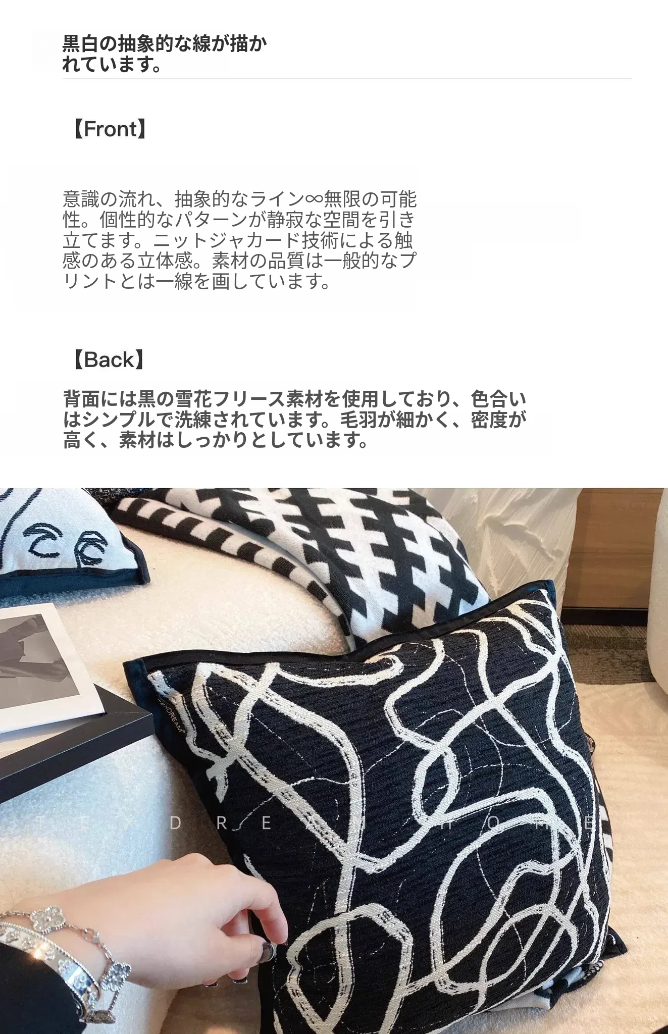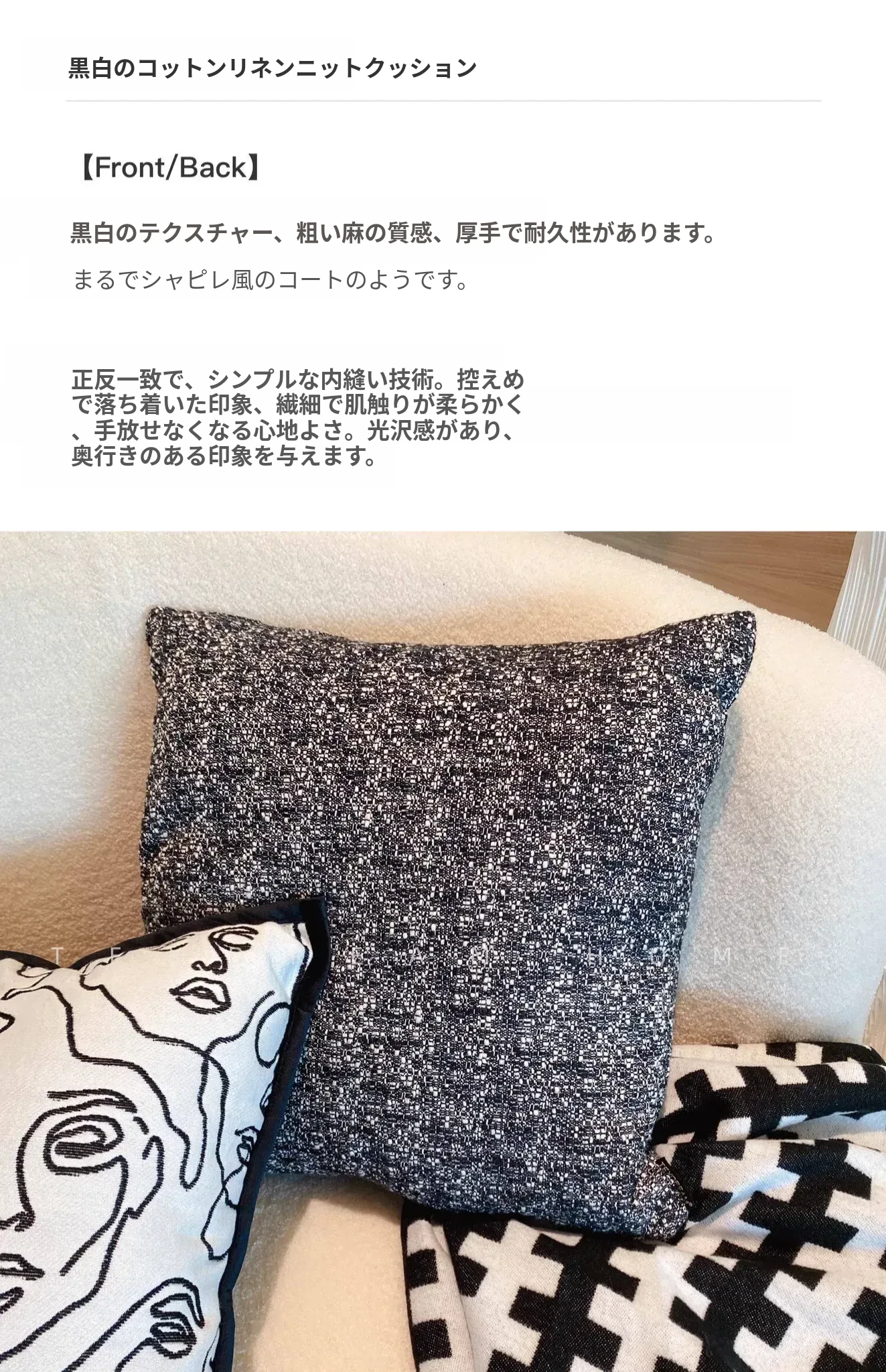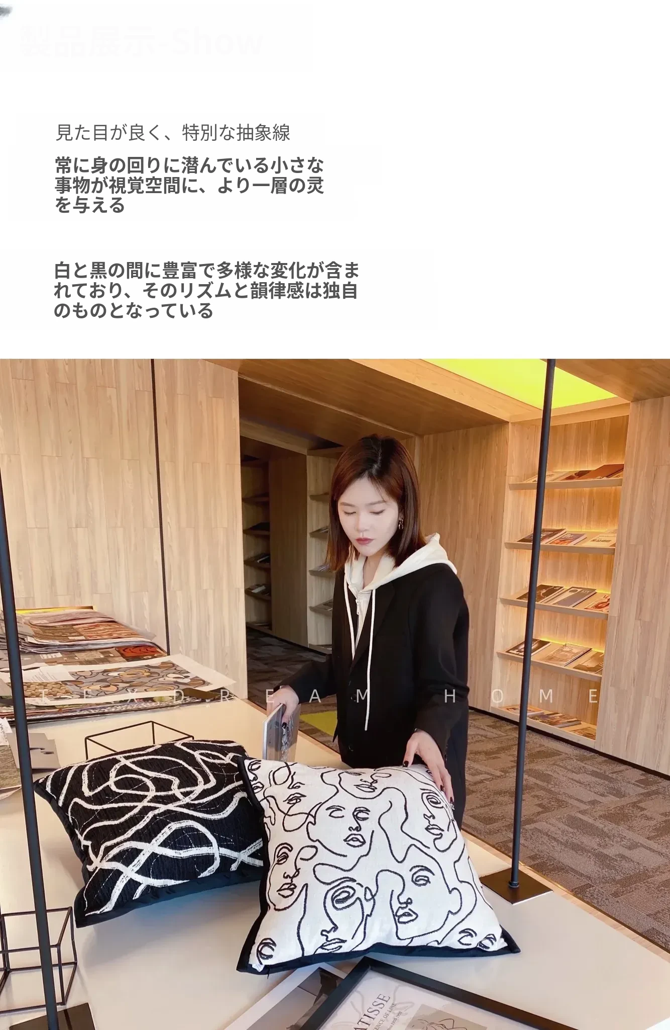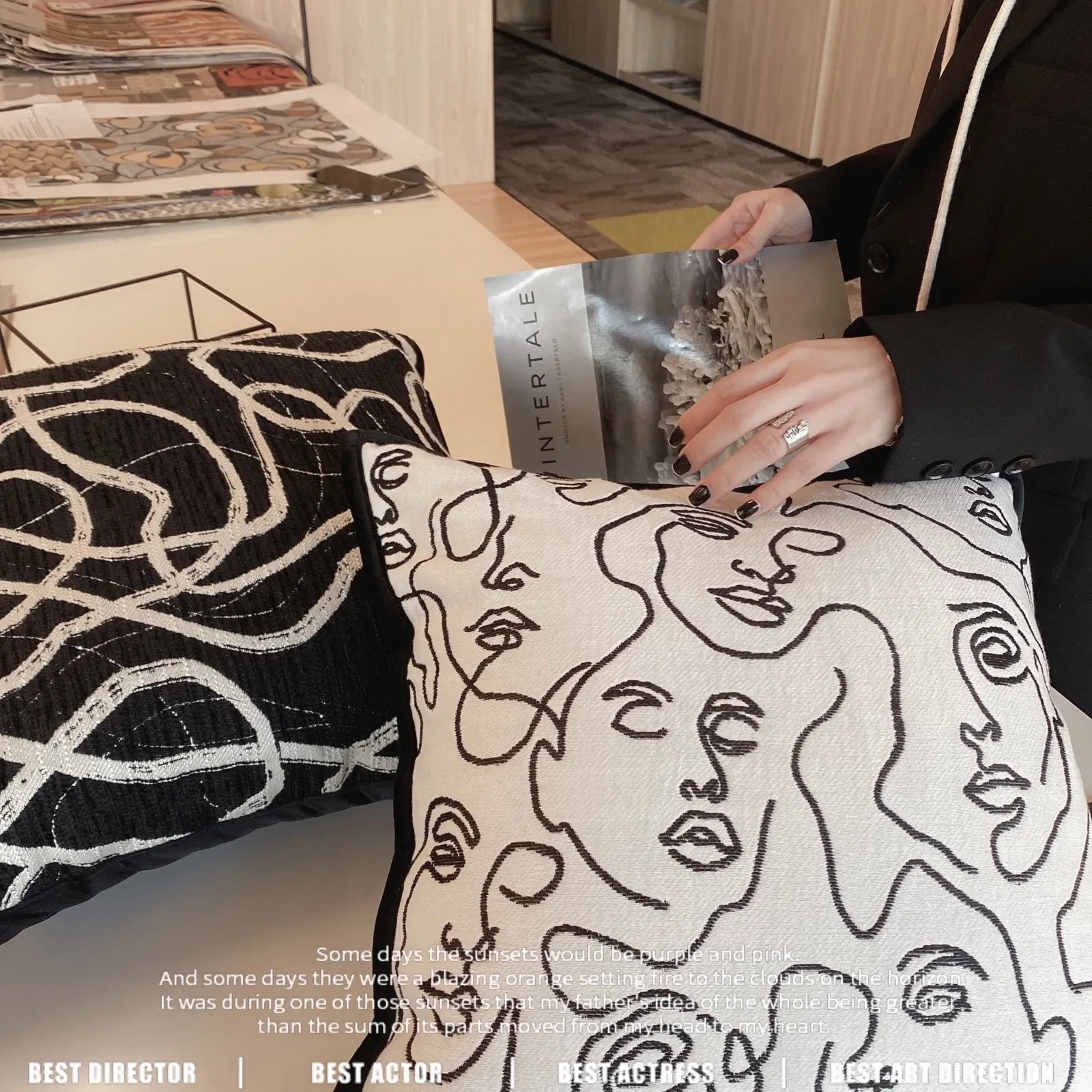 Texdreamのスタイル アブストラクトフェイス デザイナーズモノクロコットンリネン モダンリビングソファクッション 高級感漂うクッション