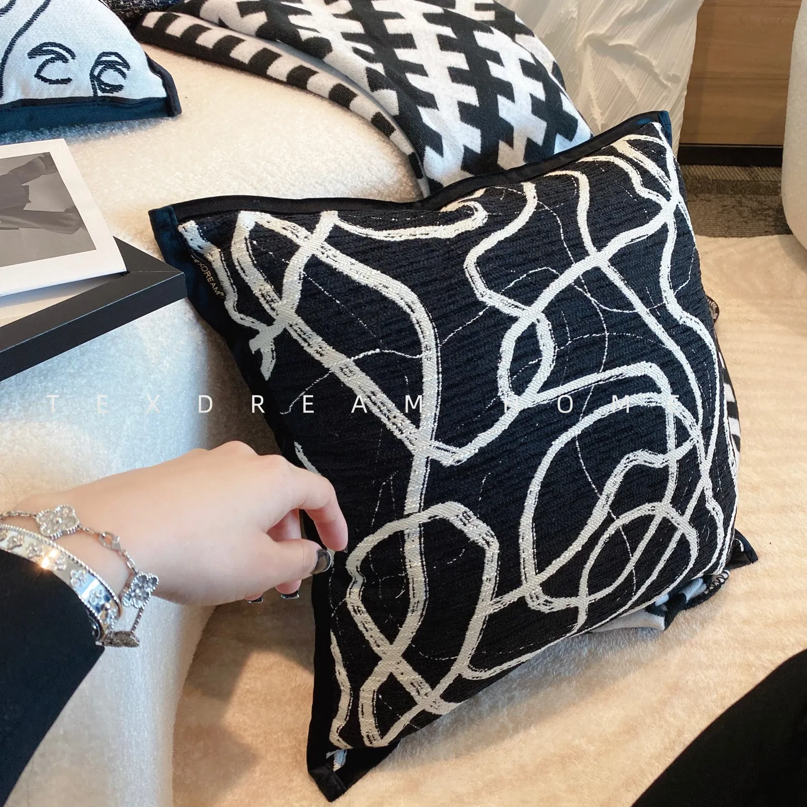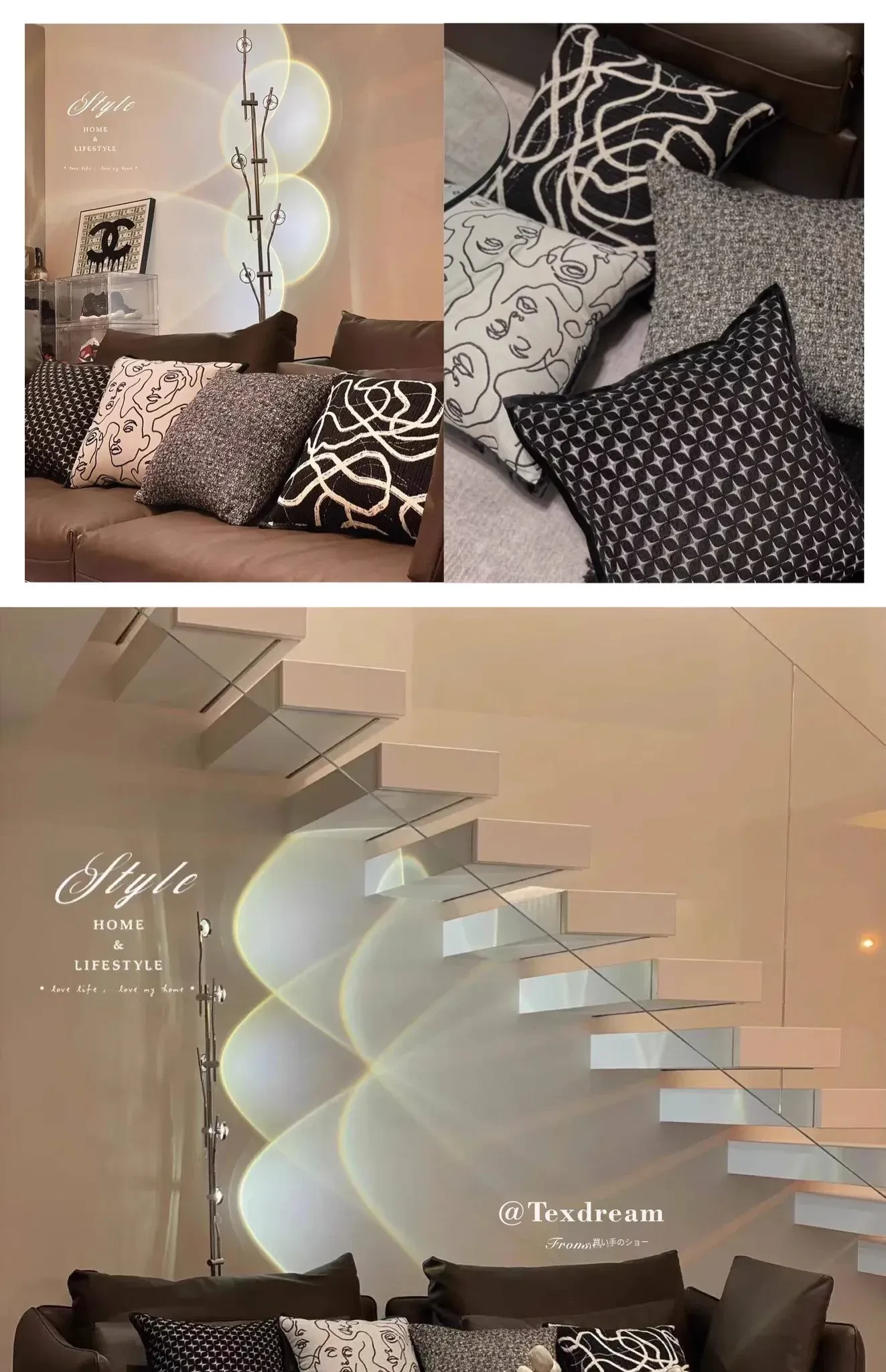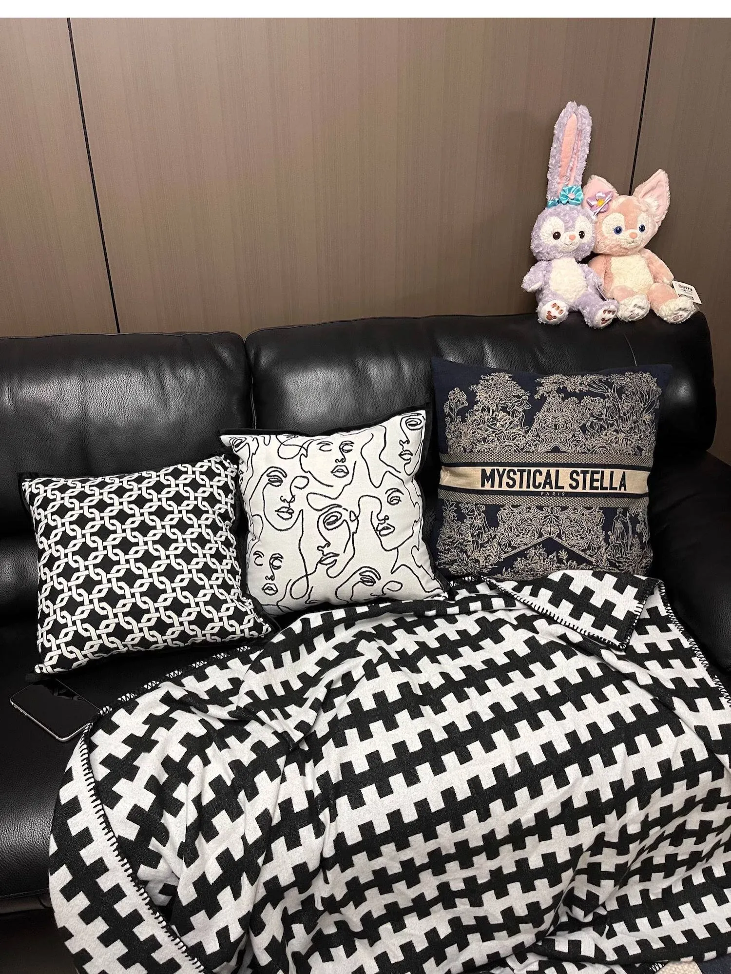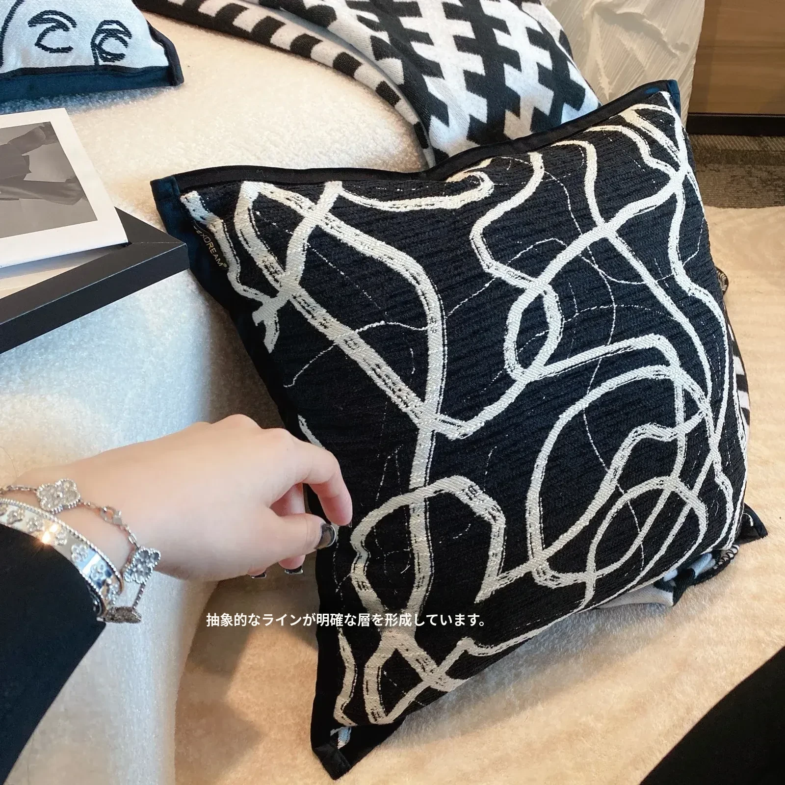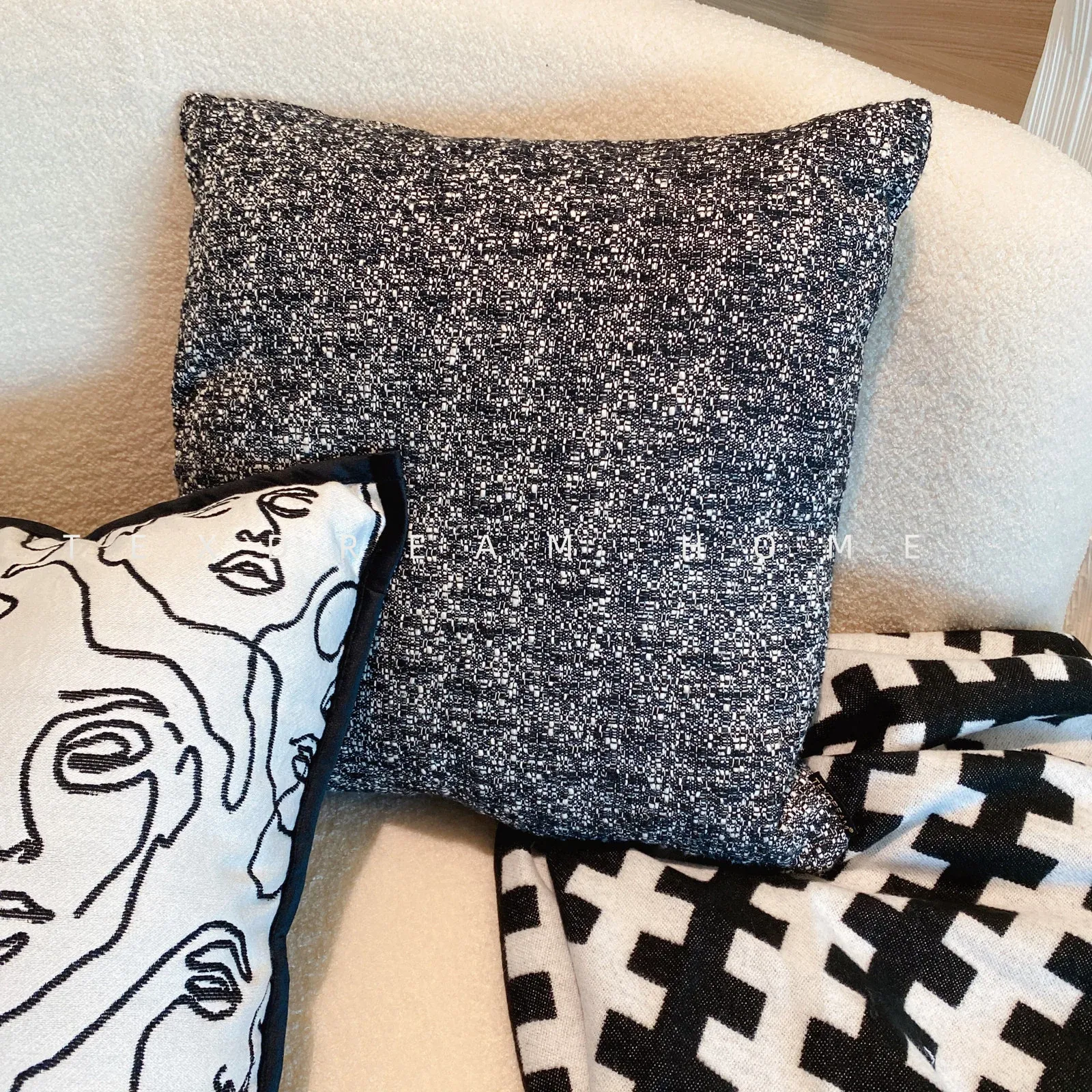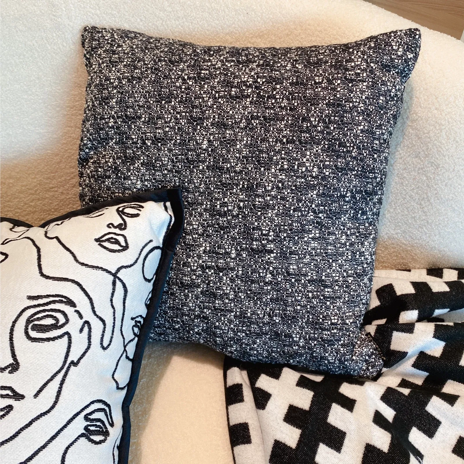 Texdreamのスタイル アブストラクトフェイス デザイナーズモノクロコットンリネン モダンリビングソファクッション 高級感漂うクッション