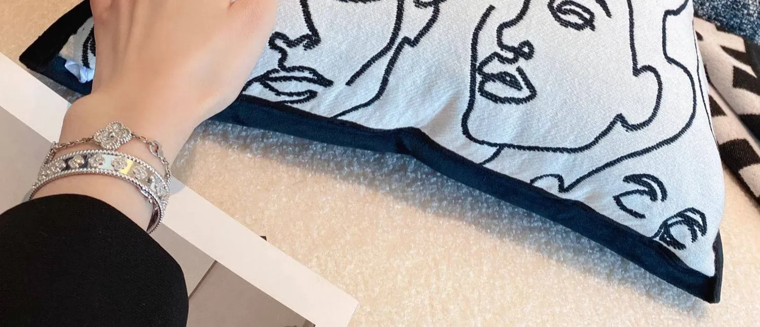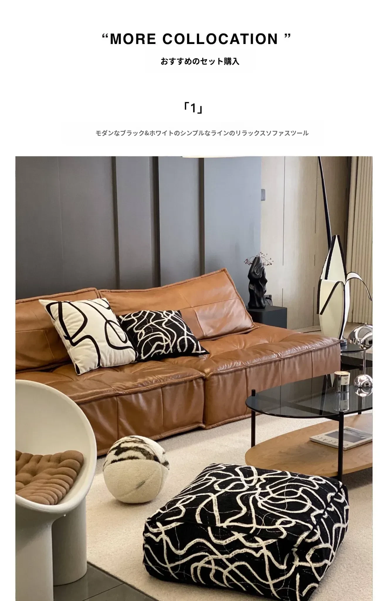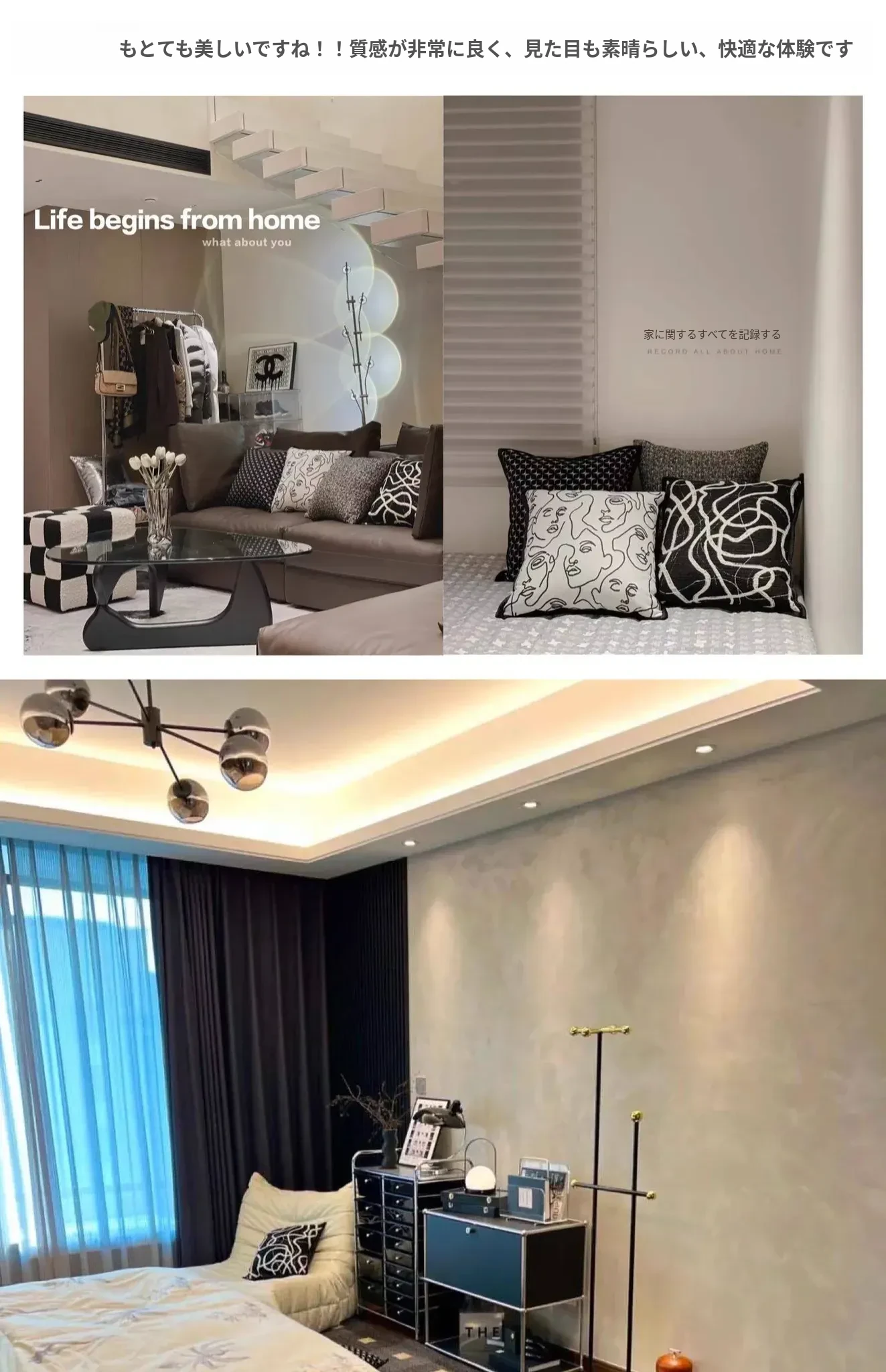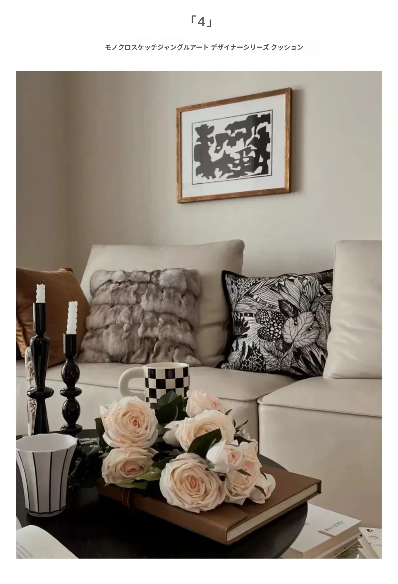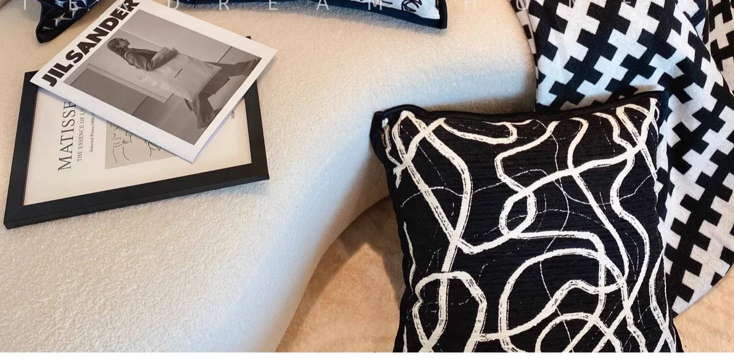 Texdreamのスタイル アブストラクトフェイス デザイナーズモノクロコットンリネン モダンリビングソファクッション 高級感漂うクッション