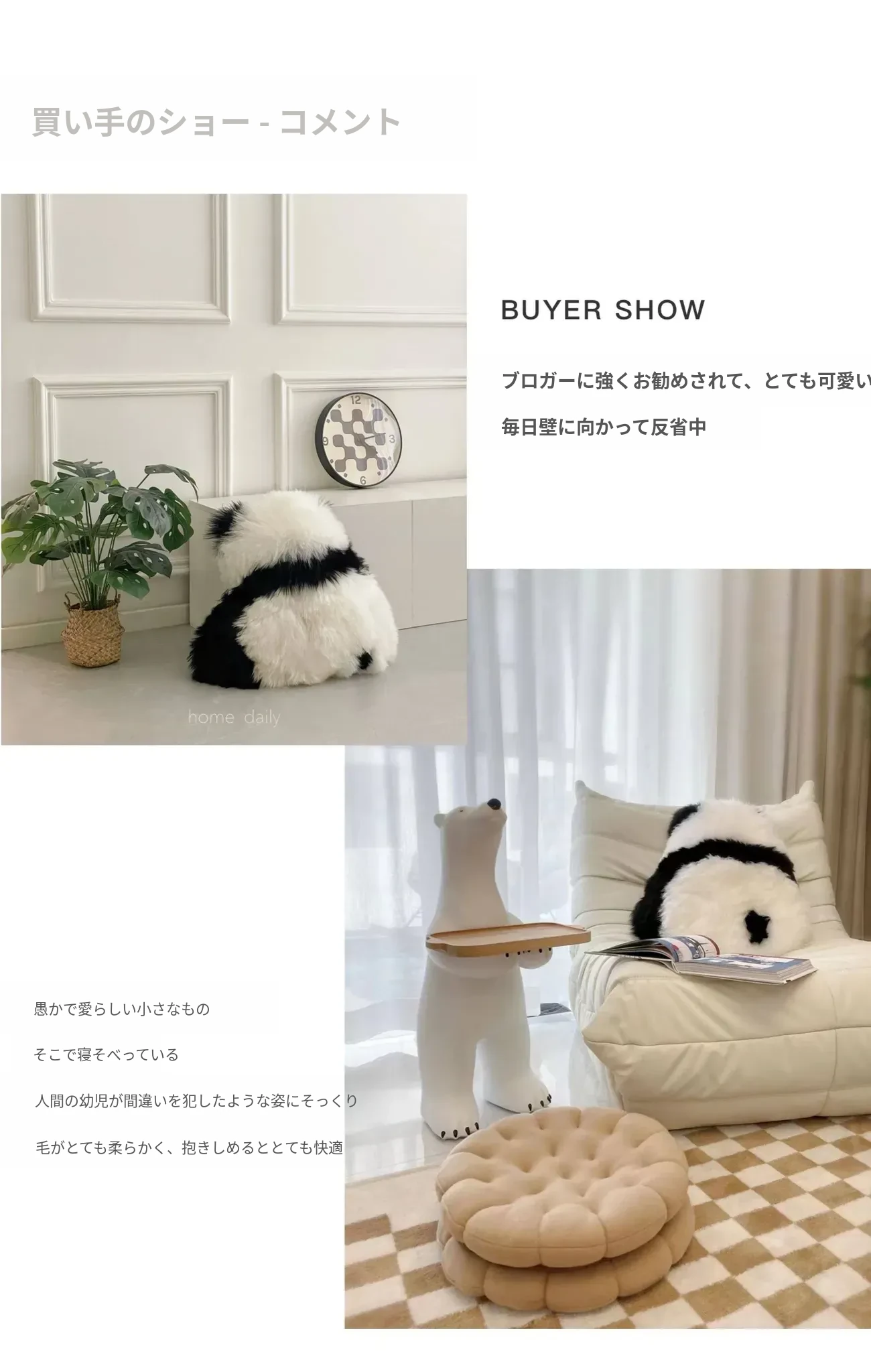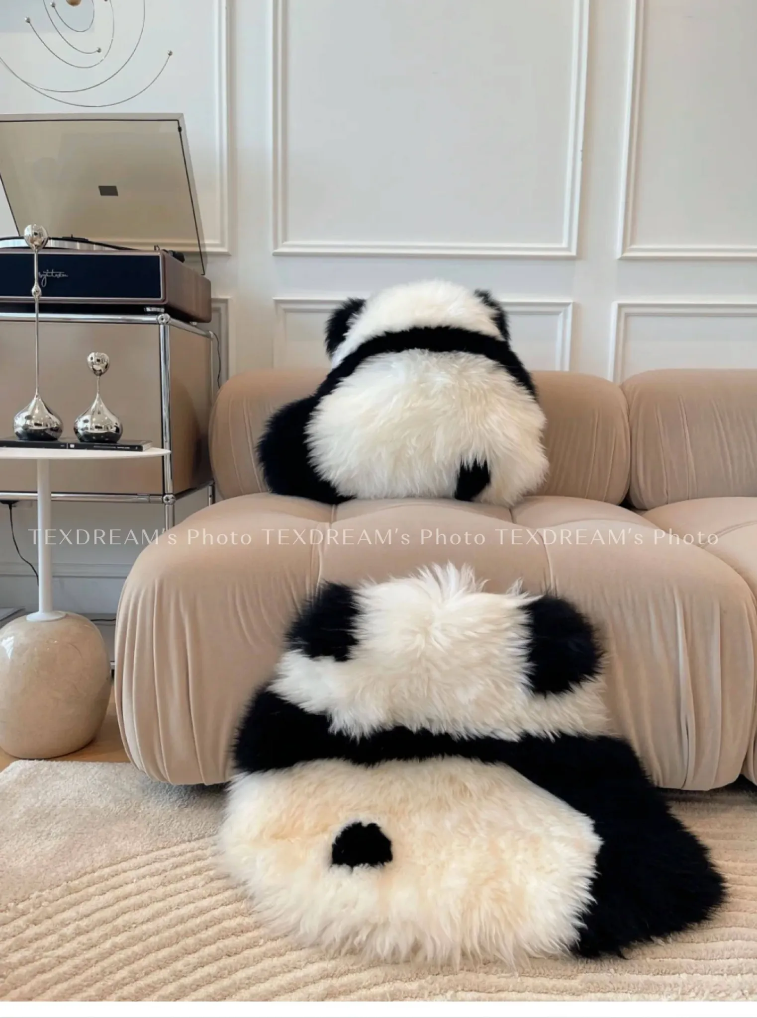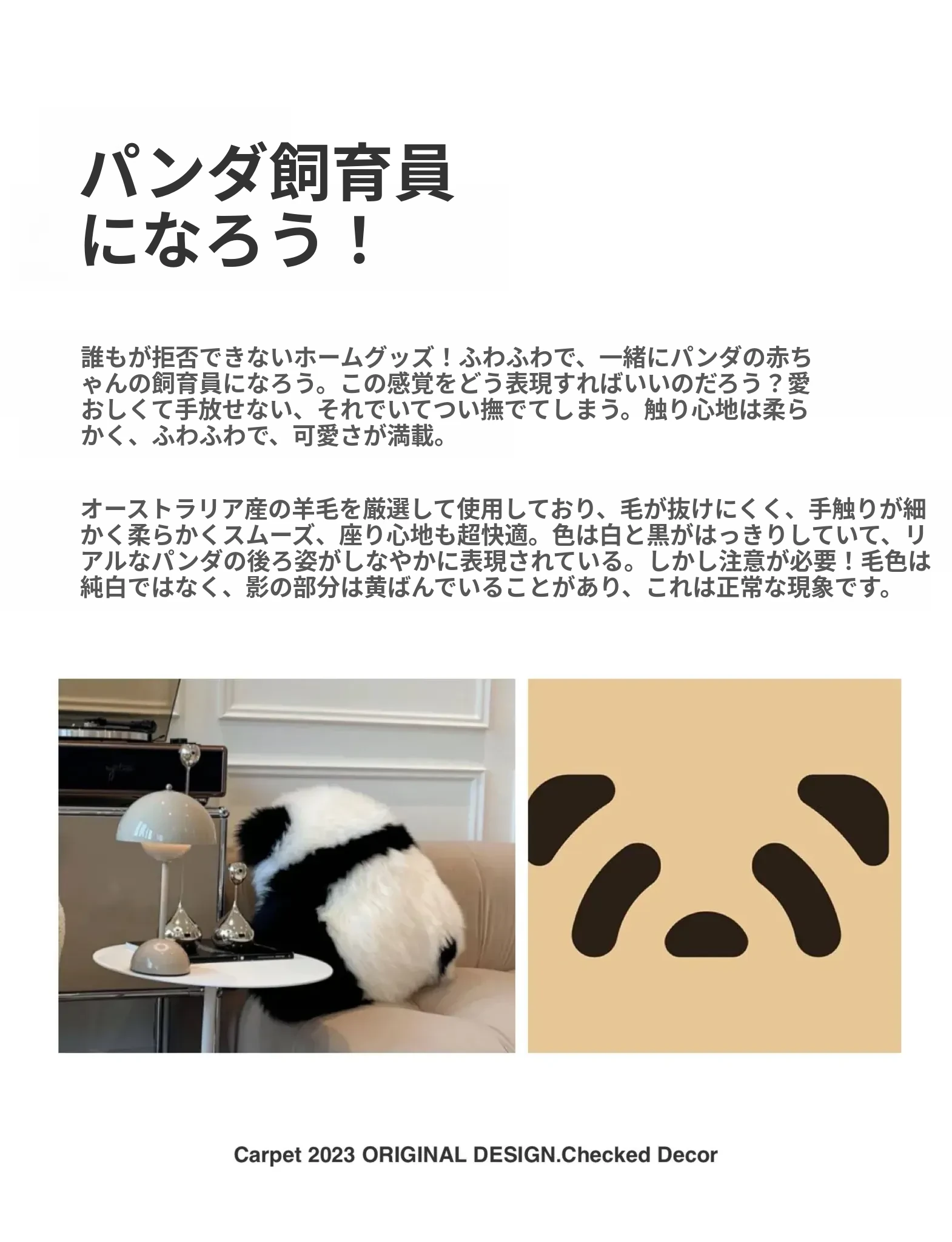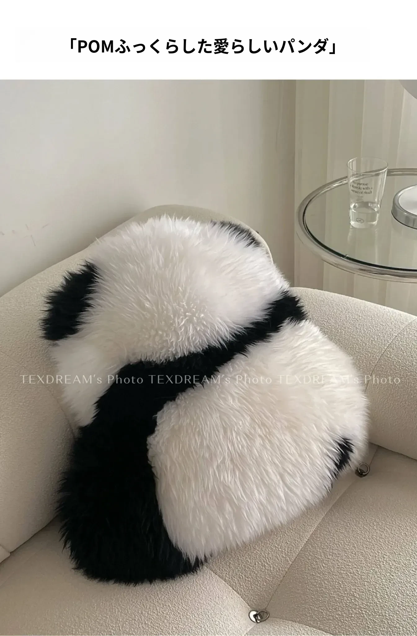 注意:パンダクッションは本物の羊毛ファー素材ですので、水洗いしないでください!!