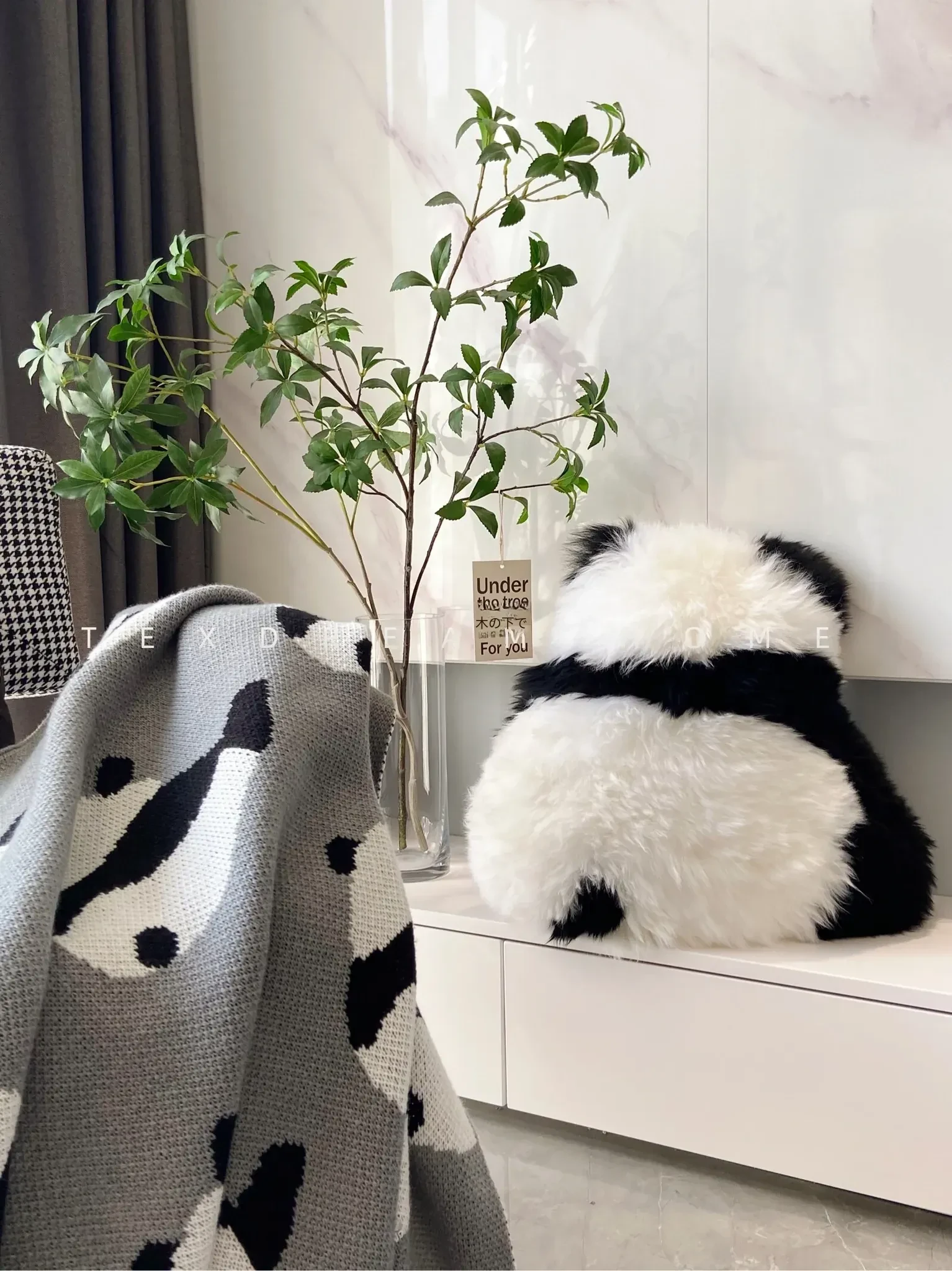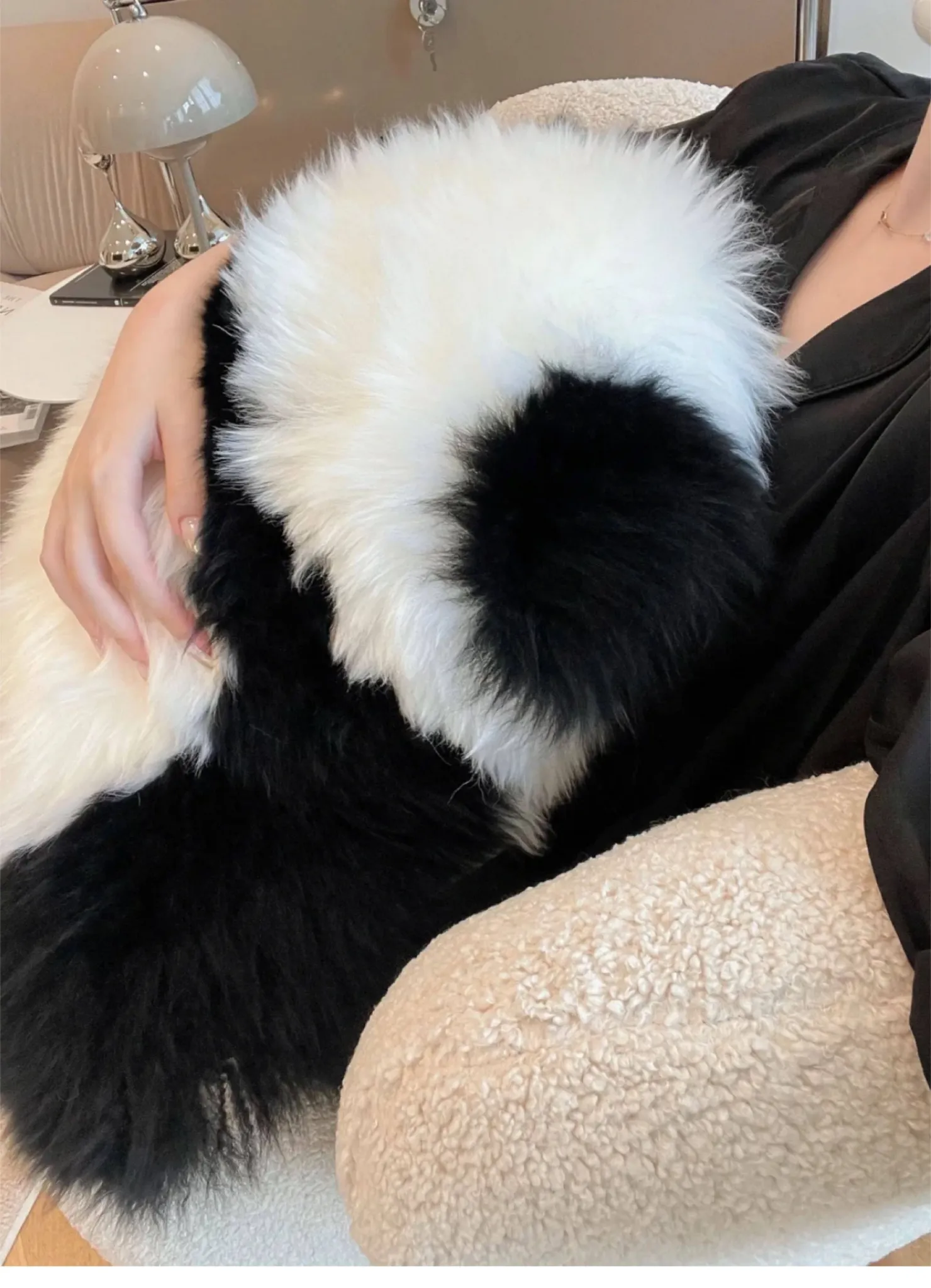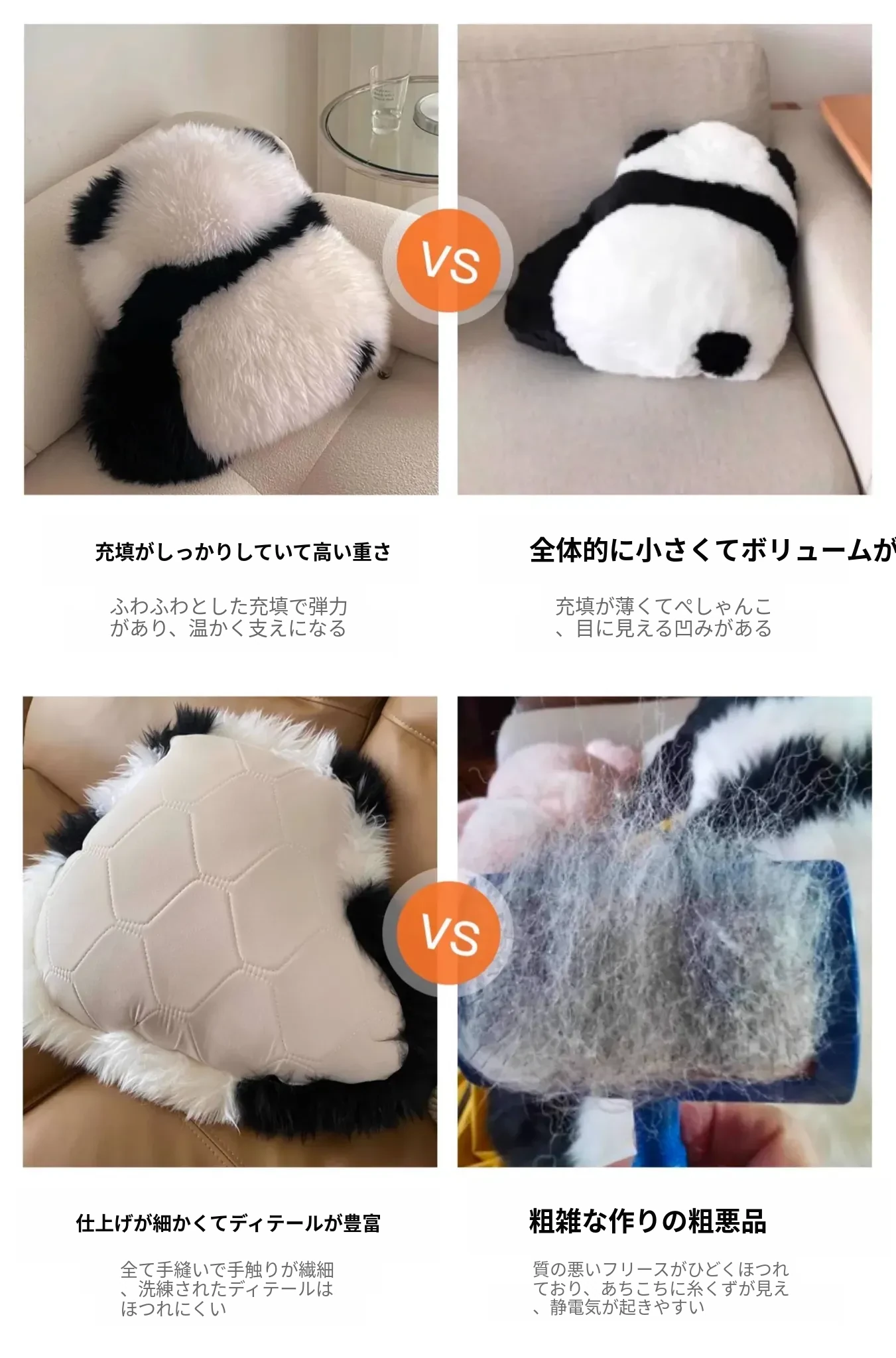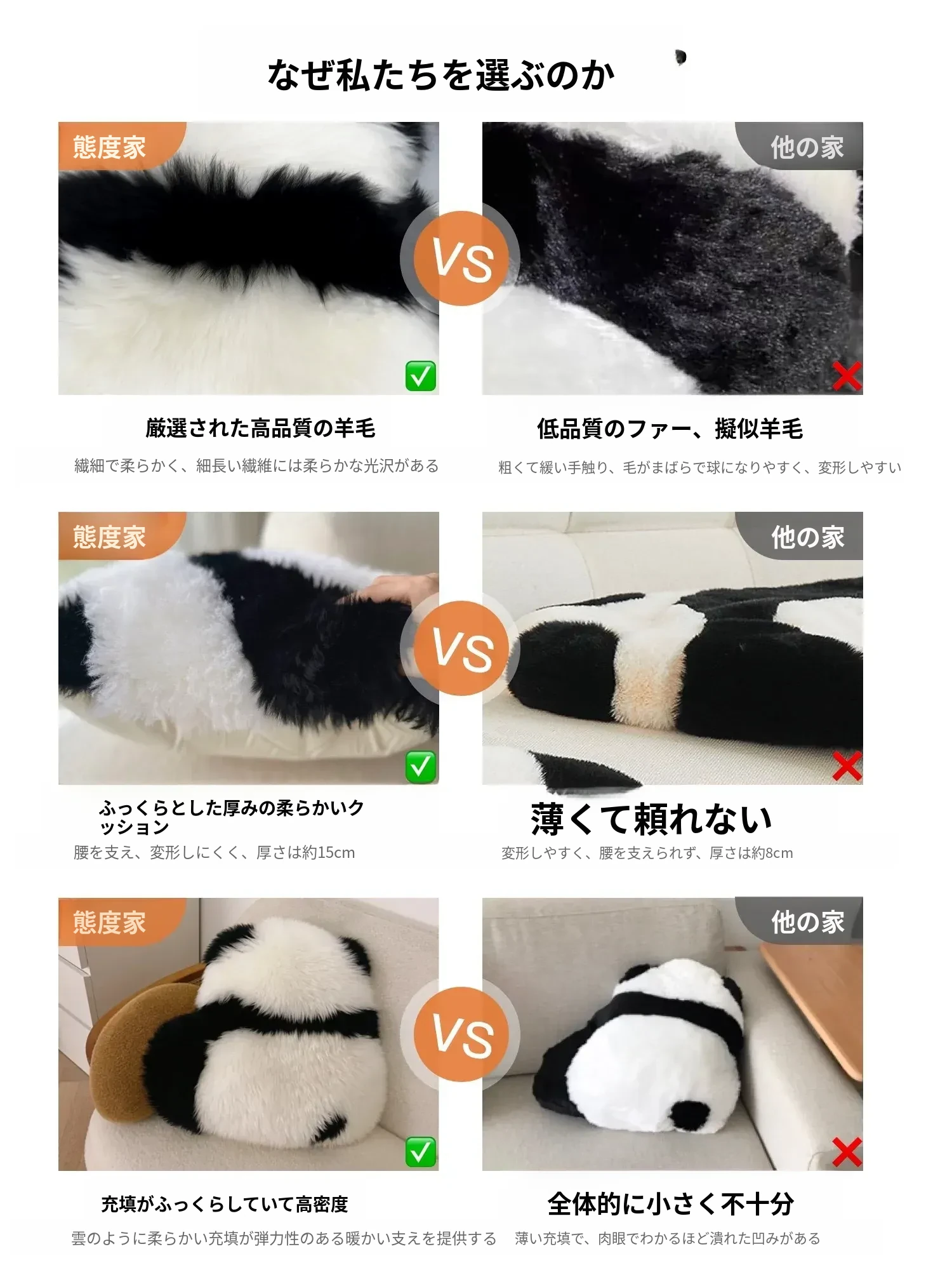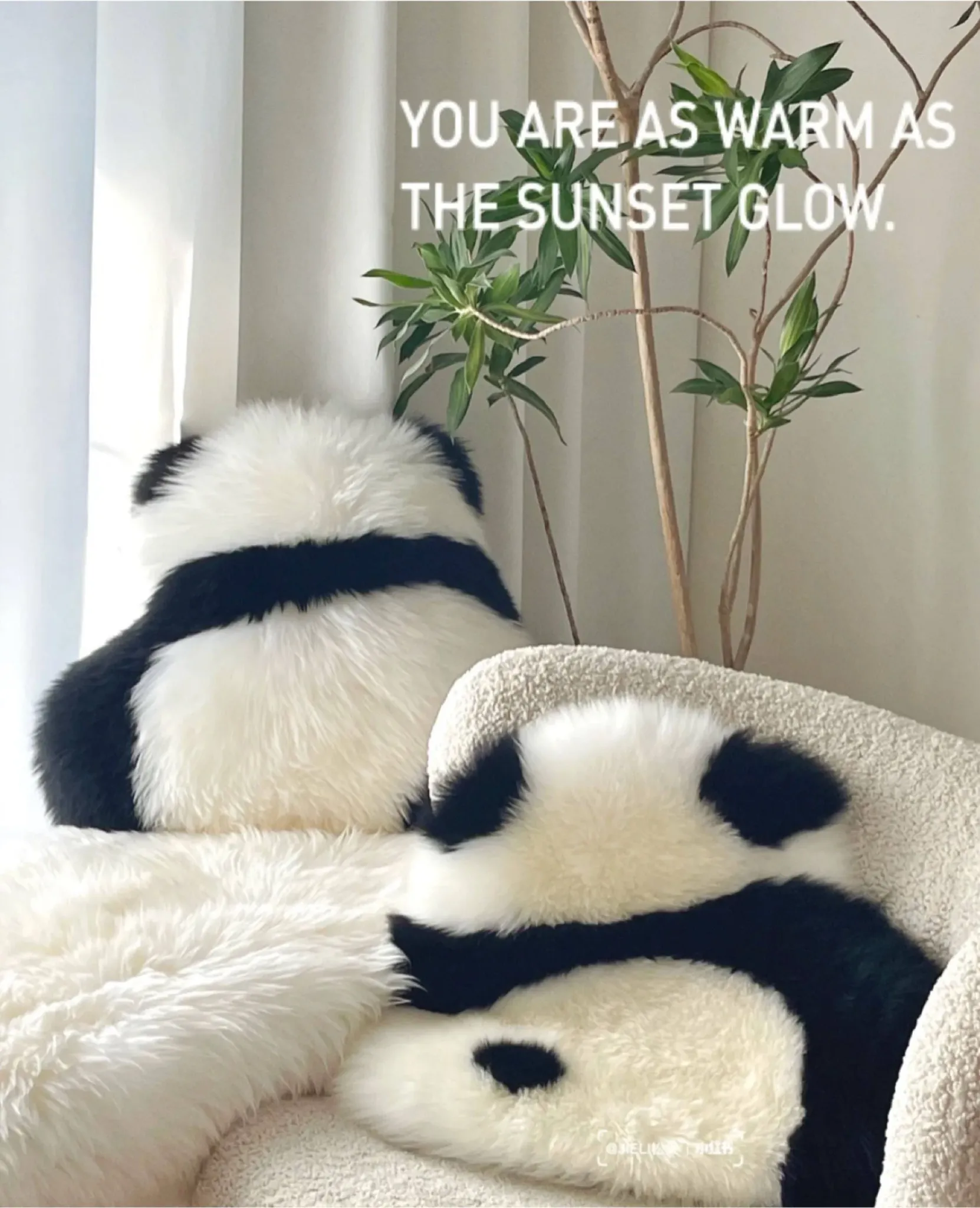 注意:パンダクッションは本物の羊毛ファー素材ですので、水洗いしないでください!!