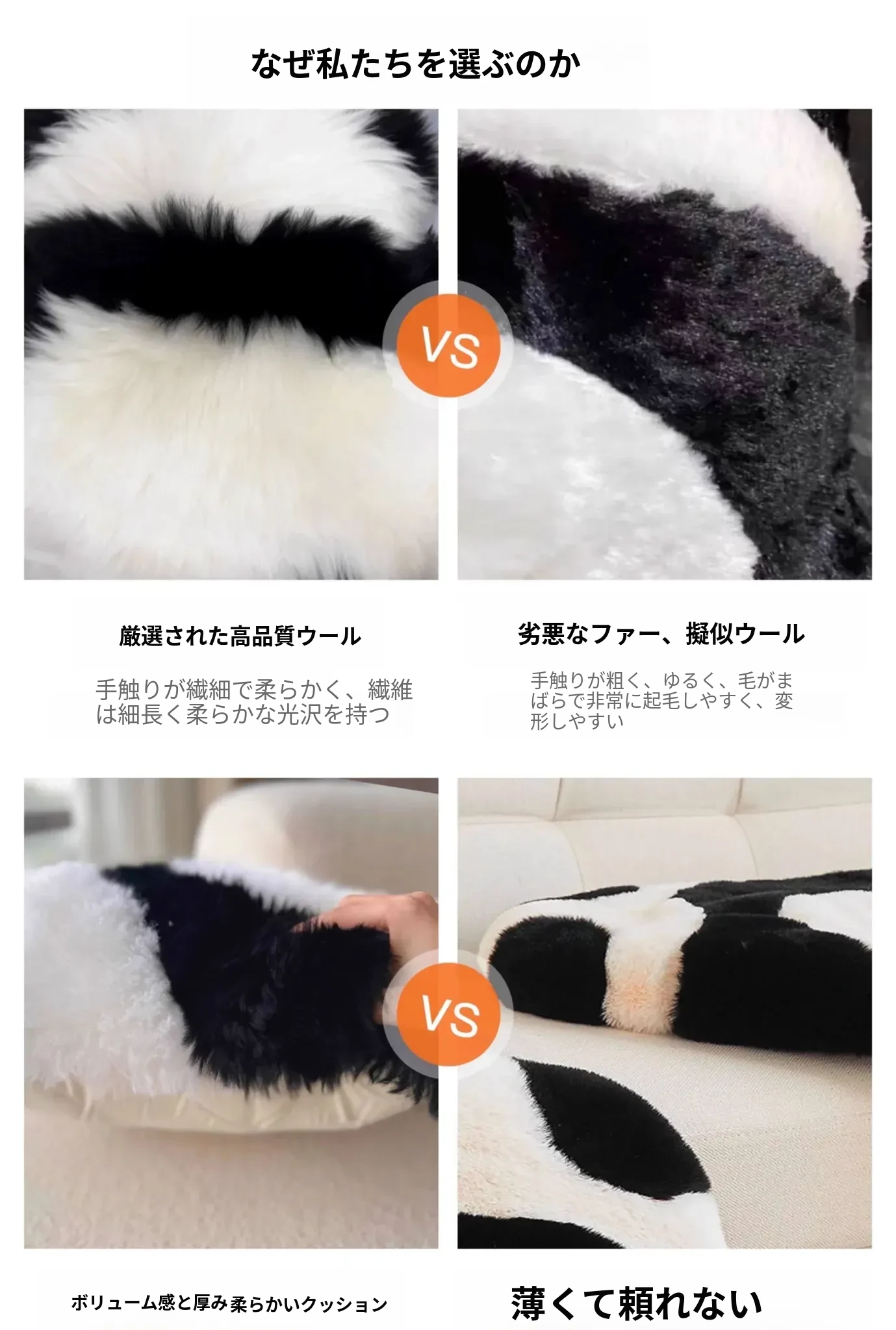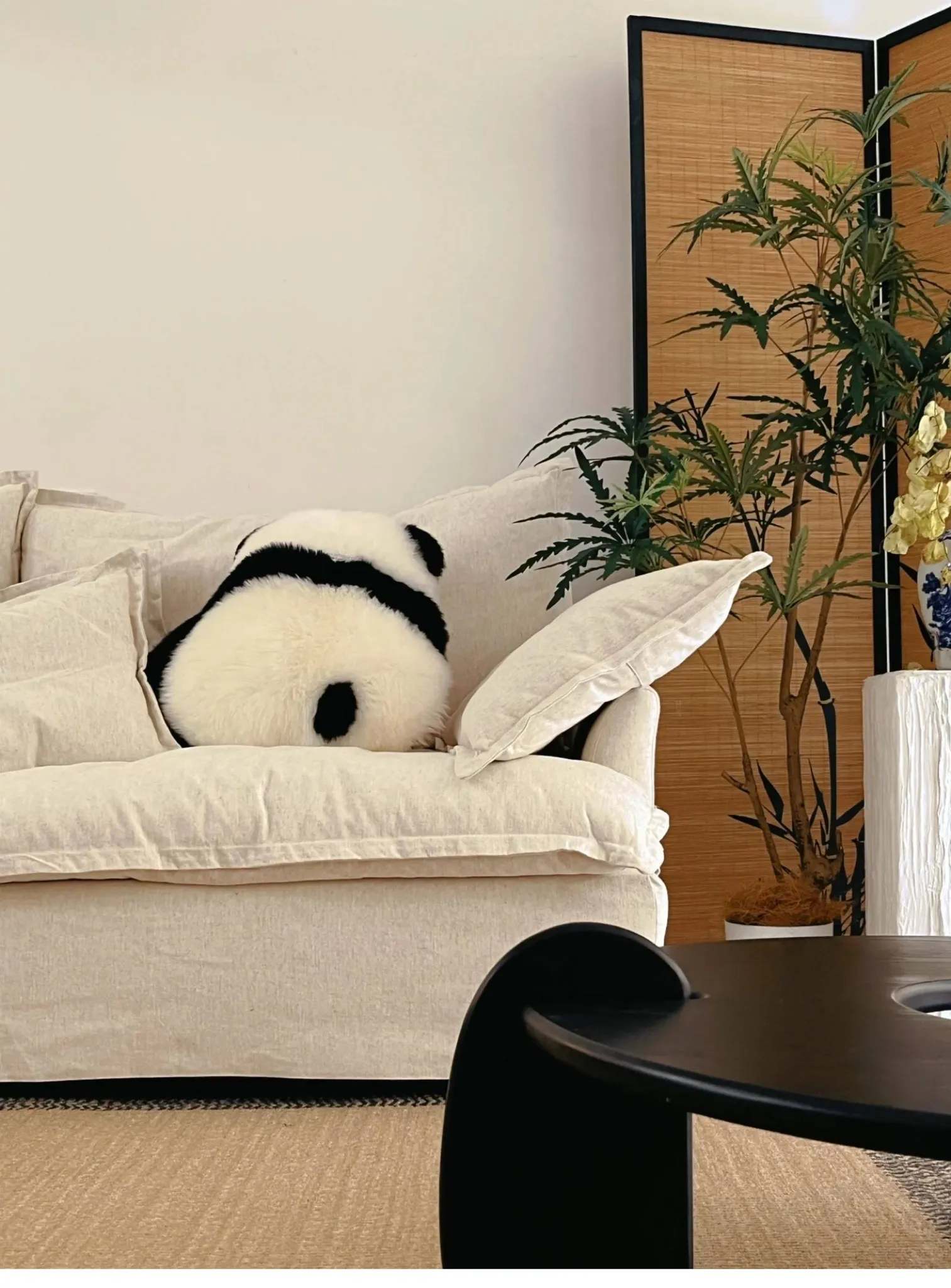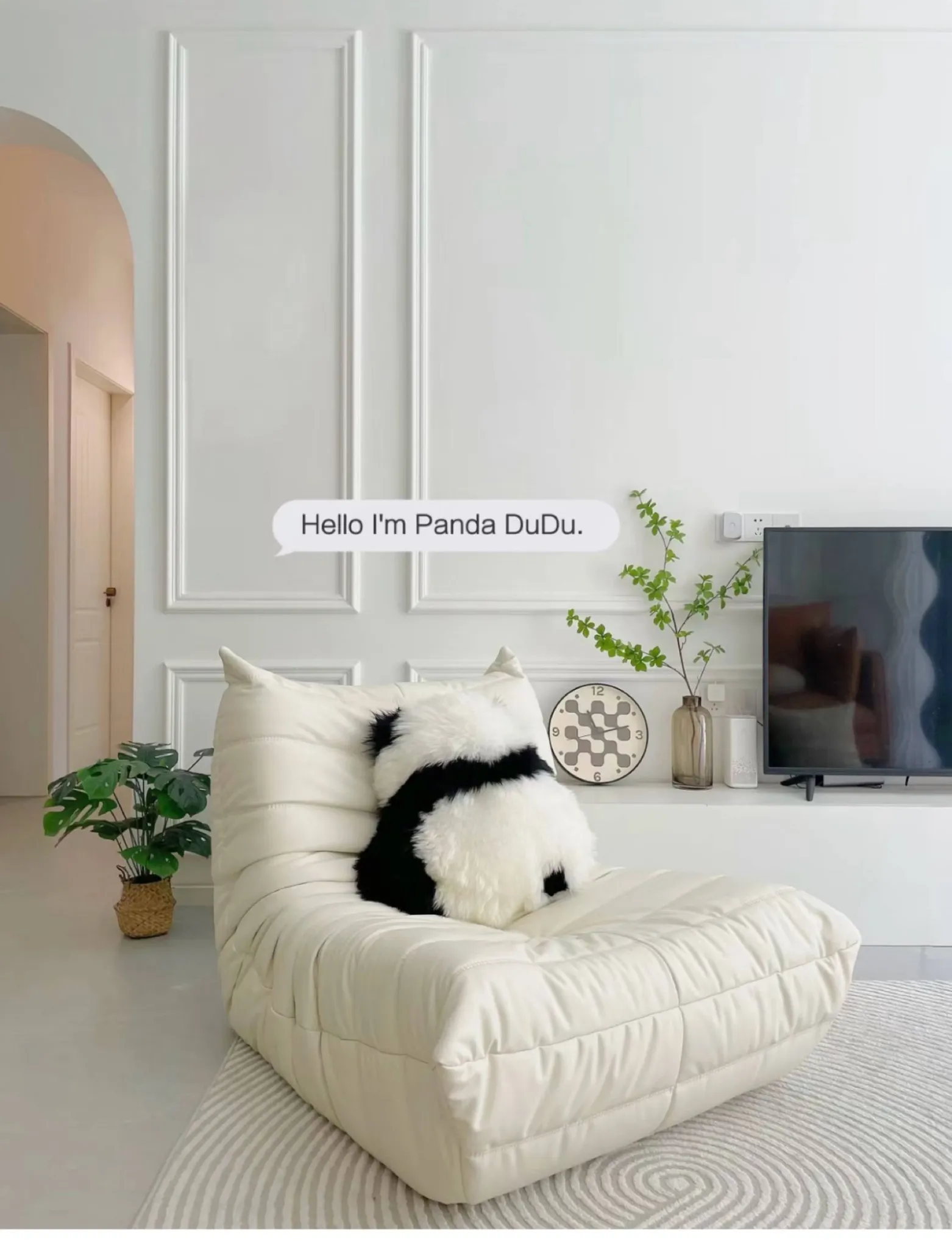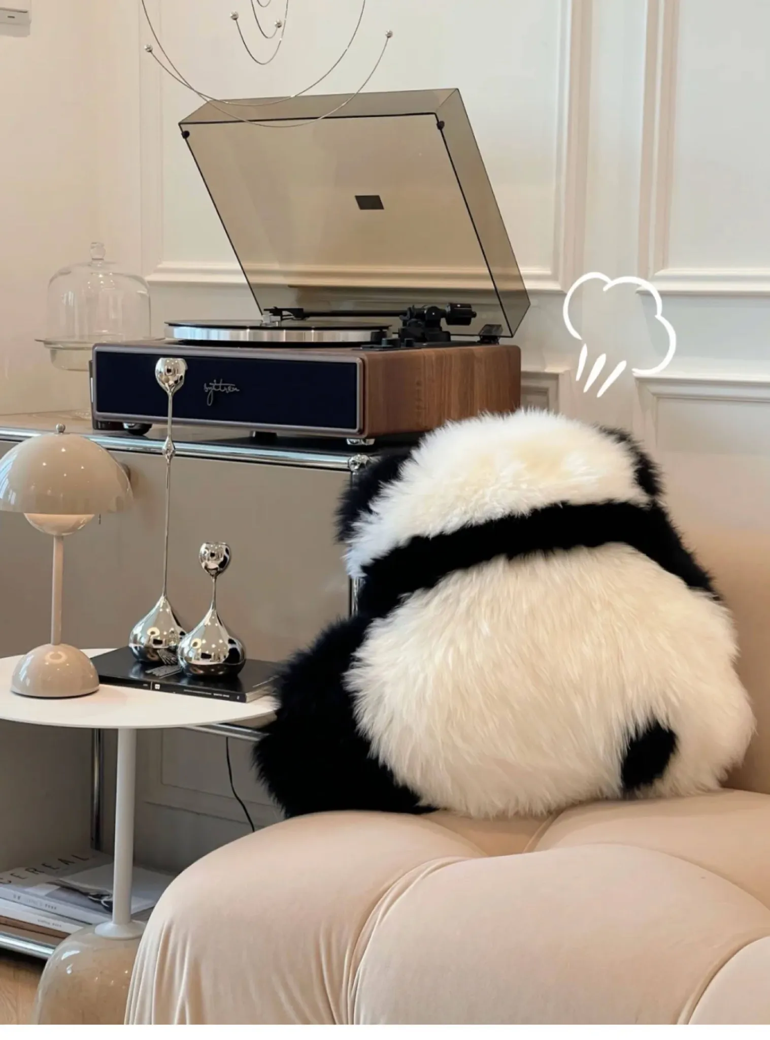 注意:パンダクッションは本物の羊毛ファー素材ですので、水洗いしないでください!!