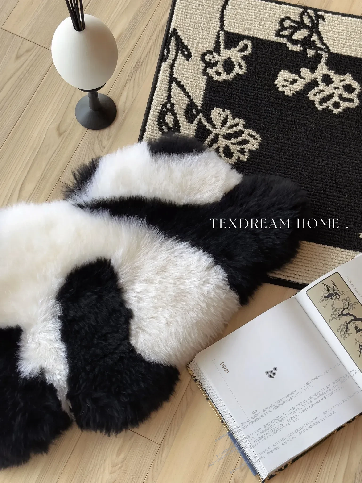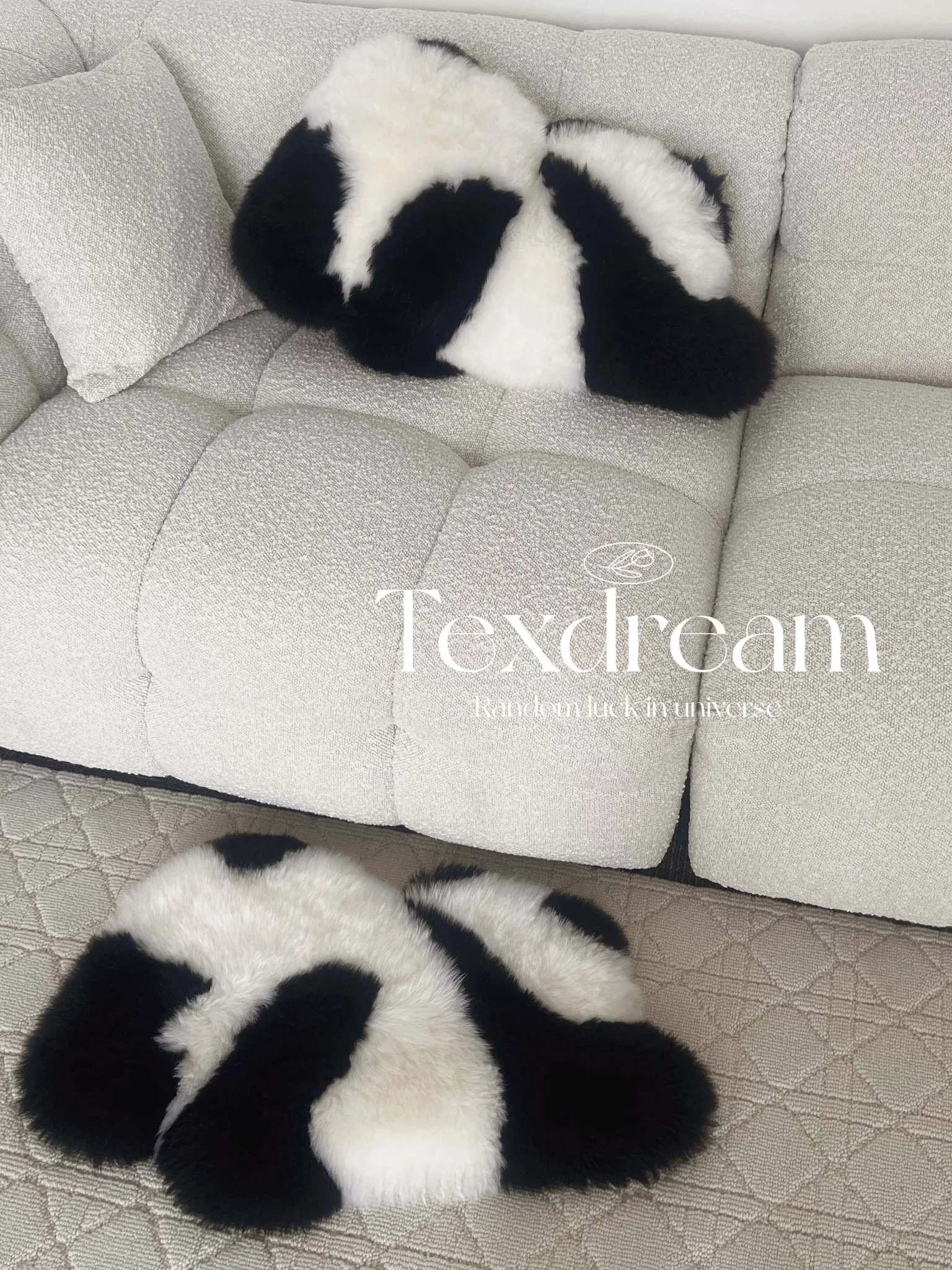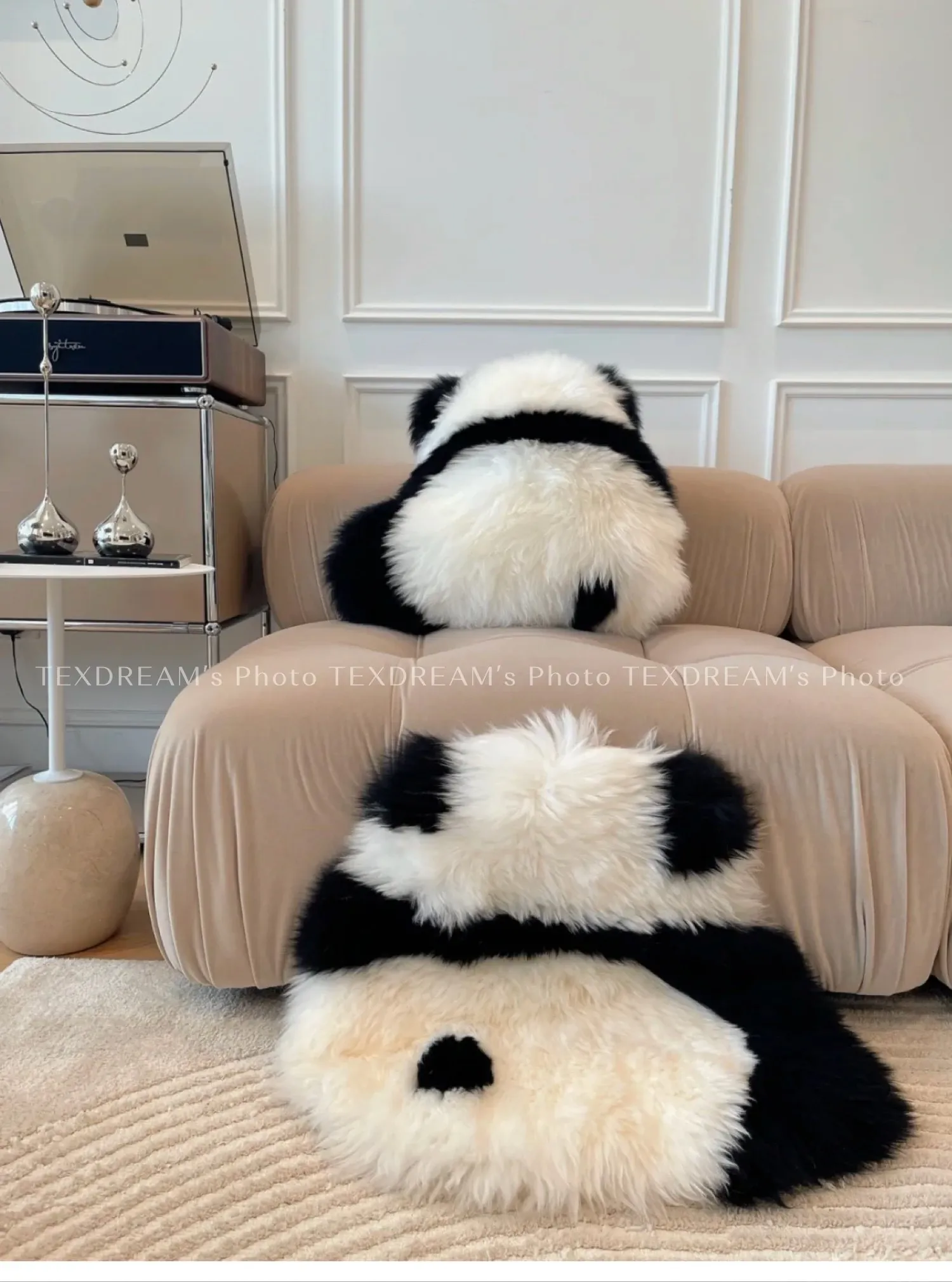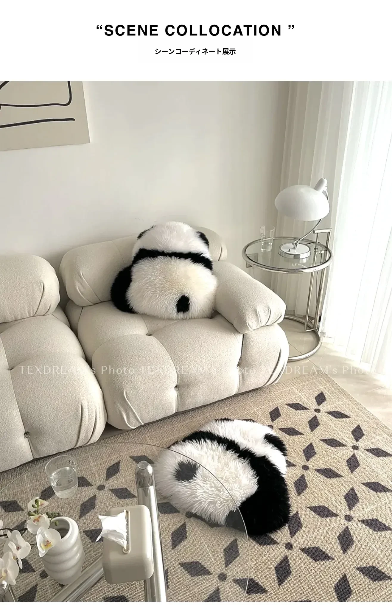Texdreamのスタイル|本物のウール使用!かわいいラン花デザインのパンダクッション、ソファや座布団にぴったりな愛らしいぬいぐるみ。あなたのリビングを華やかに彩ります!