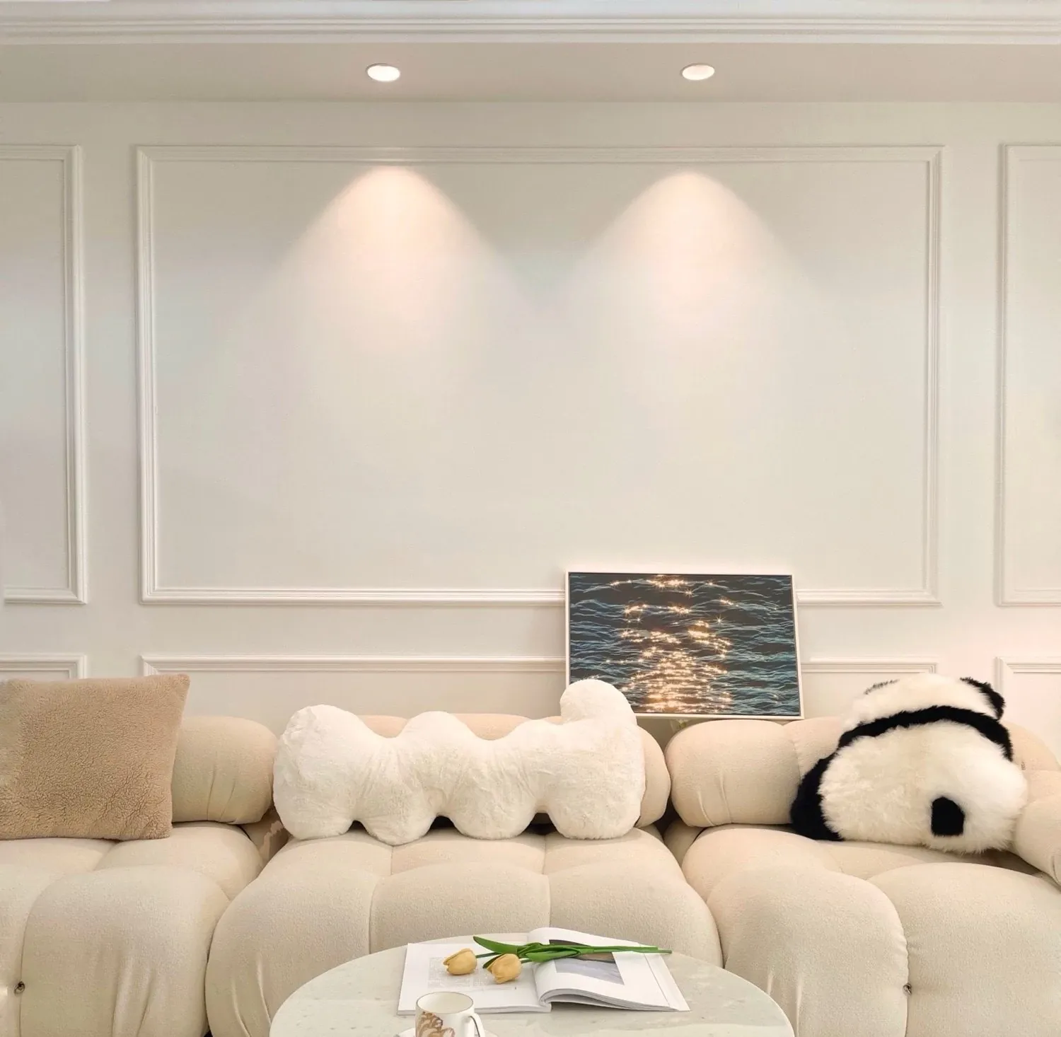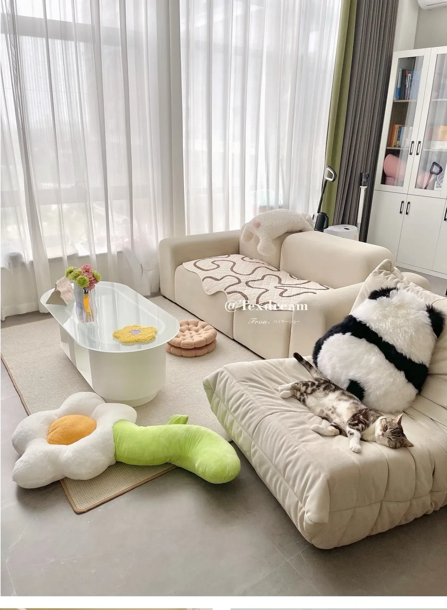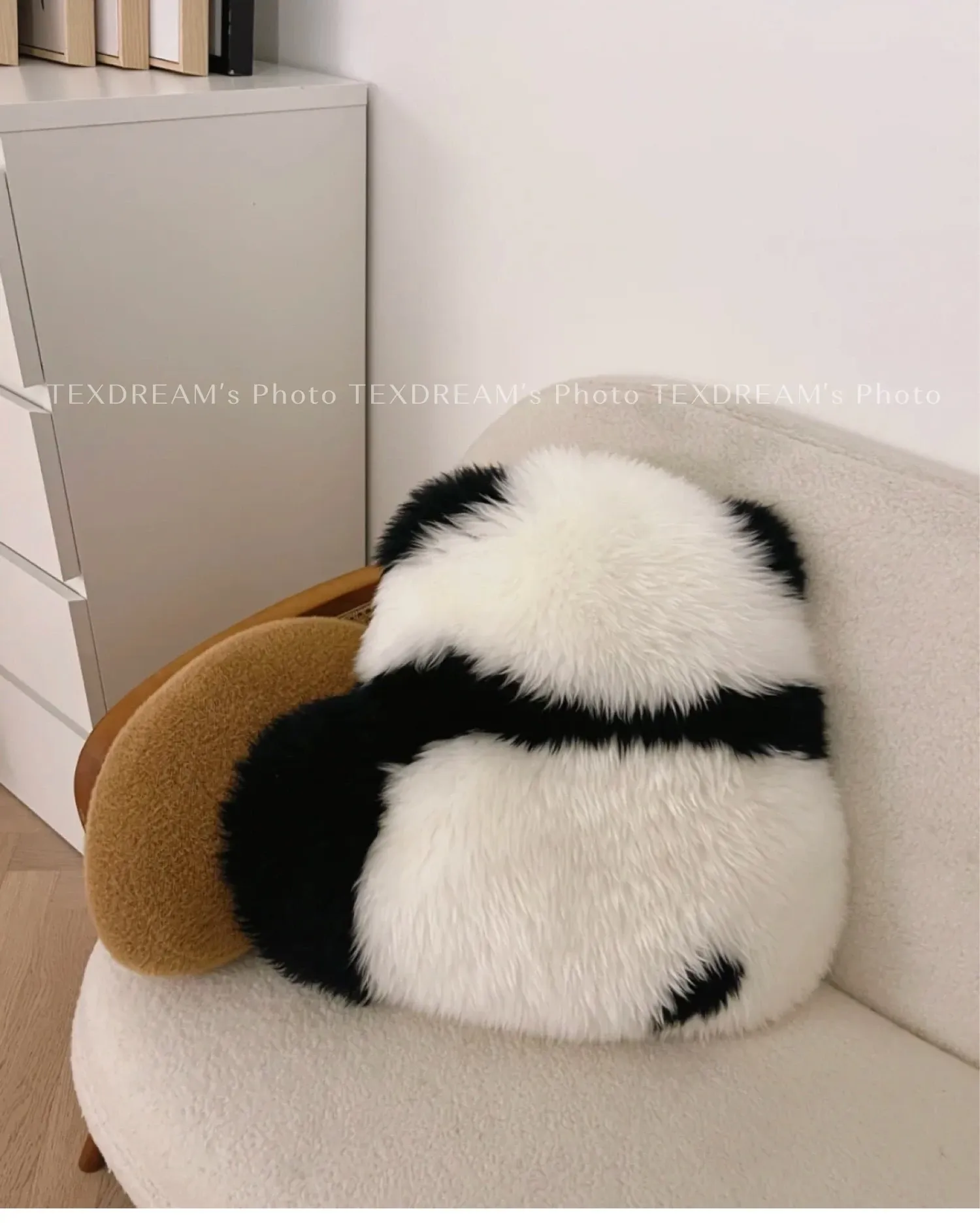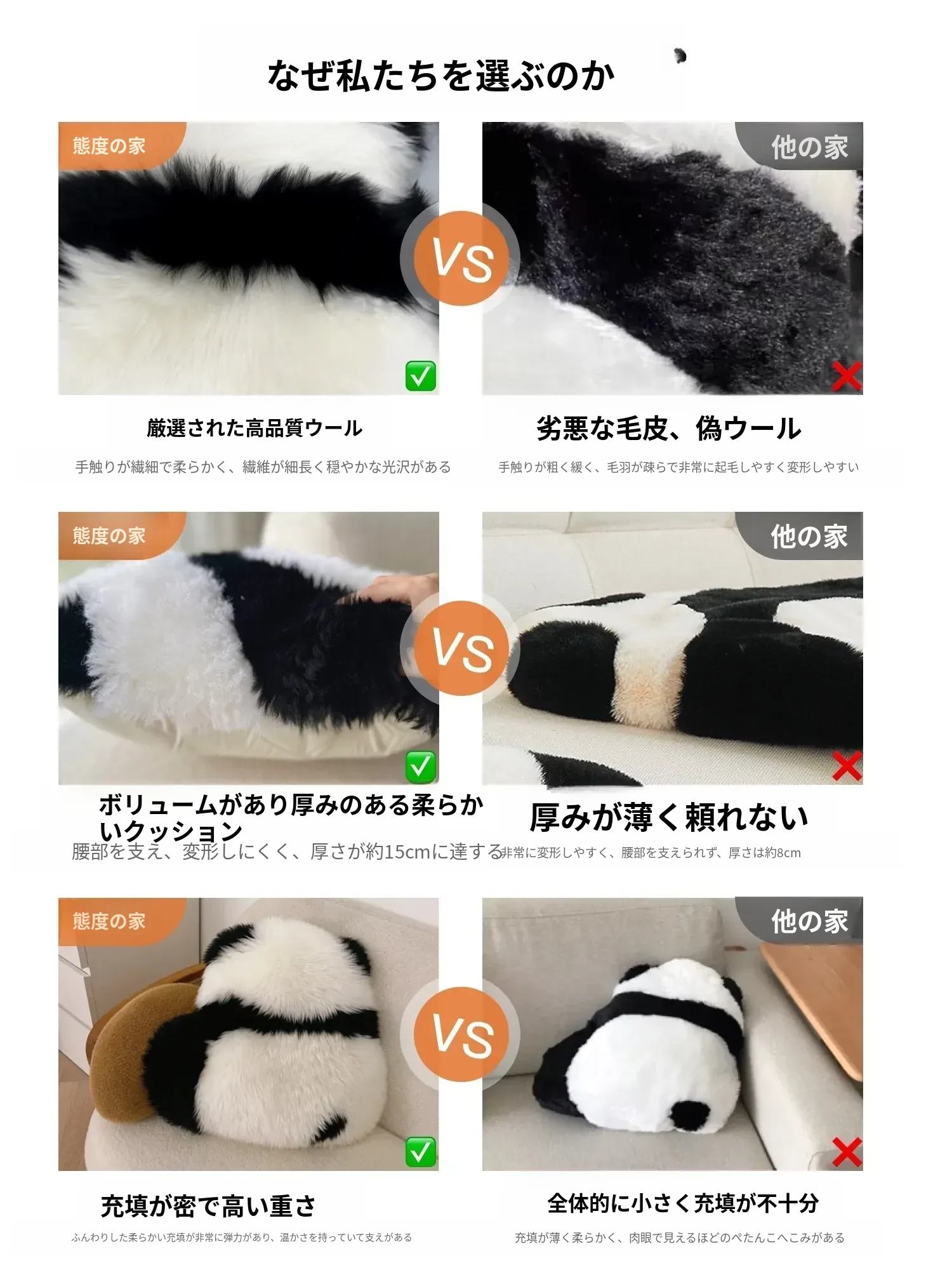 Texdreamのスタイル|本物のウール使用!かわいいラン花デザインのパンダクッション、ソファや座布団にぴったりな愛らしいぬいぐるみ。あなたのリビングを華やかに彩ります!