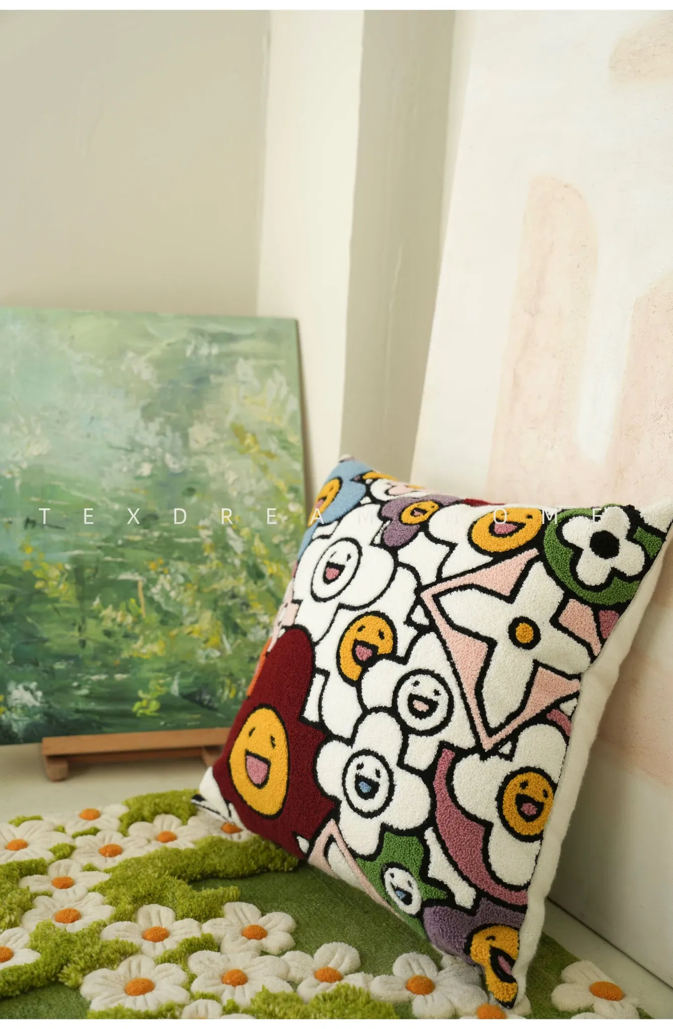 Texdream 立体刺繍クッションカバー - インスタ映えするトレンドデザインの抱き枕!おしゃれな空間を演出し、心地よいひとときを提供します。あなたのインテリアにぴったりのアイテム!