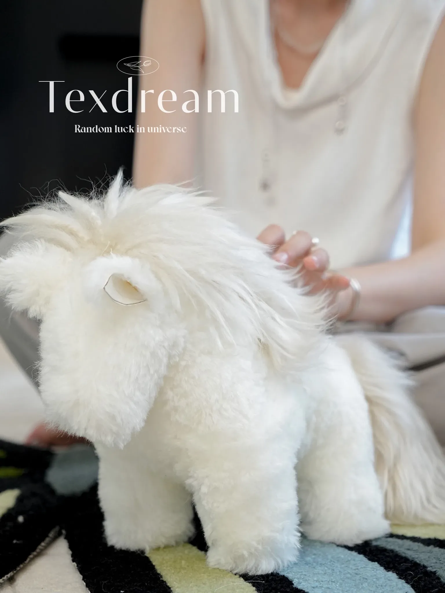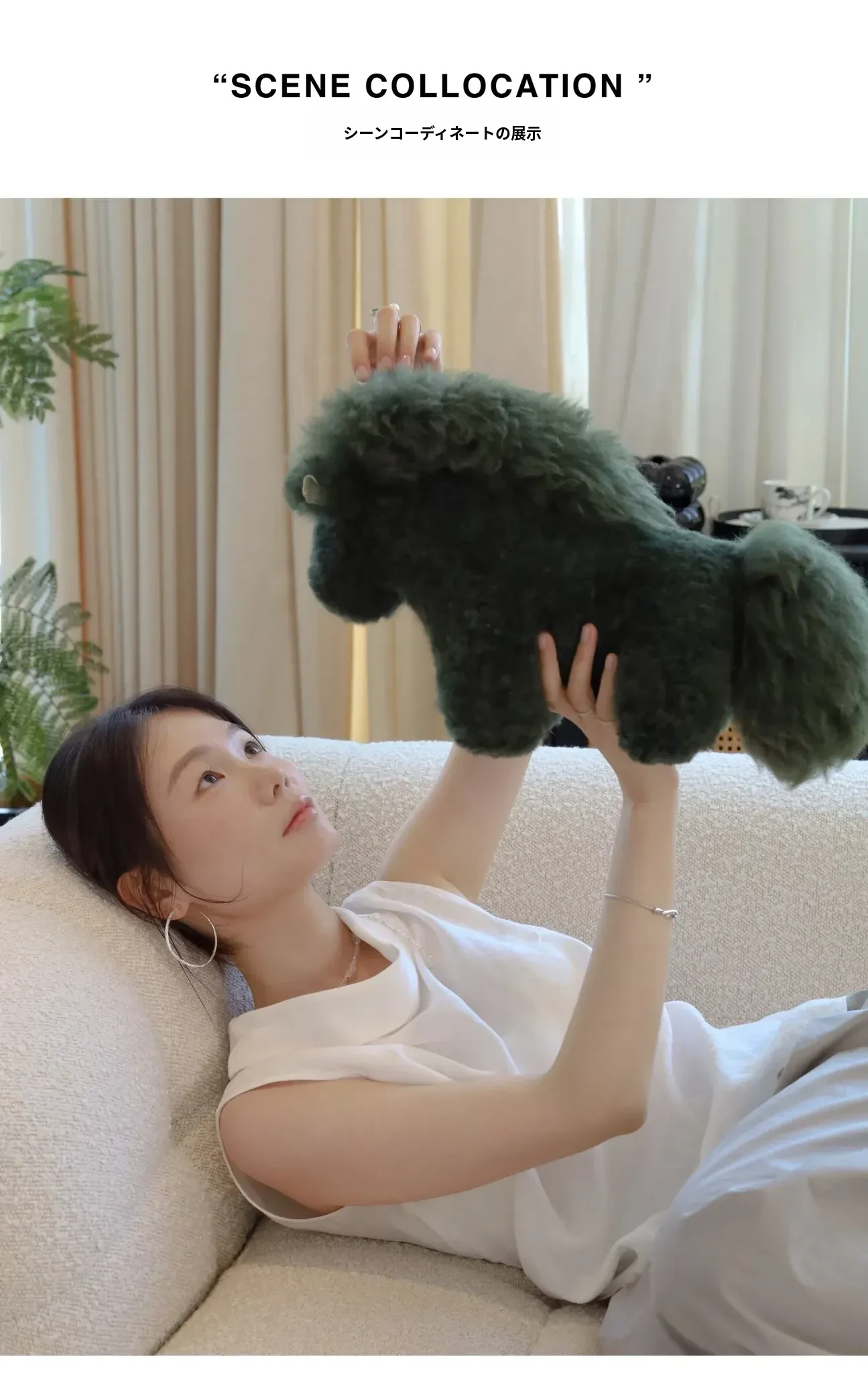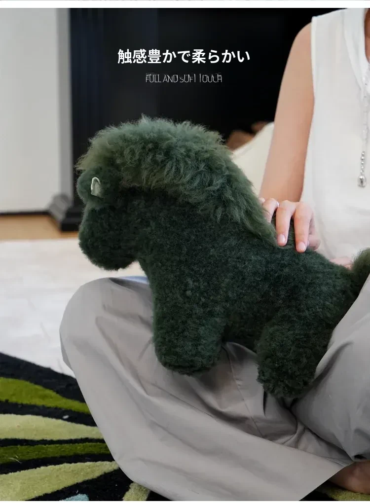 Texdreamのアッレタイ小馬の本物のウール製ぬいぐるみ - 可愛らしい子供用ソファクッションやインテリアアクセサリーに最適!