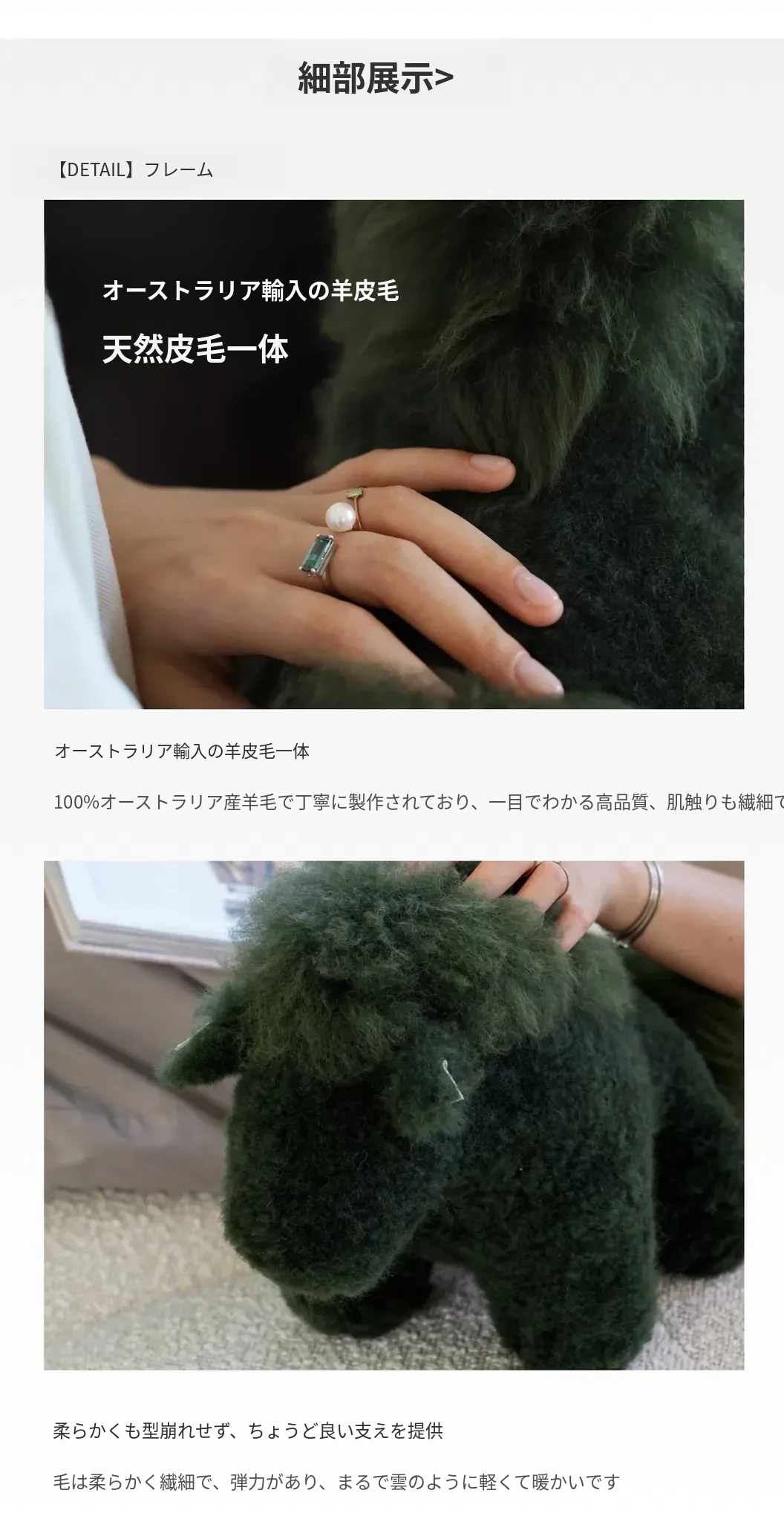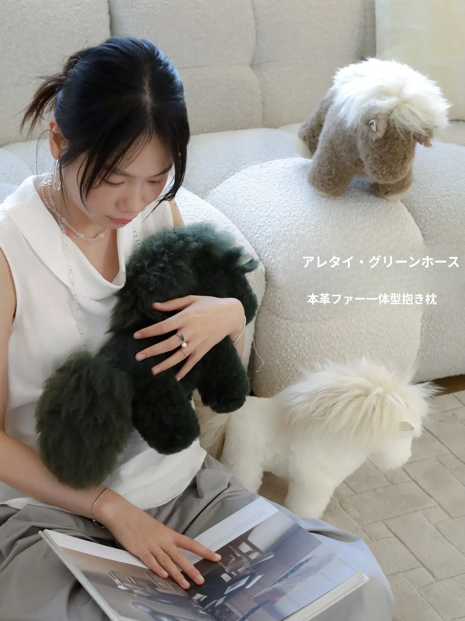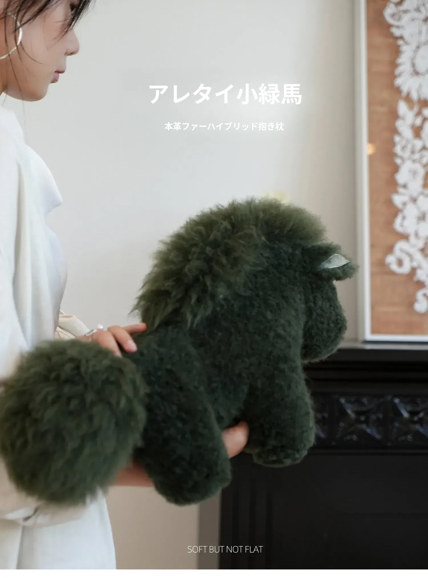 Texdreamのアッレタイ小馬の本物のウール製ぬいぐるみ - 可愛らしい子供用ソファクッションやインテリアアクセサリーに最適!