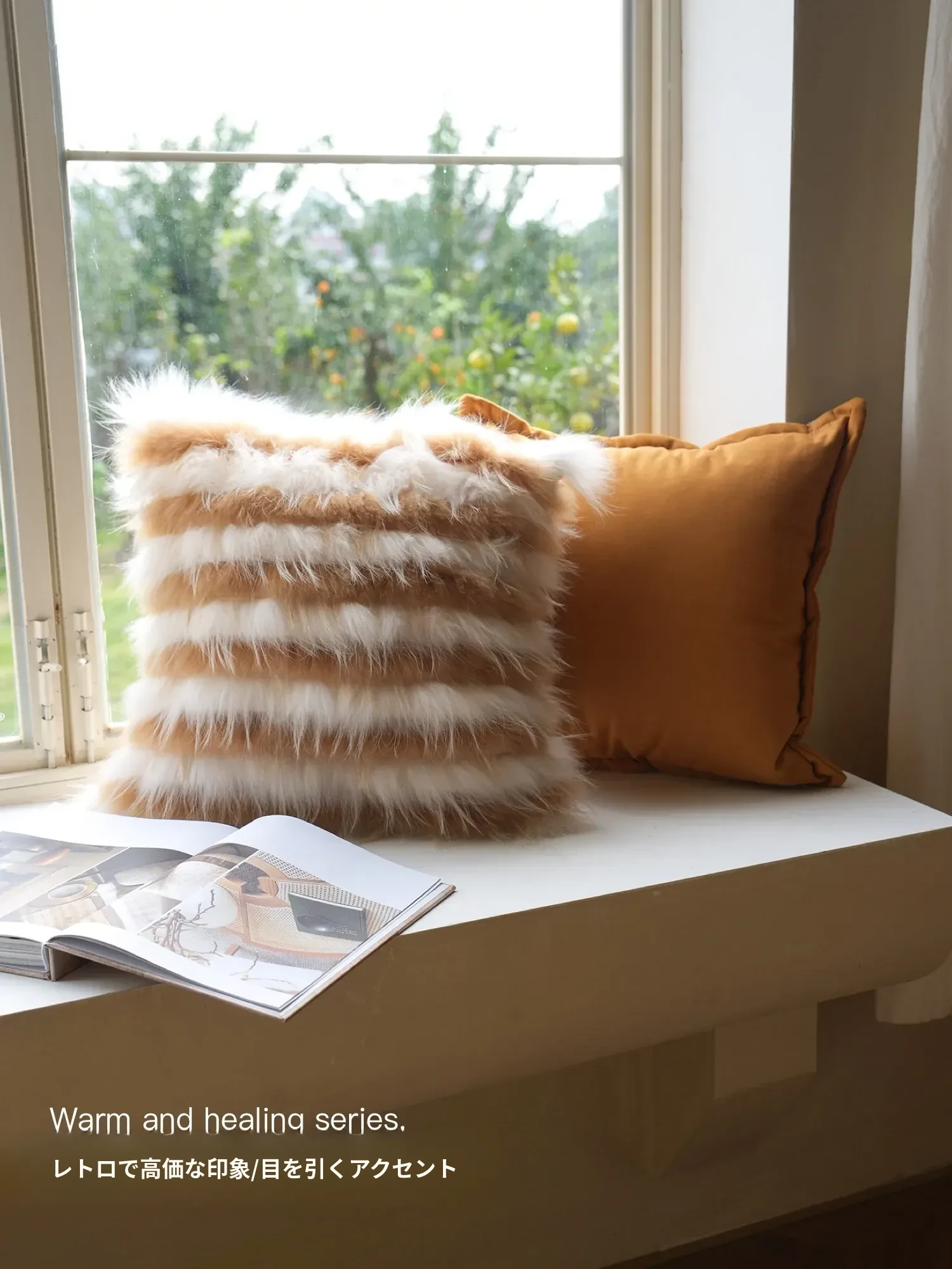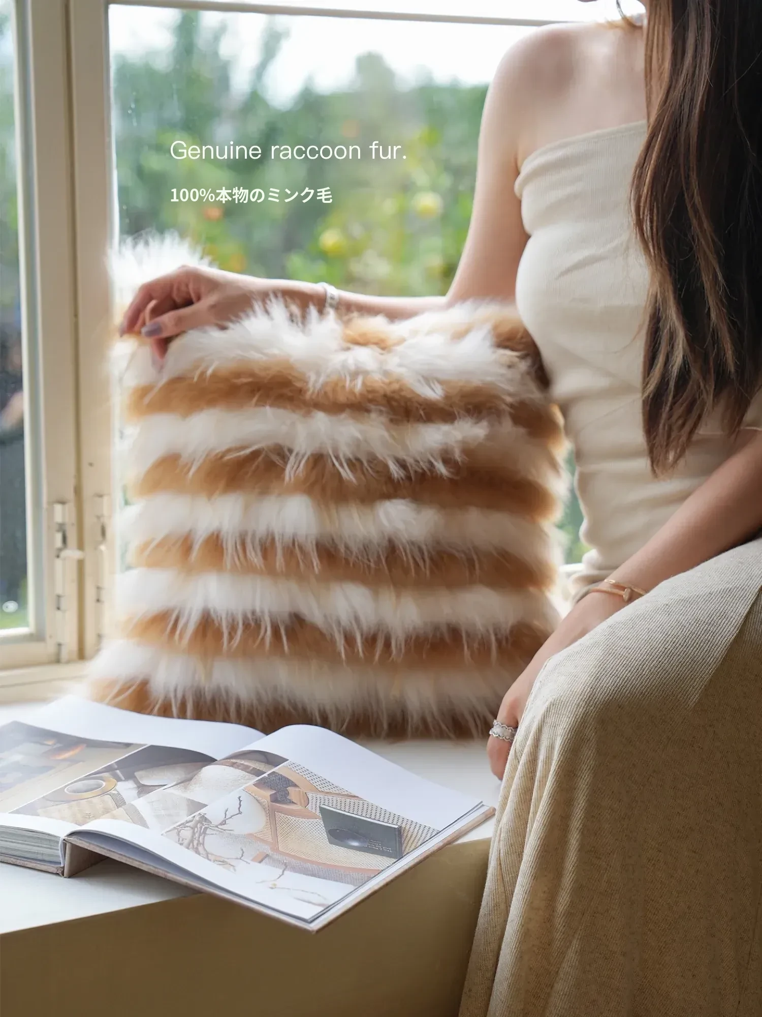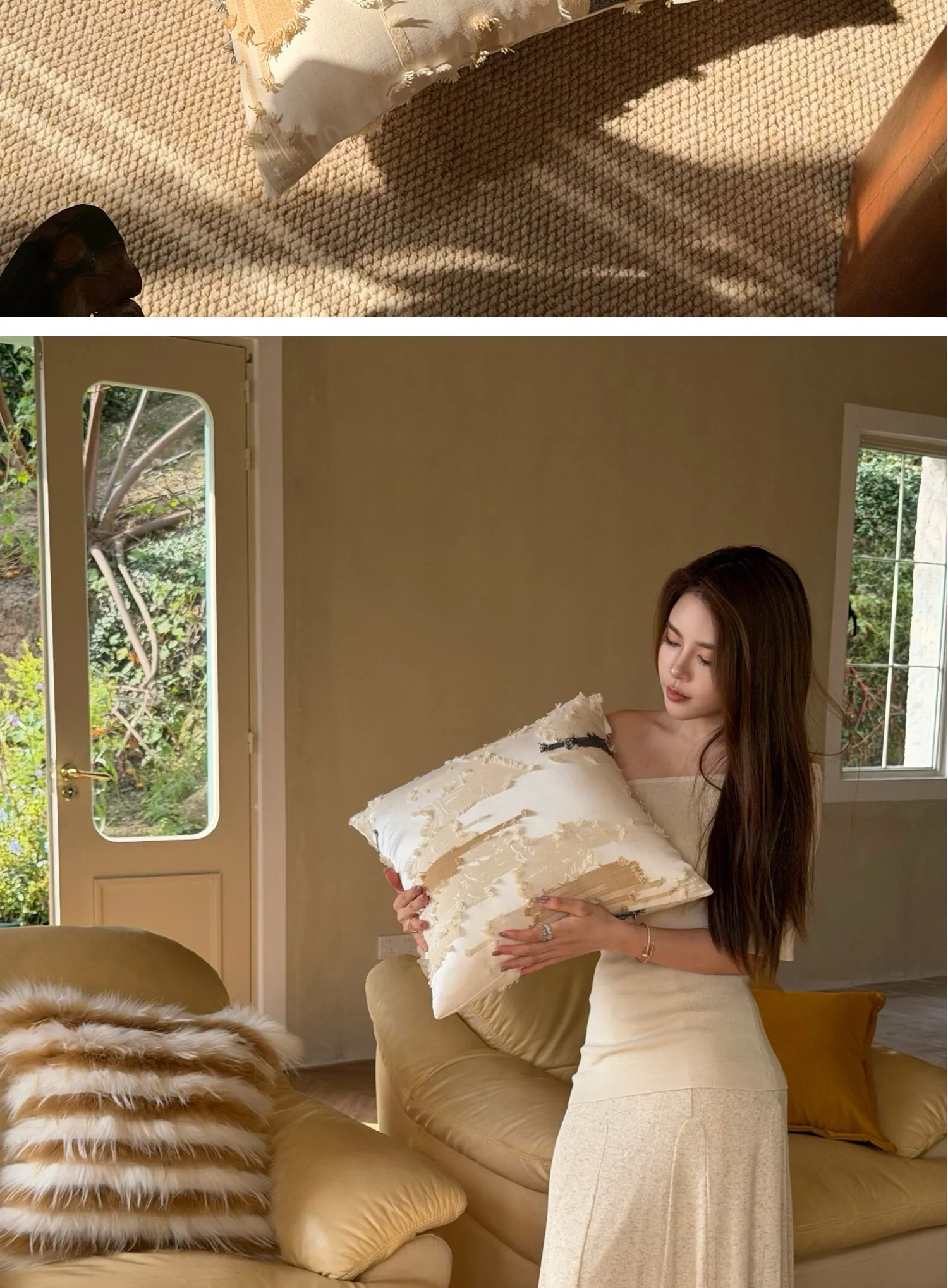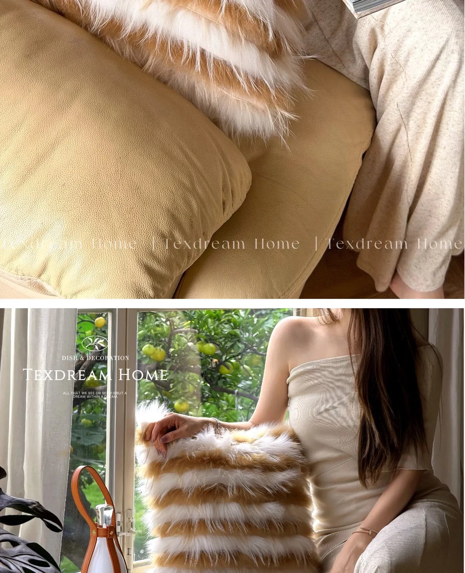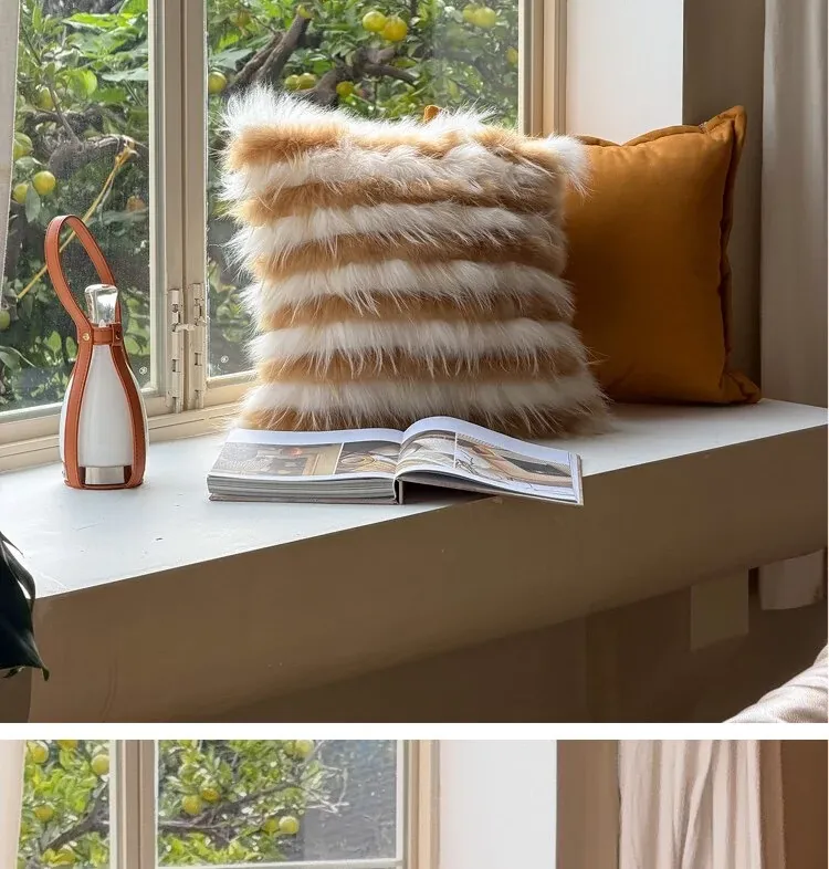 Texdreamアティテュード アーモンドイエローINS風ラグジュアリーなファー抱き枕 高級感溢れるモデルルーム用ソファクッション おしゃれなインテリアに最適