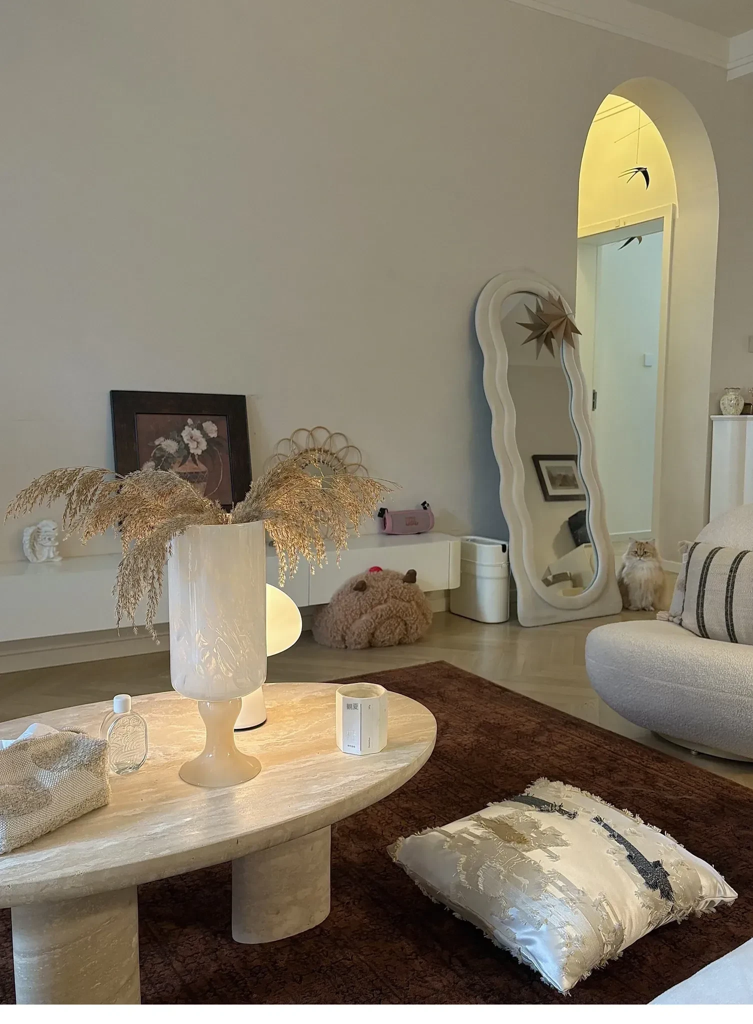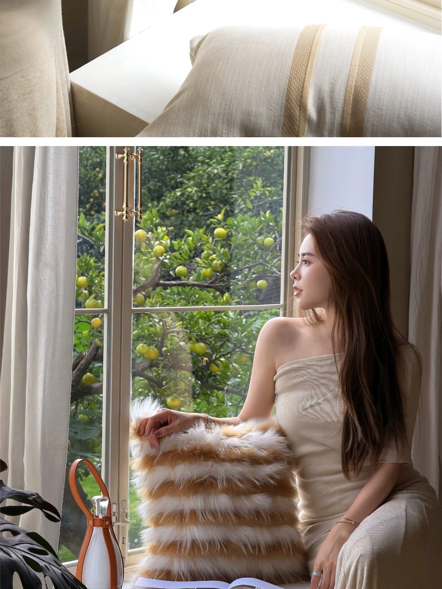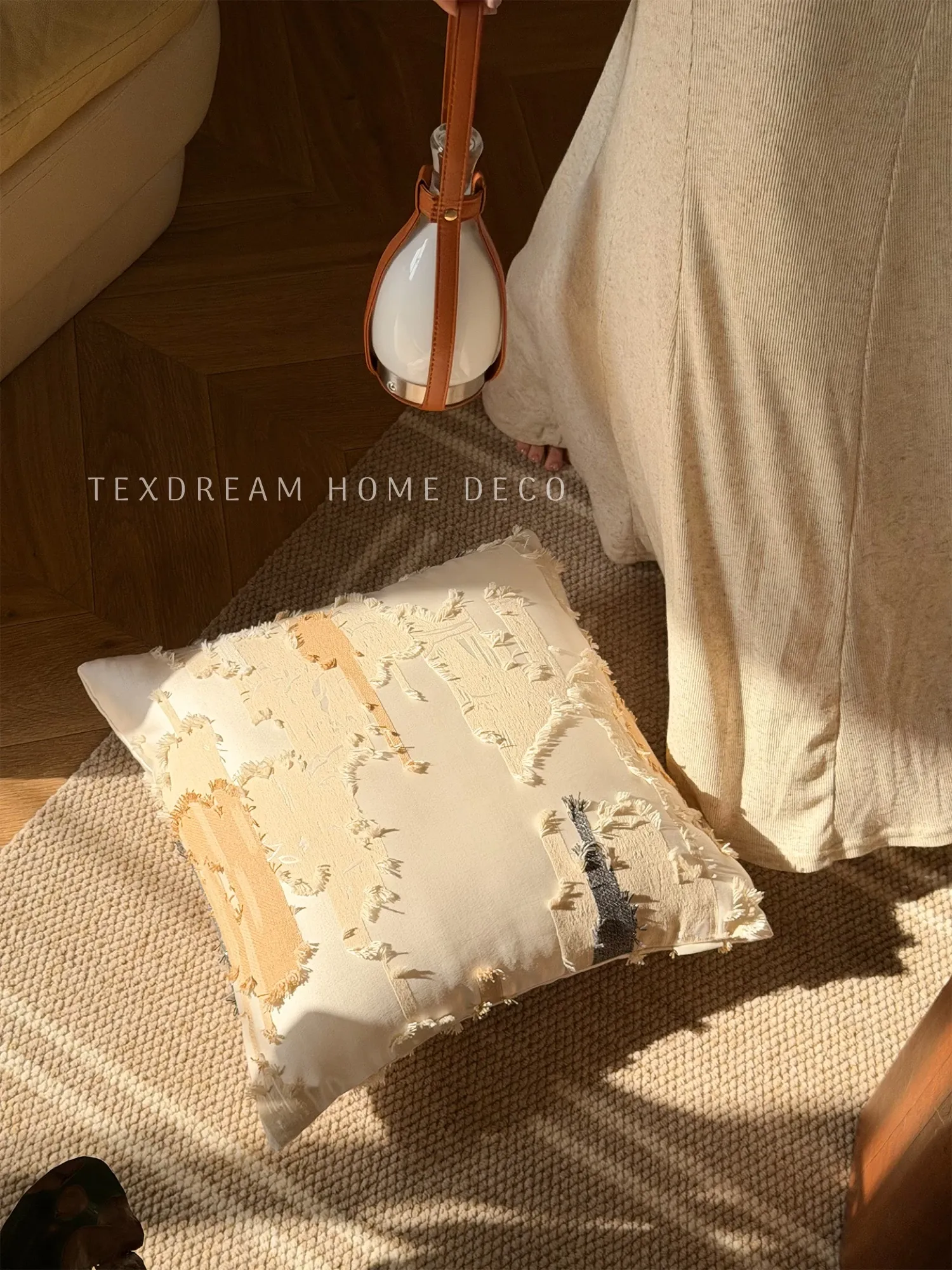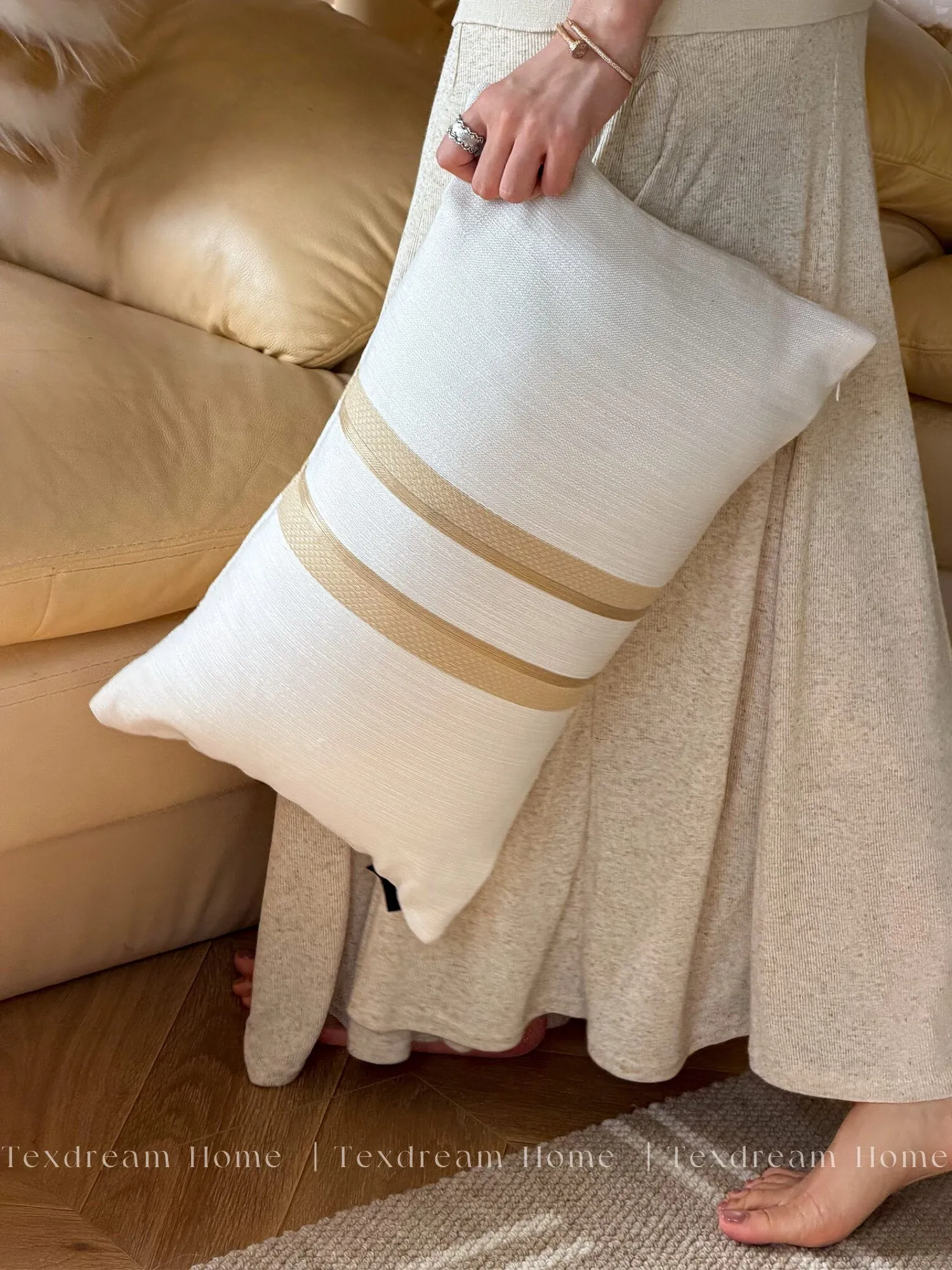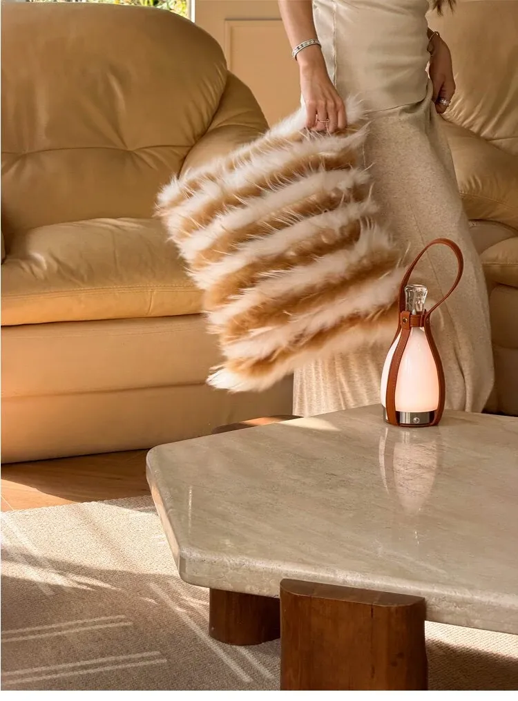 Texdreamアティテュード アーモンドイエローINS風ラグジュアリーなファー抱き枕 高級感溢れるモデルルーム用ソファクッション おしゃれなインテリアに最適