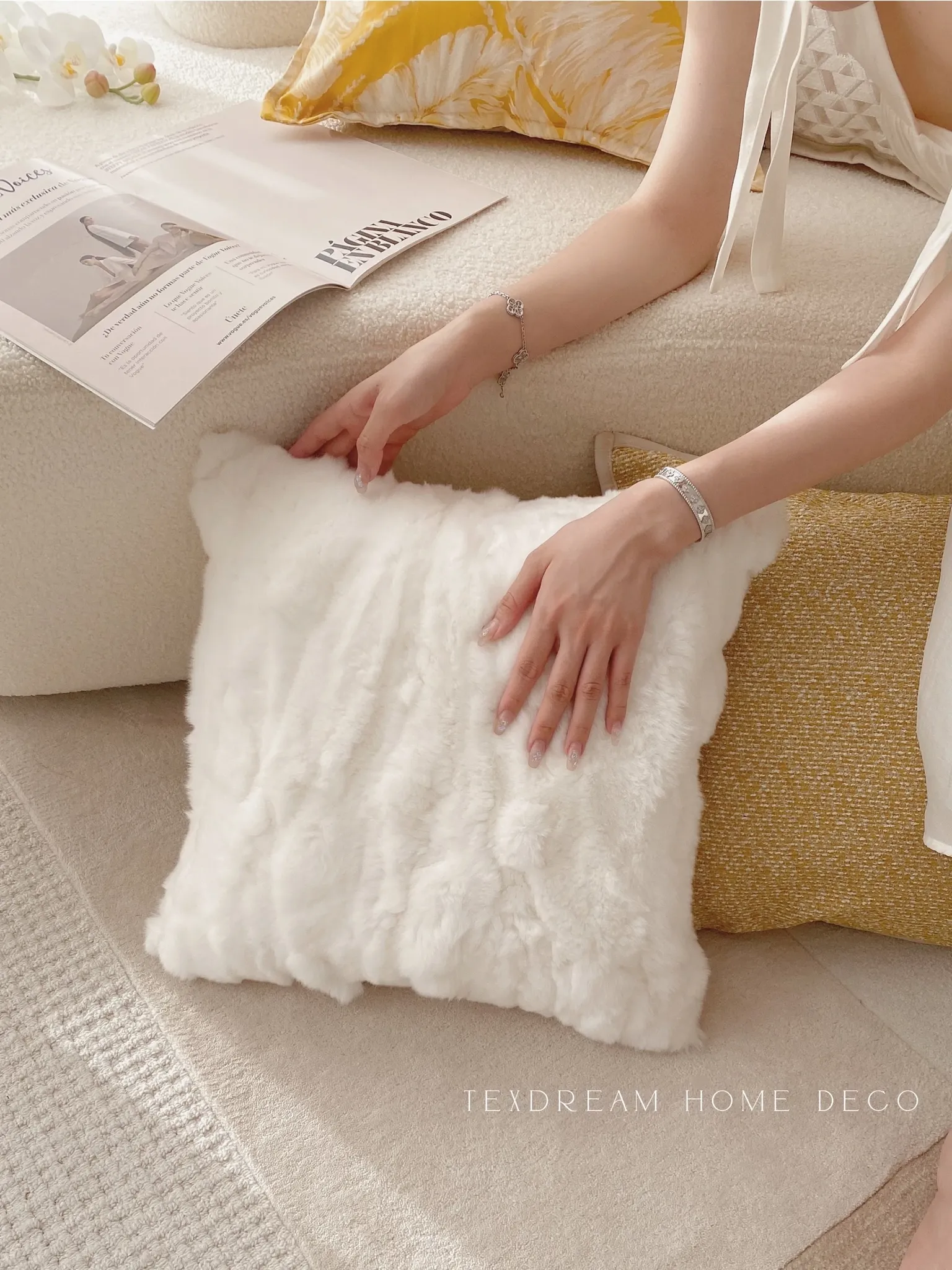 【45*45cm ミンクファー - 本白】