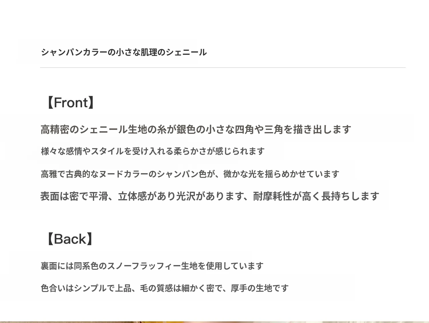 【シャンパン色 小テクスチャー シェニール】