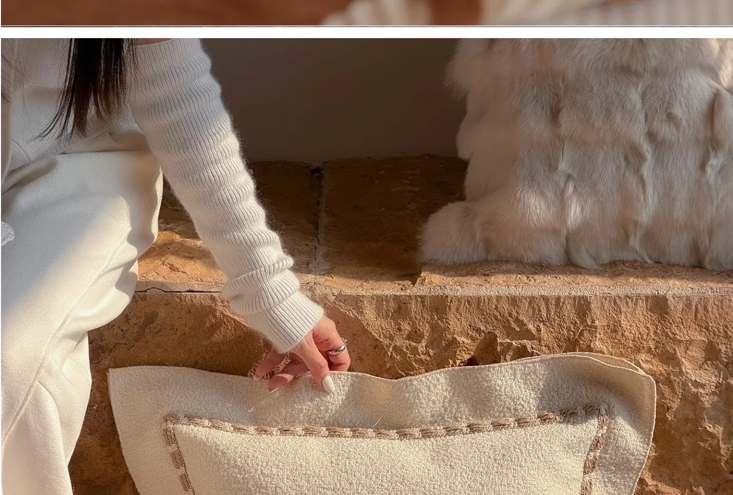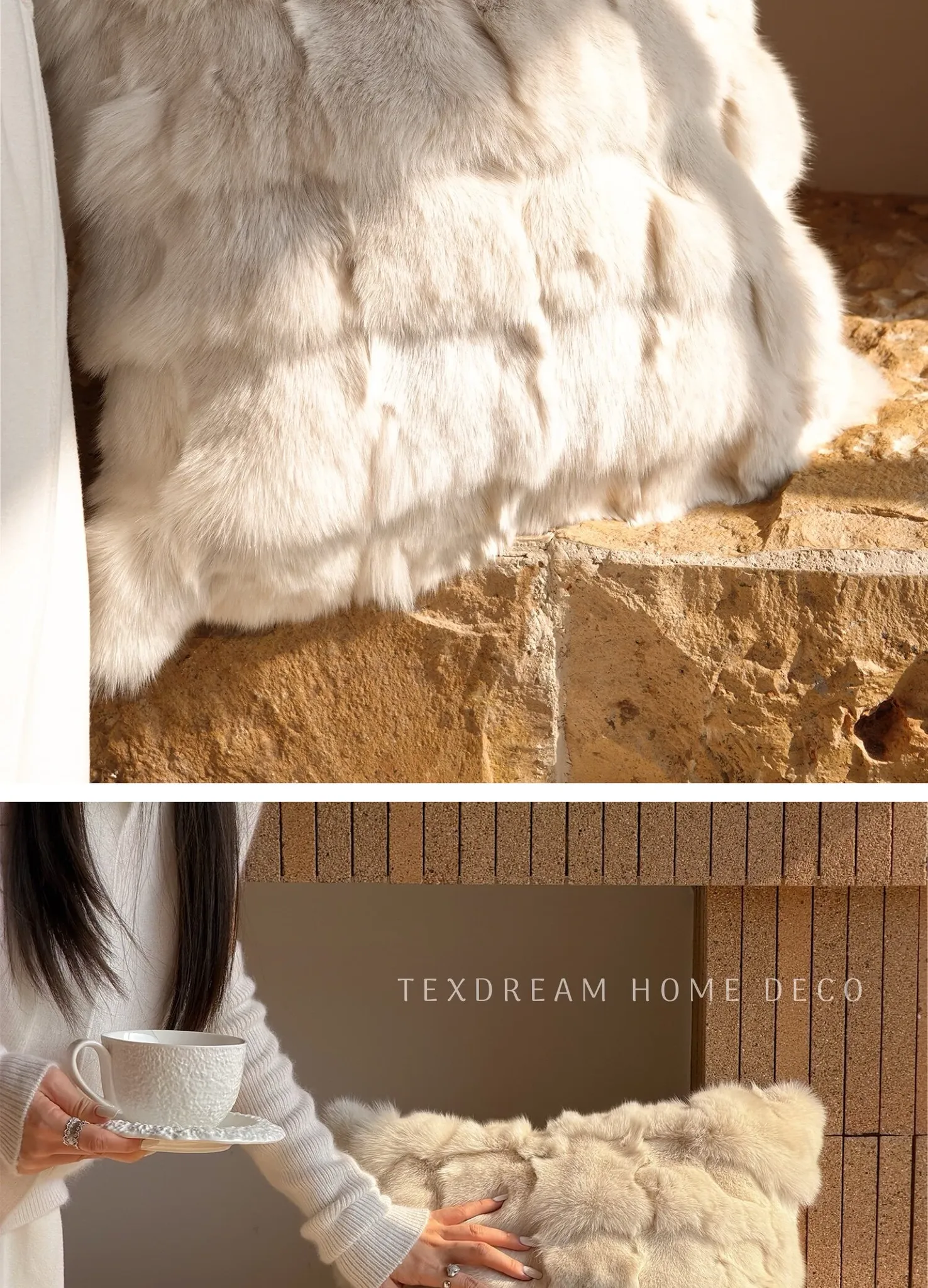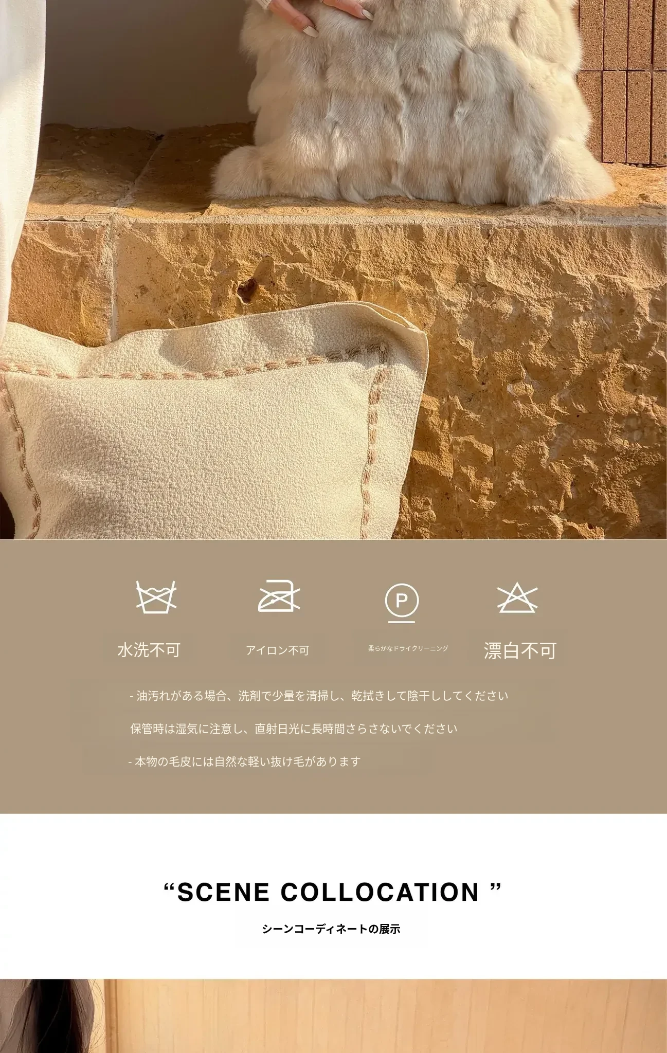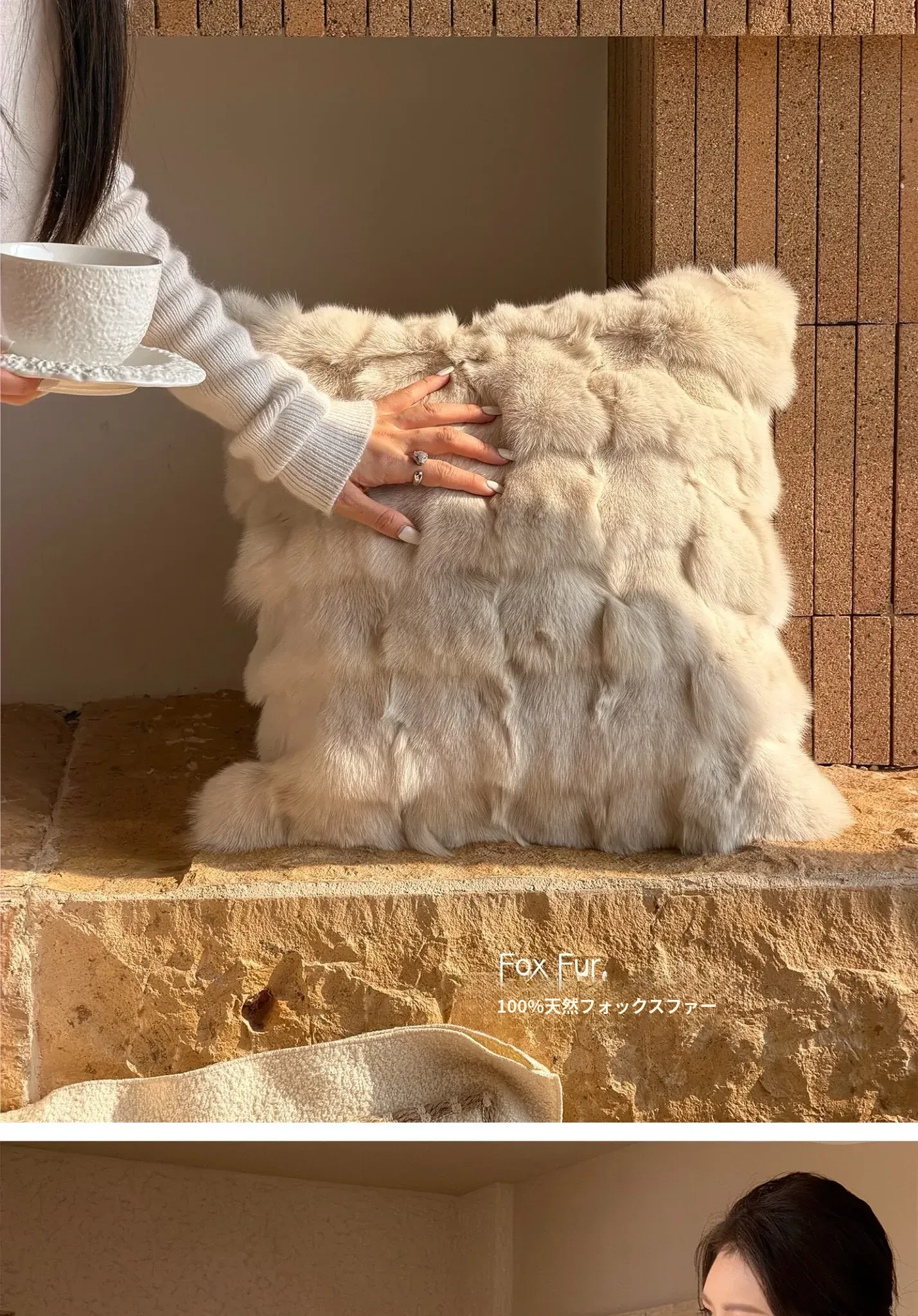 【100%フォックスファー | ミルクアーモンド色】45*45cm