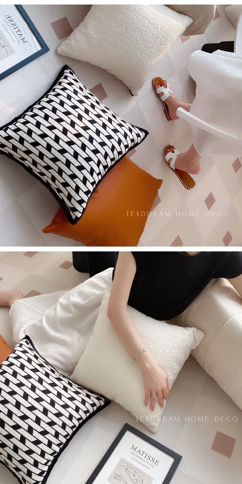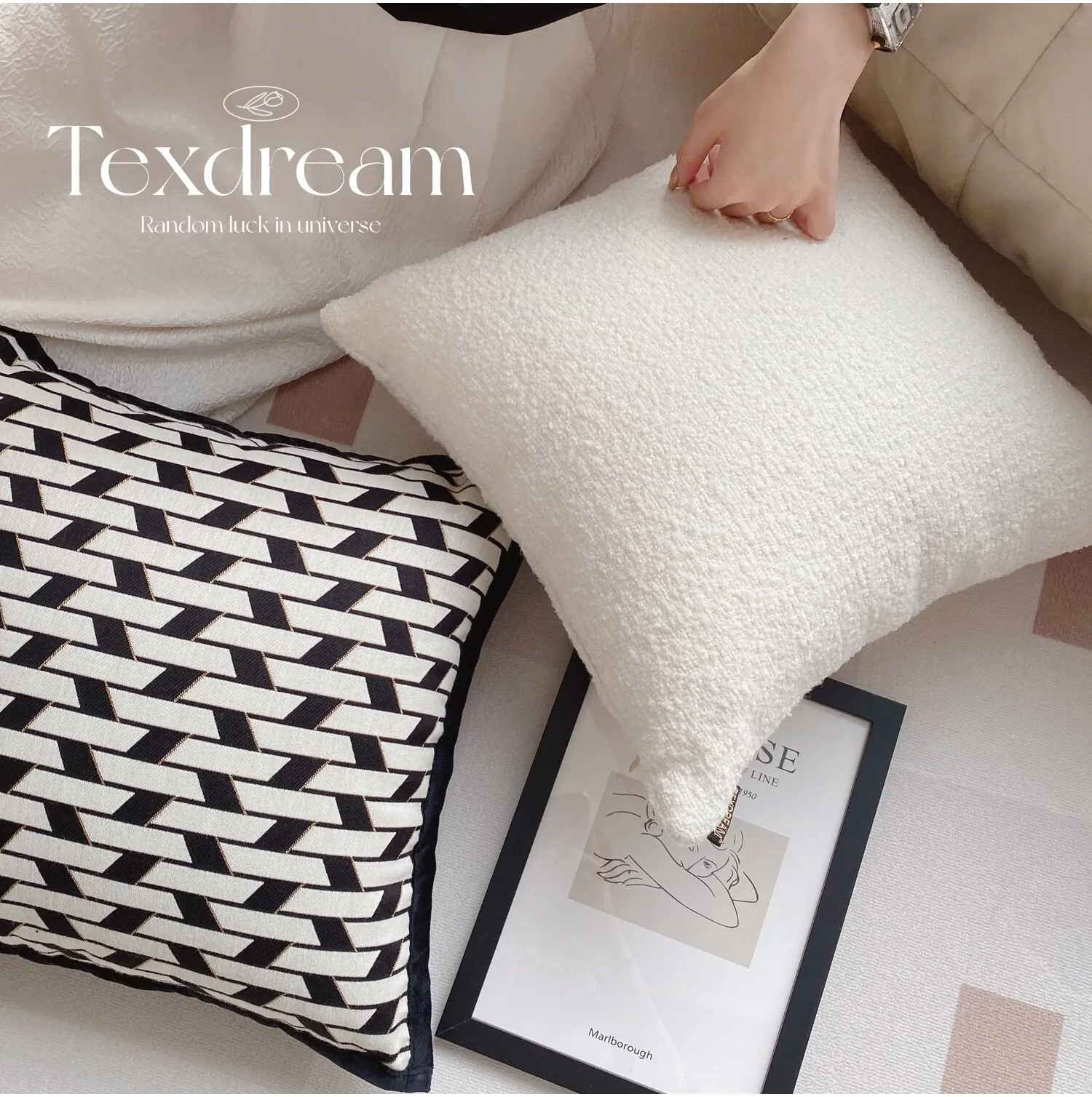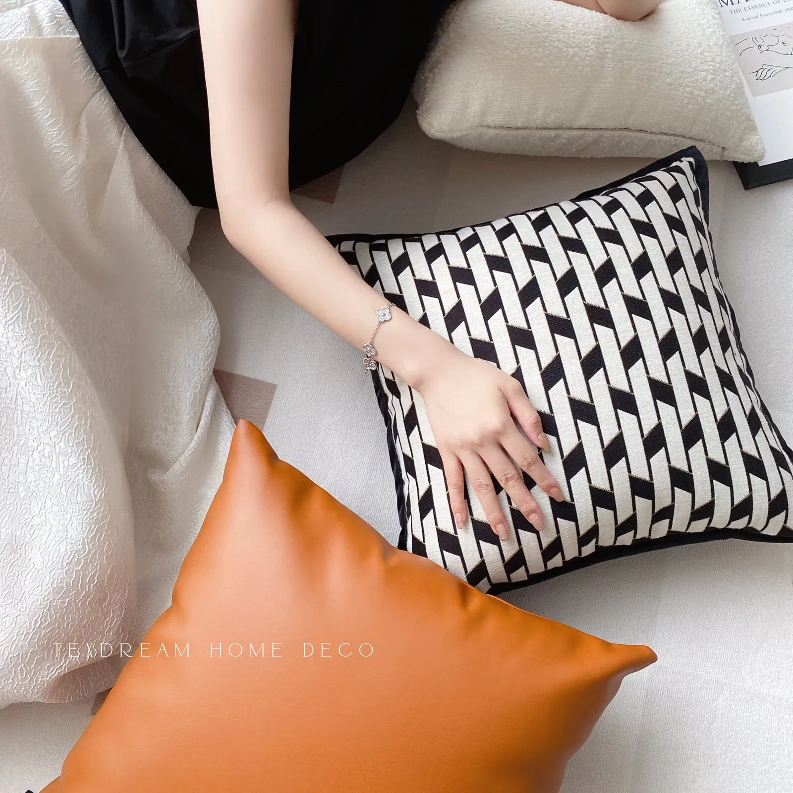 Texdreamのスタイル バウハウス幾何学テクスチャーのクッションカバー|インスタ映えする現代的なラグジュアリー|リビングやソファ、ベッドサイドにぴったりのアクセントピース
