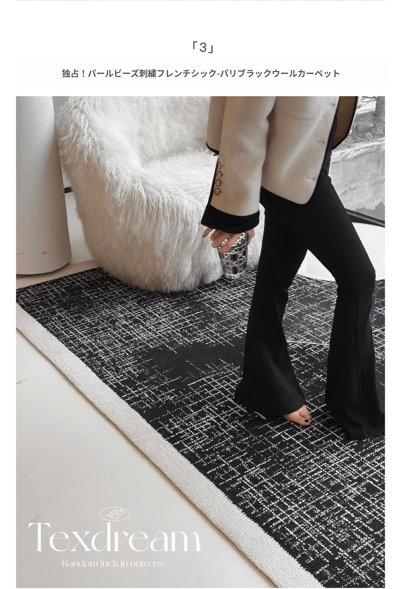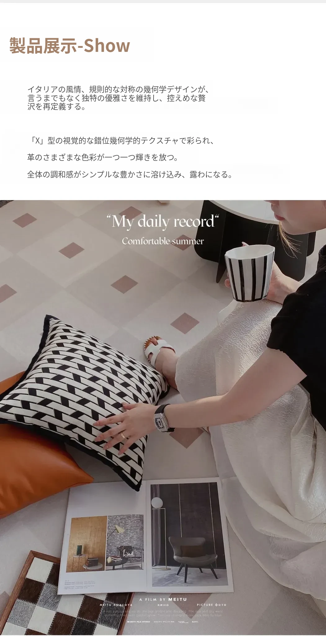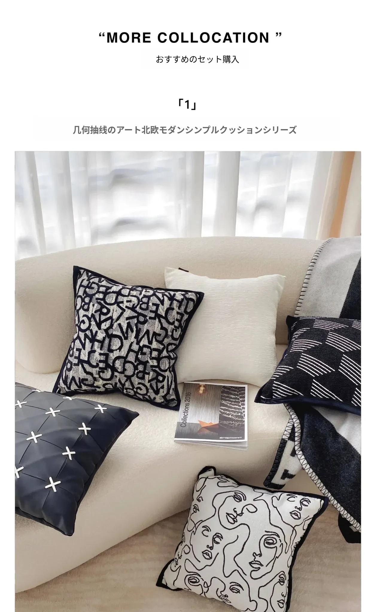 【金縁ジャガード黒白レンガクッション】