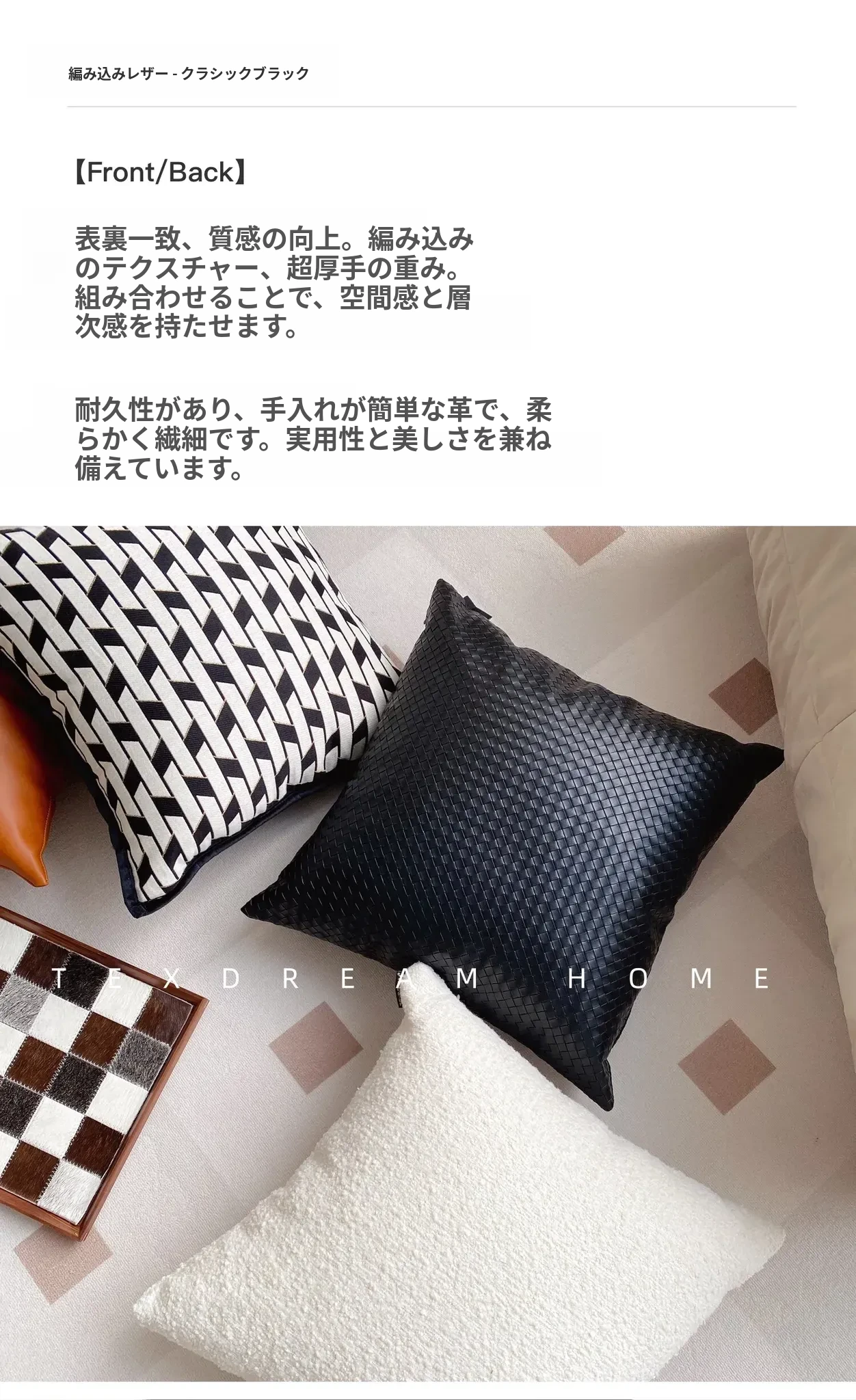 【BV編み込みレザークッション-クラシックブラック】