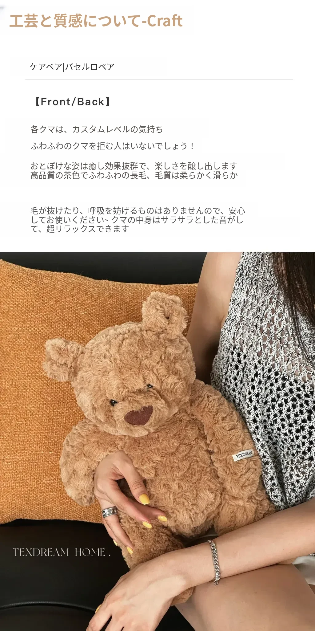 テックスドリームの態度を持つくまのぬいぐるみ - 癒しのテディベア抱き枕、女性にぴったりな毛糸のおもちゃギフト!心を温める特別な存在です。