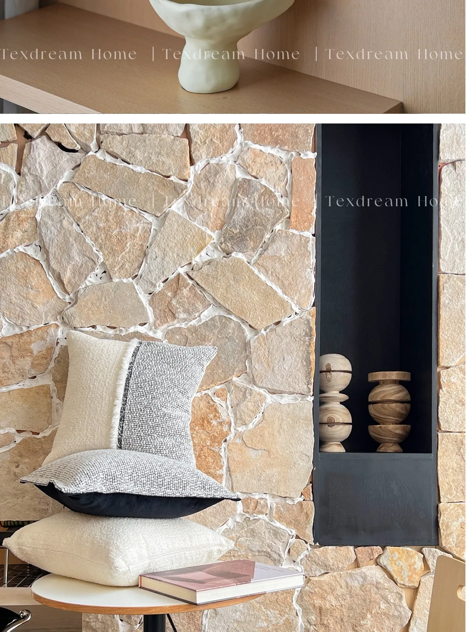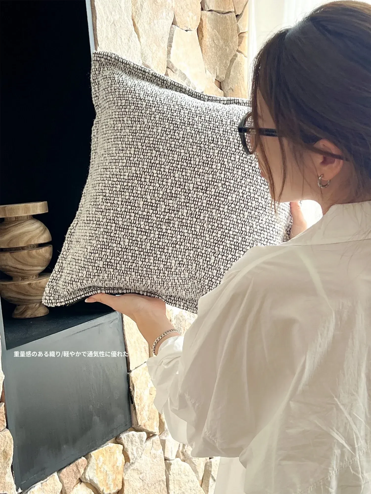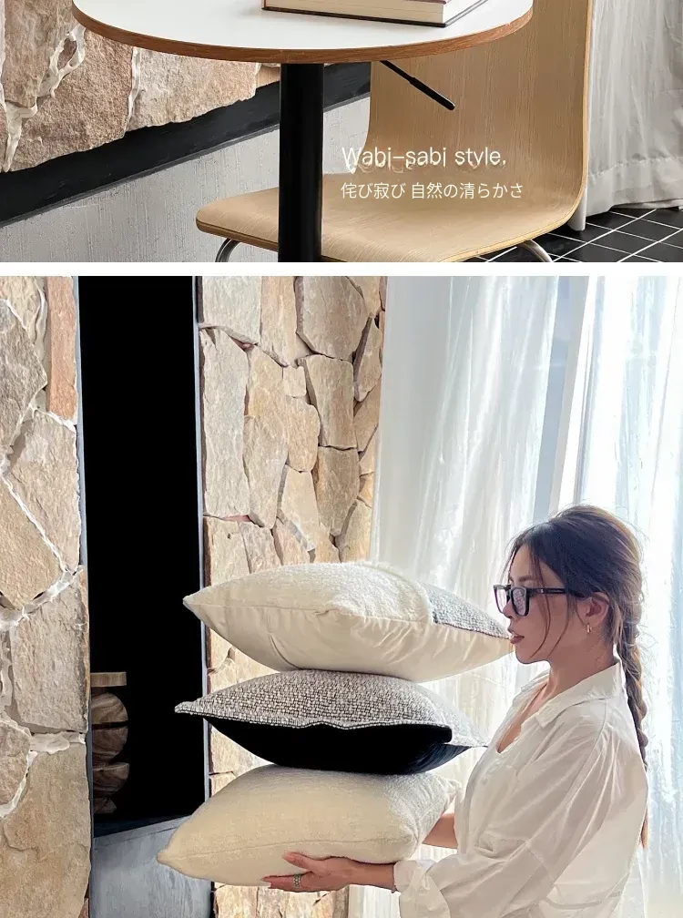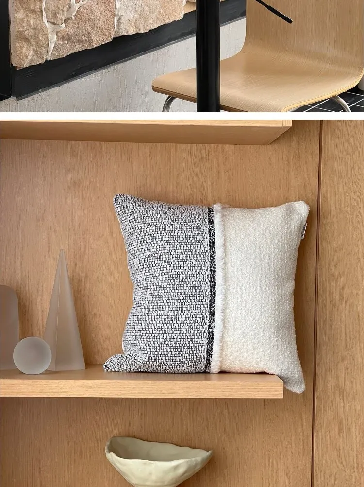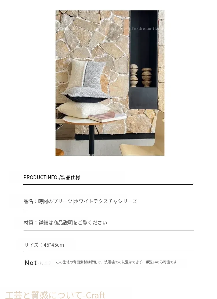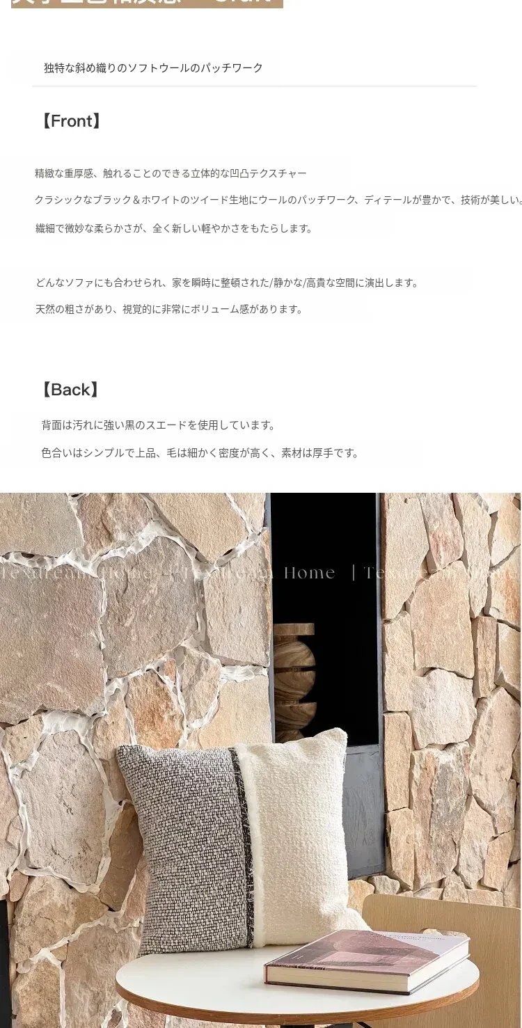 TEXDREAMのアティチュード モノクロテクスチャー シンプルなソファクッション 侘寂風ホテルスタイル 高級感溢れるベッドサイドクッション