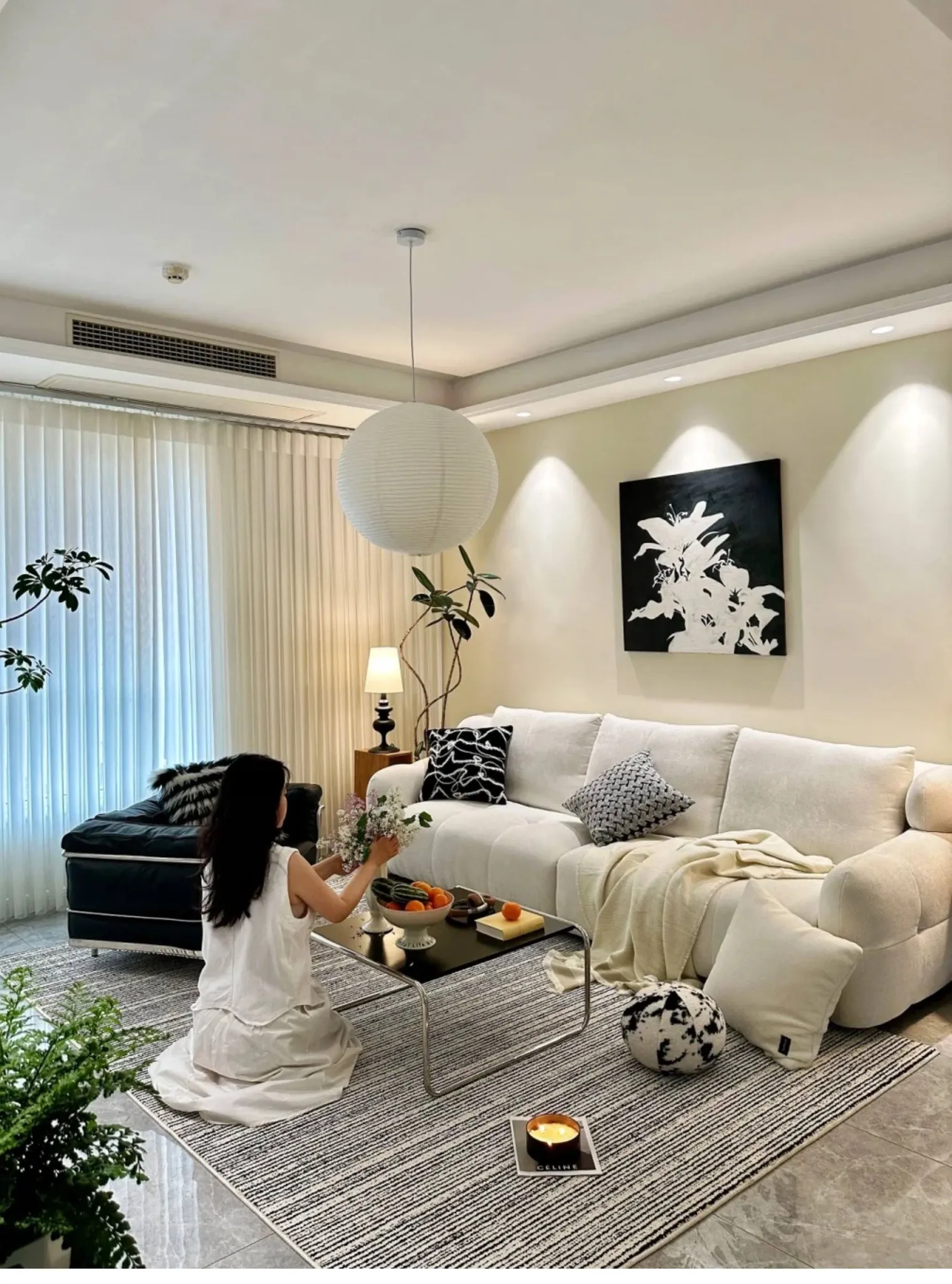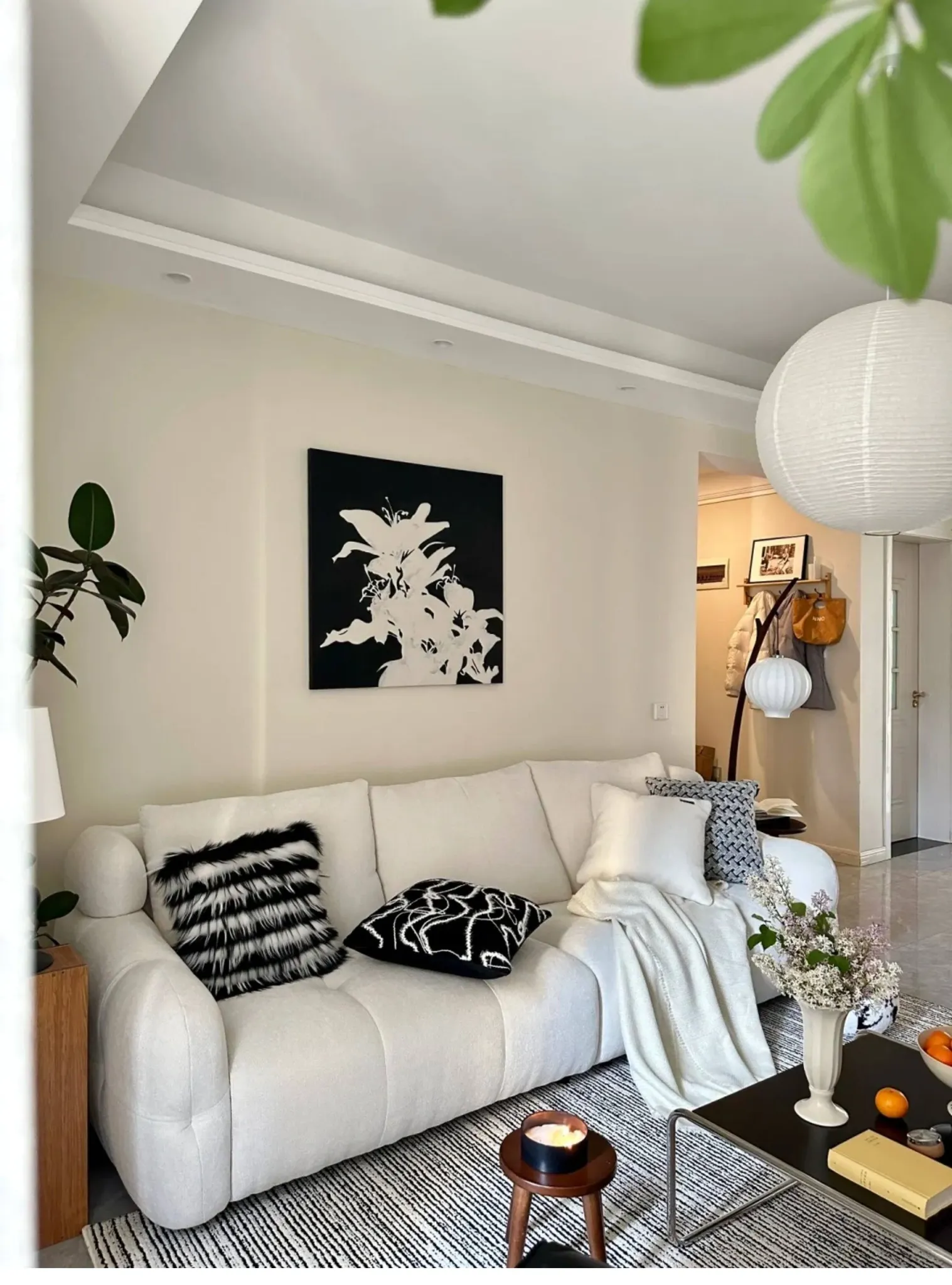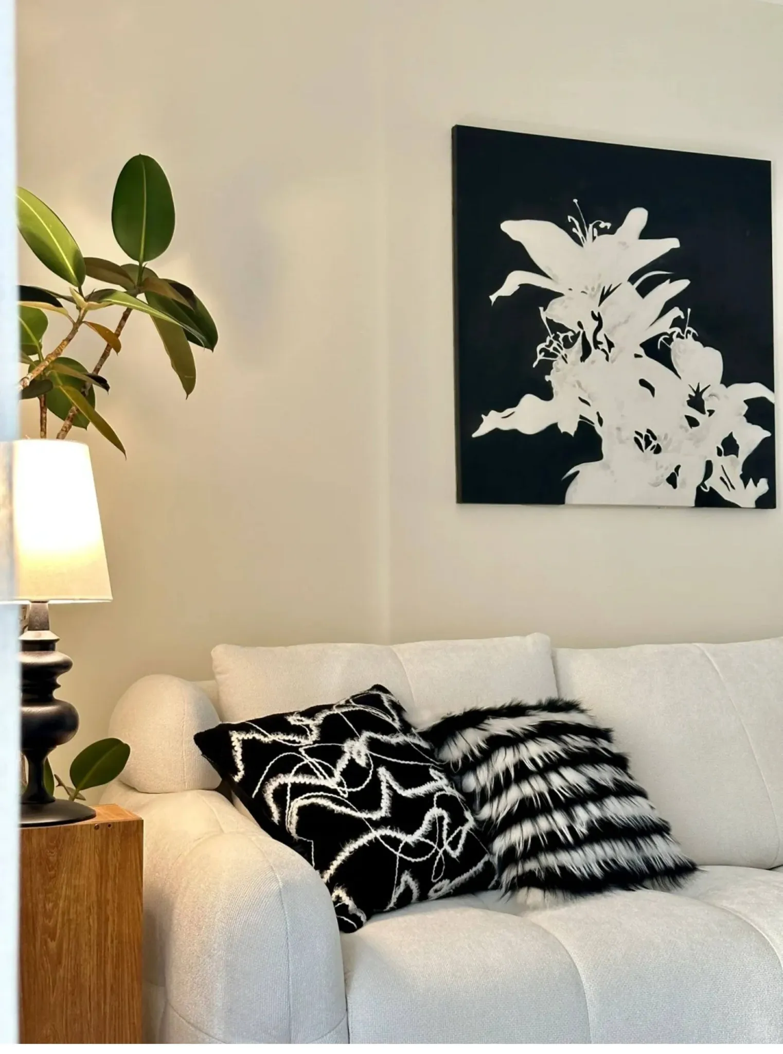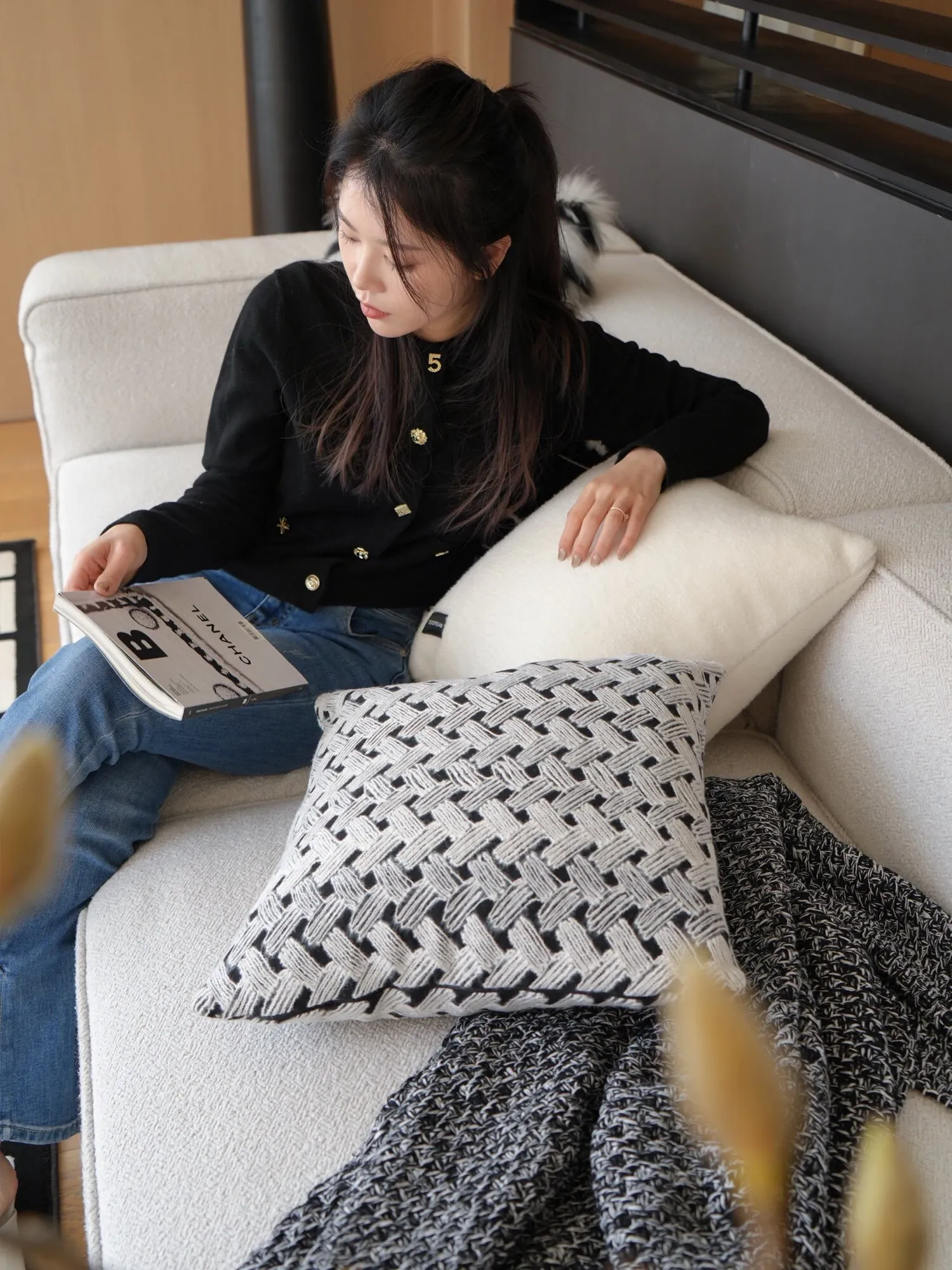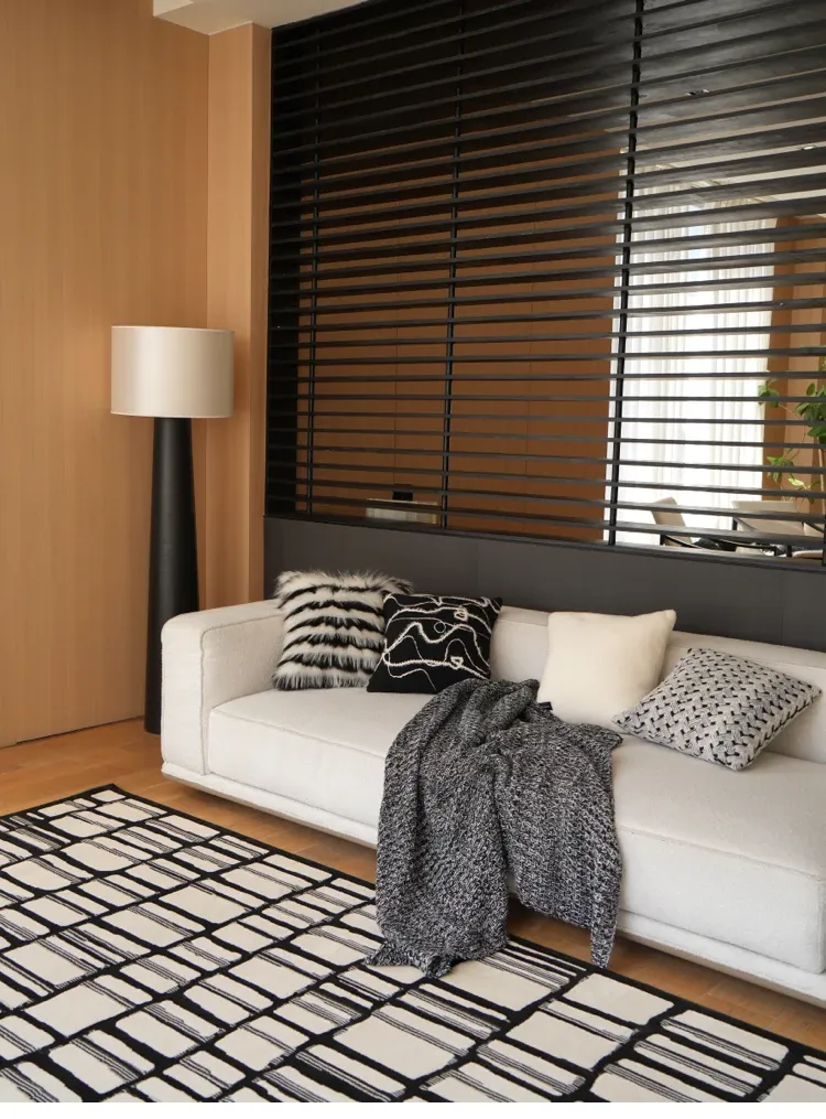 Texdreamのスタイル ブラック&ホワイトのテクスチャー モダンでラグジュアリーなミンクファーの抱き枕 ソファやモデルルームにぴったりの高級感あふれるクッション