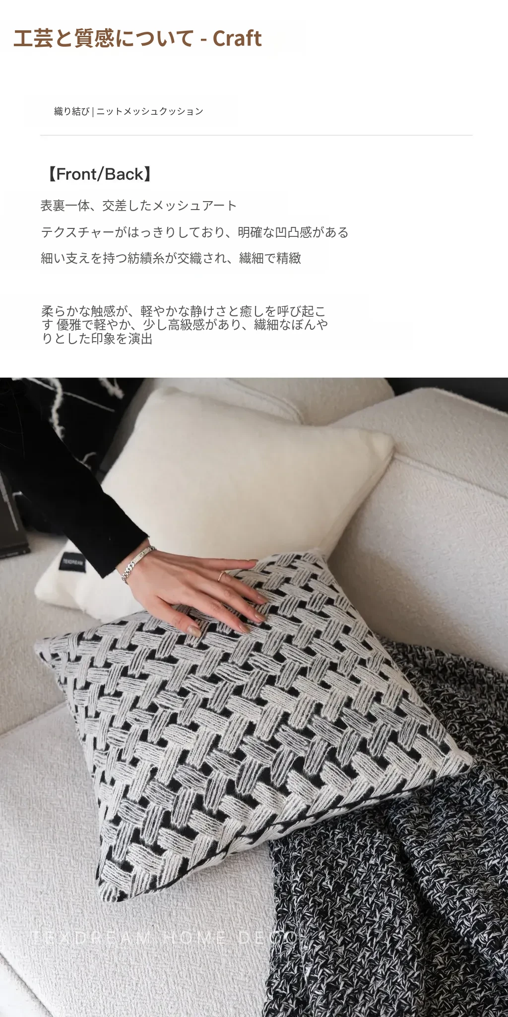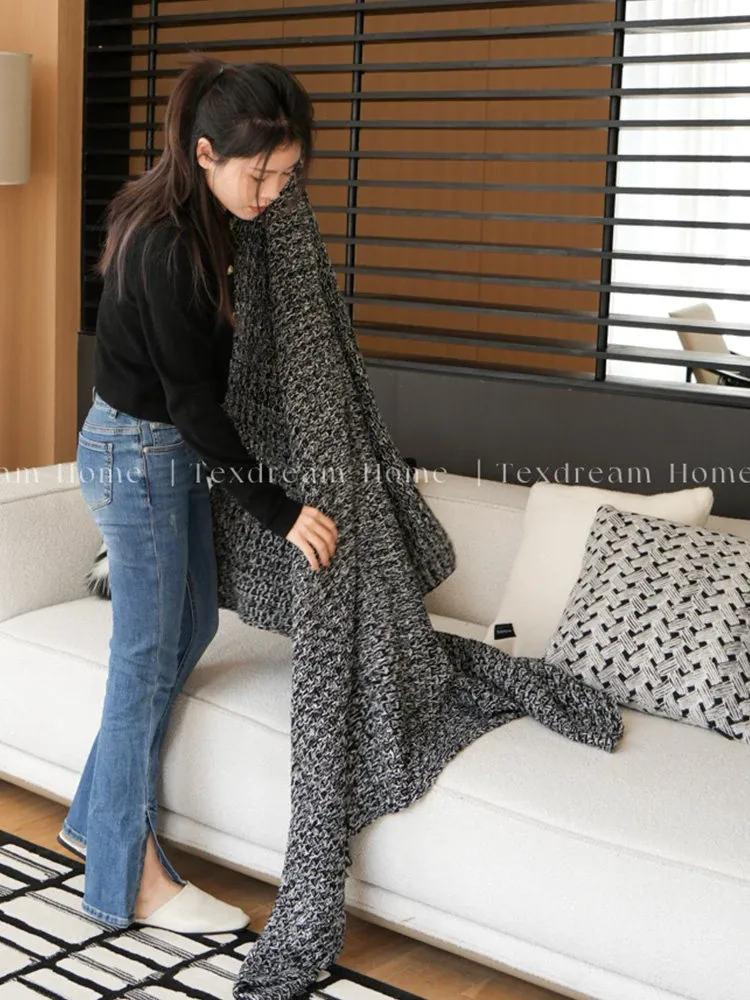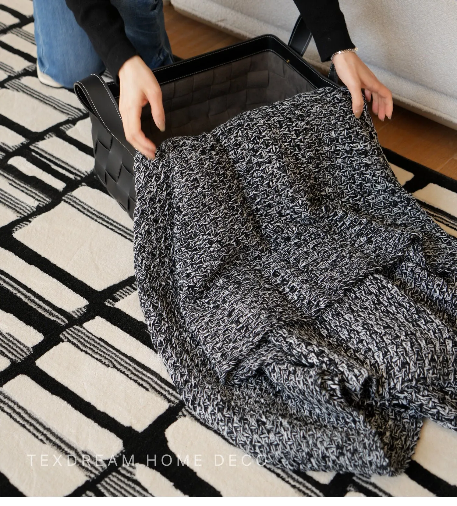 【黒白のテクスチャー | 5点セット(クッション4個 + カバー毛布1個)】