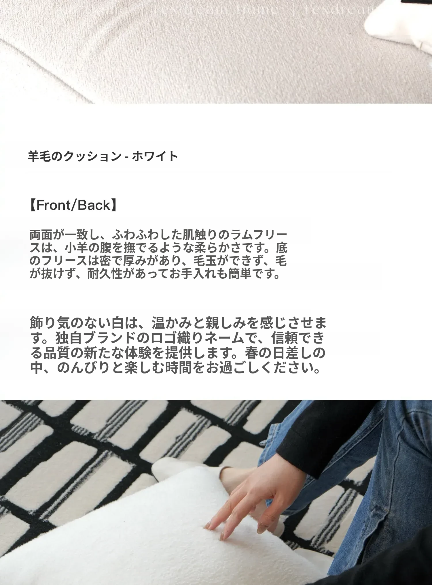 【ラムウールのぬいぐるみクッション - ホワイト】