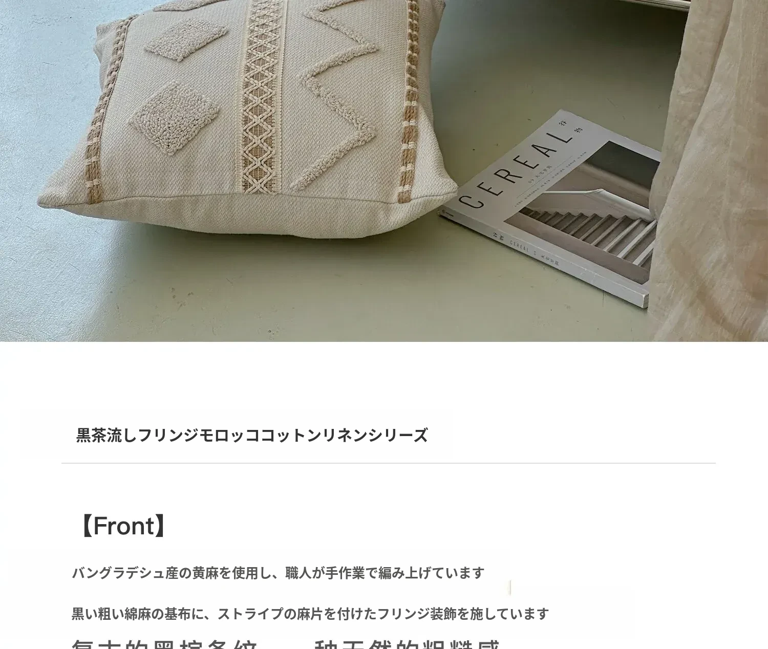【黒茶フリンジ l モロッコ綿麻】腰枕
