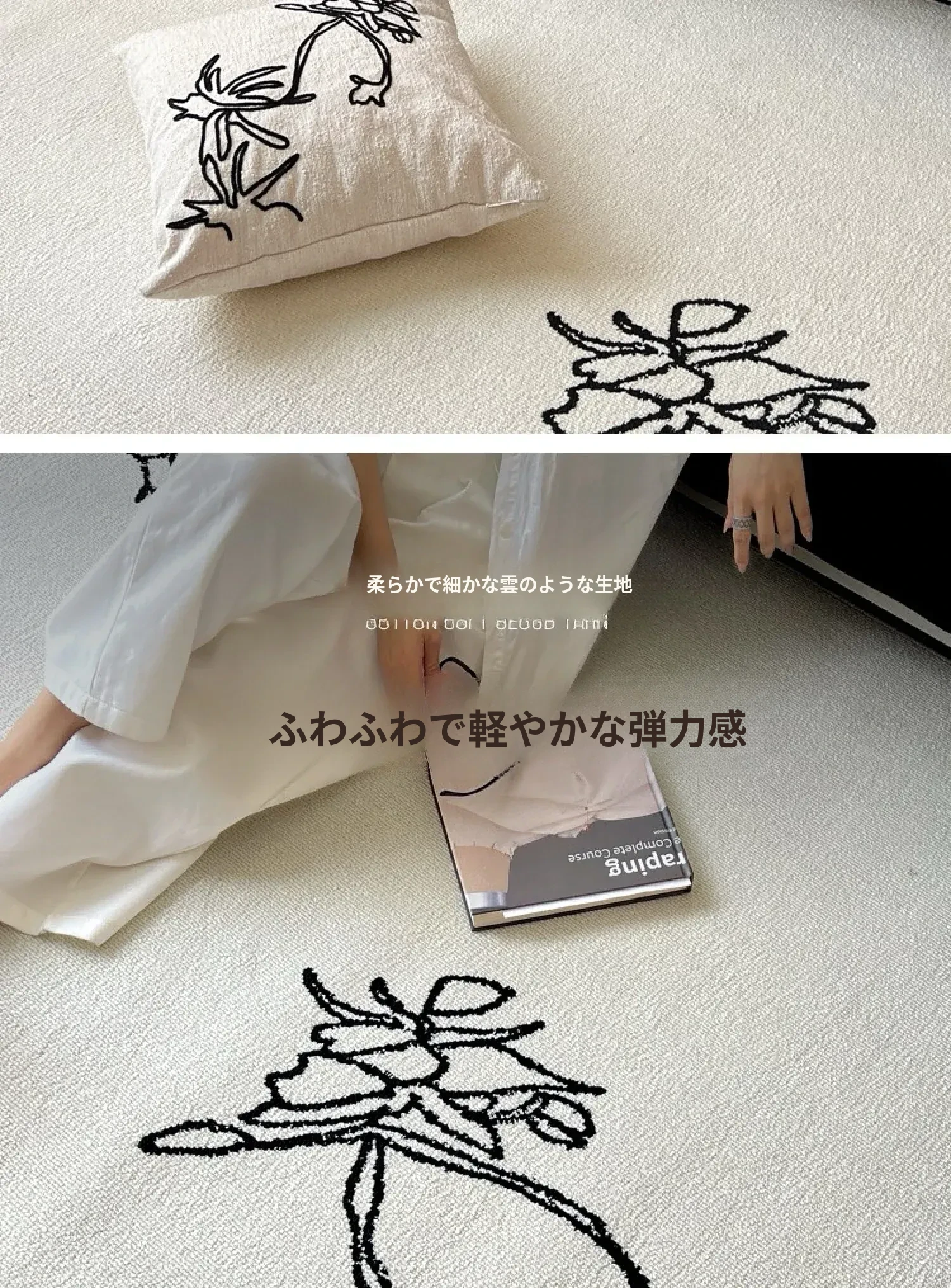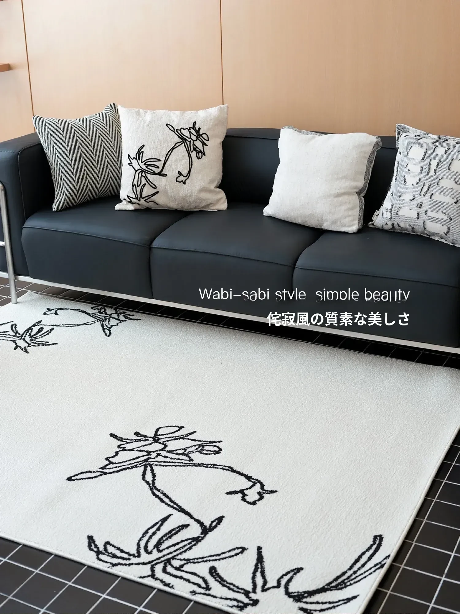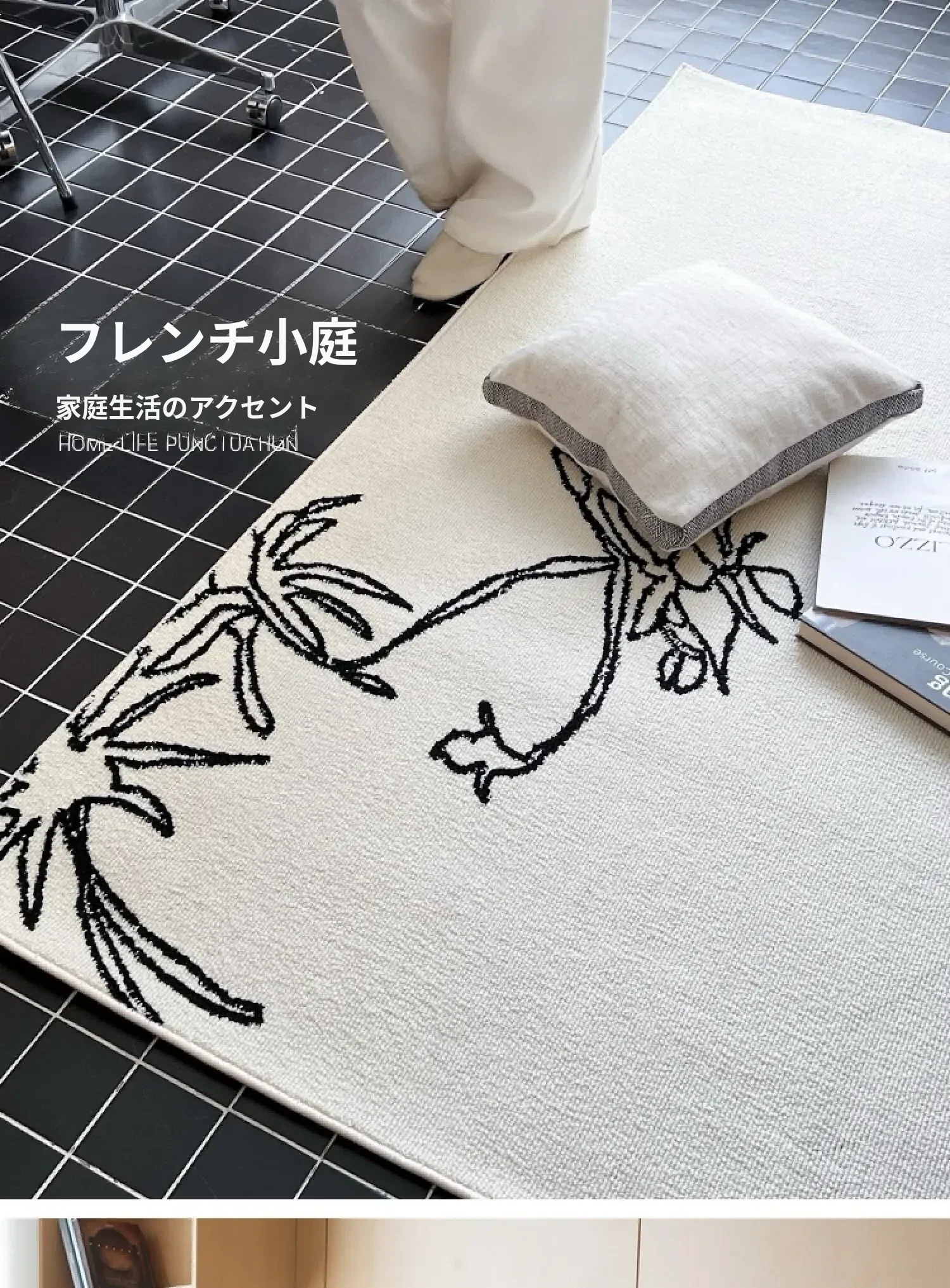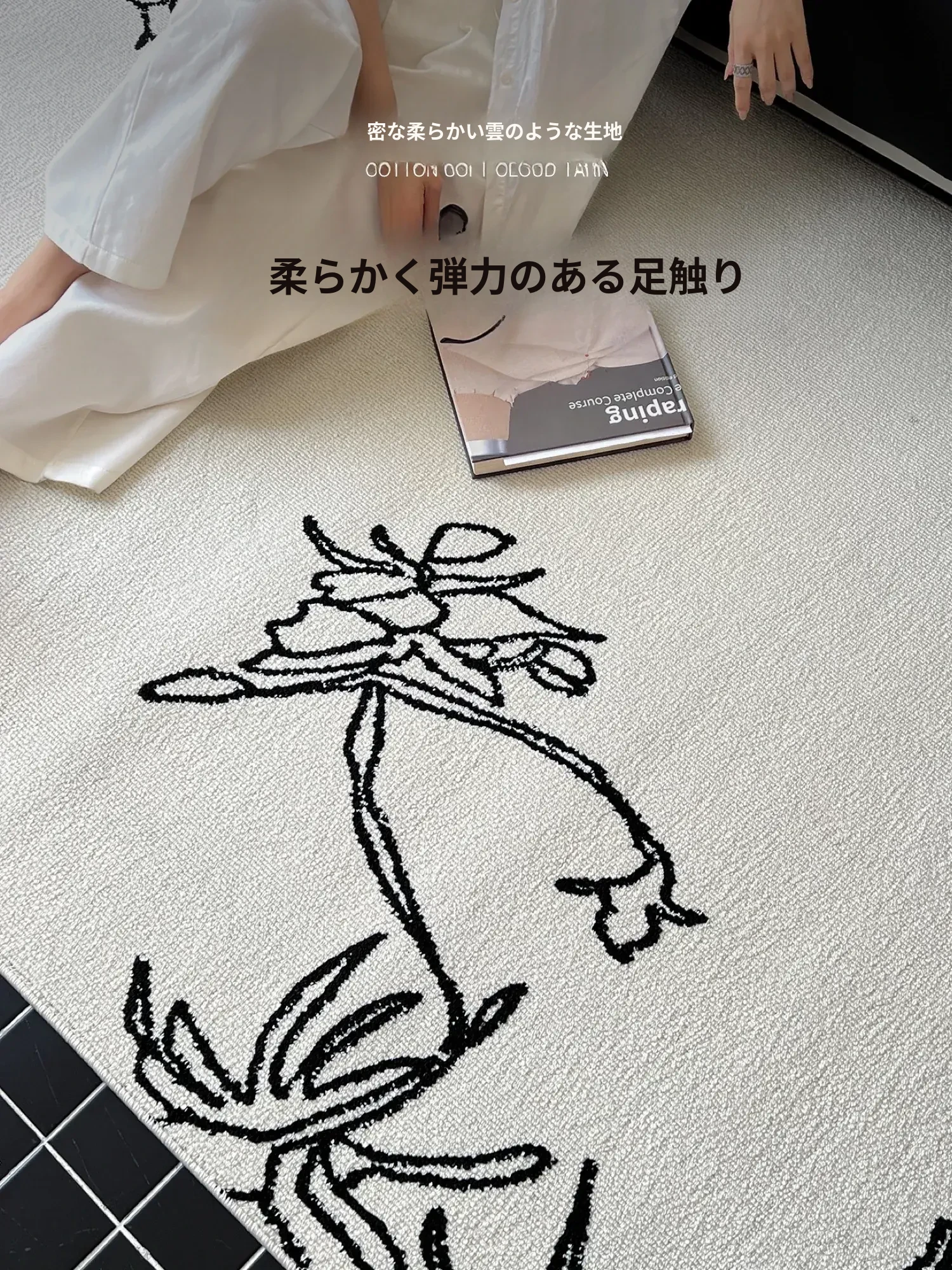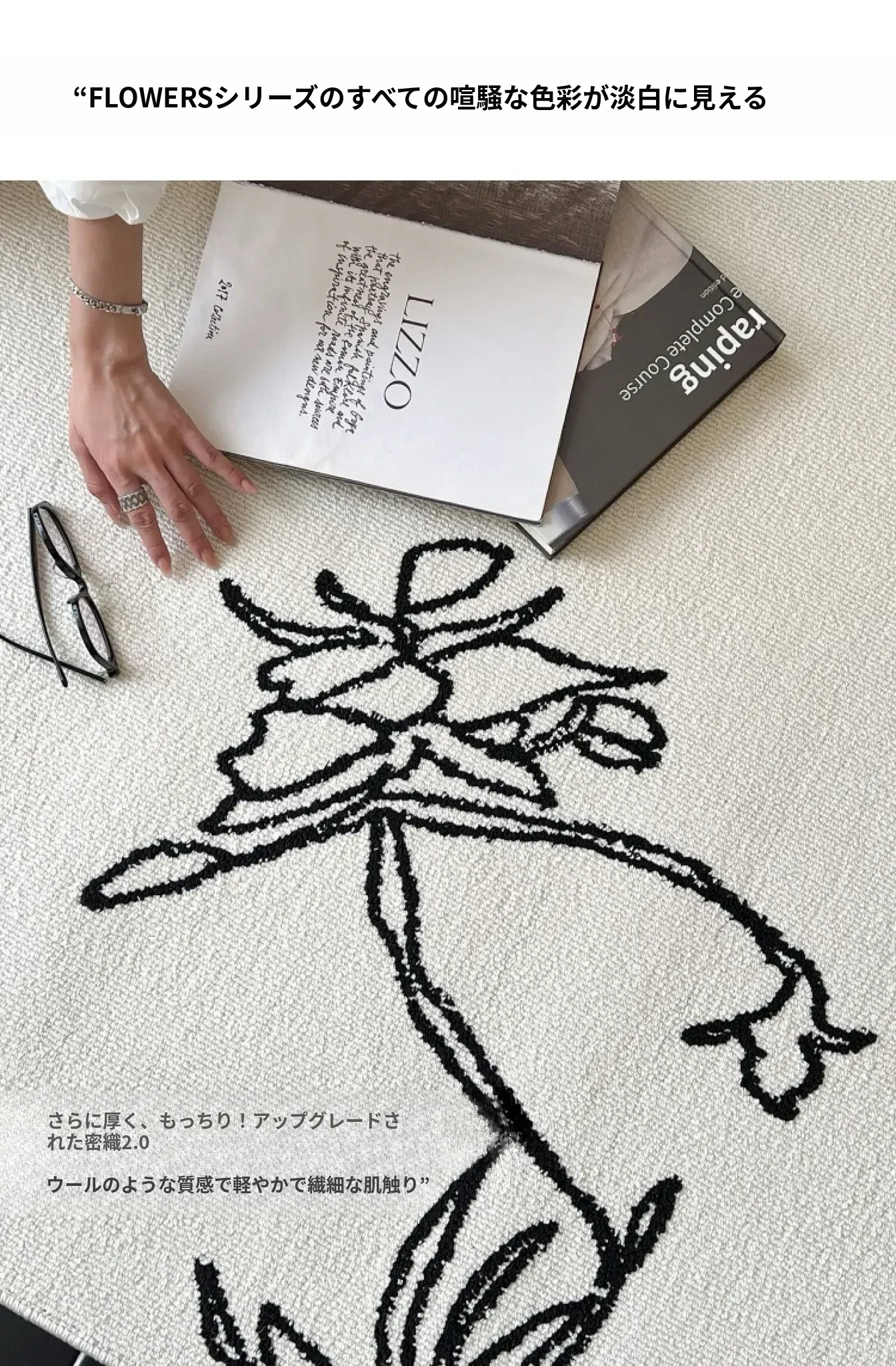 TEXDREAMの美しい椿デザインのラグマット - 高級感あふれるウールラグ、リビングやベッドサイドに最適!あなたの空間を豪華に演出します。