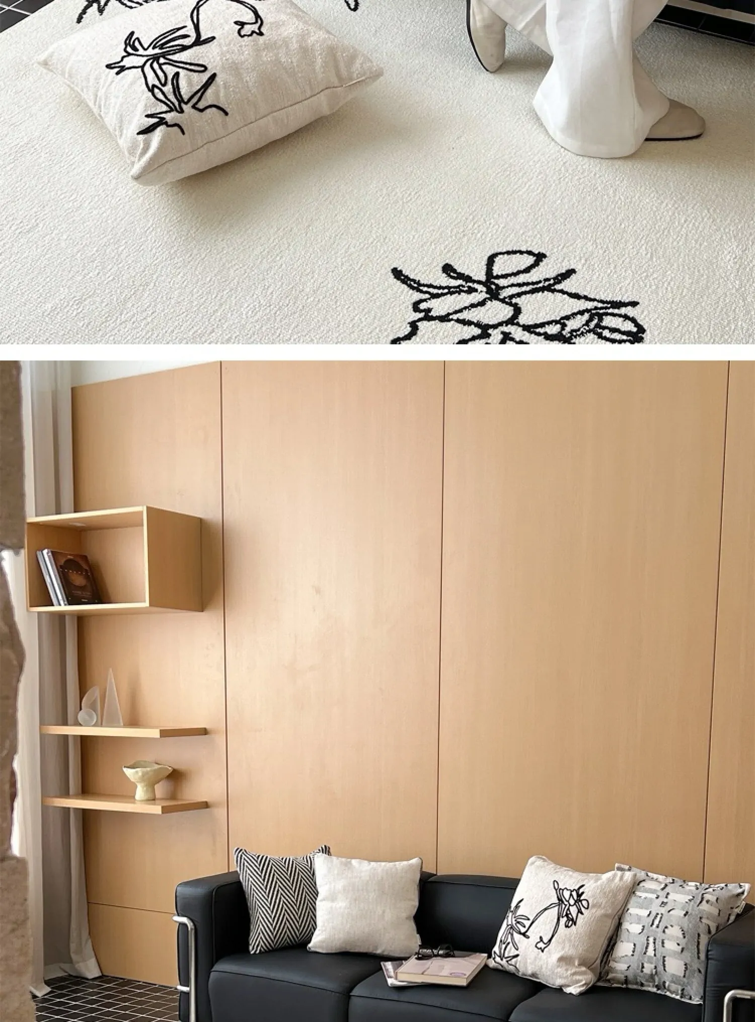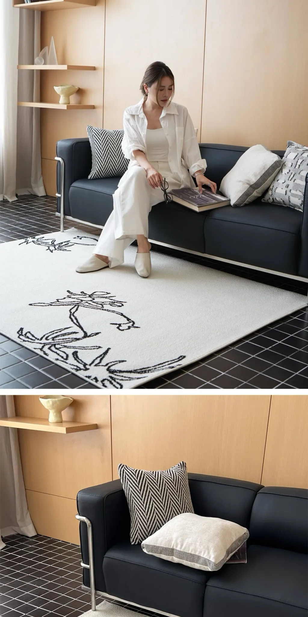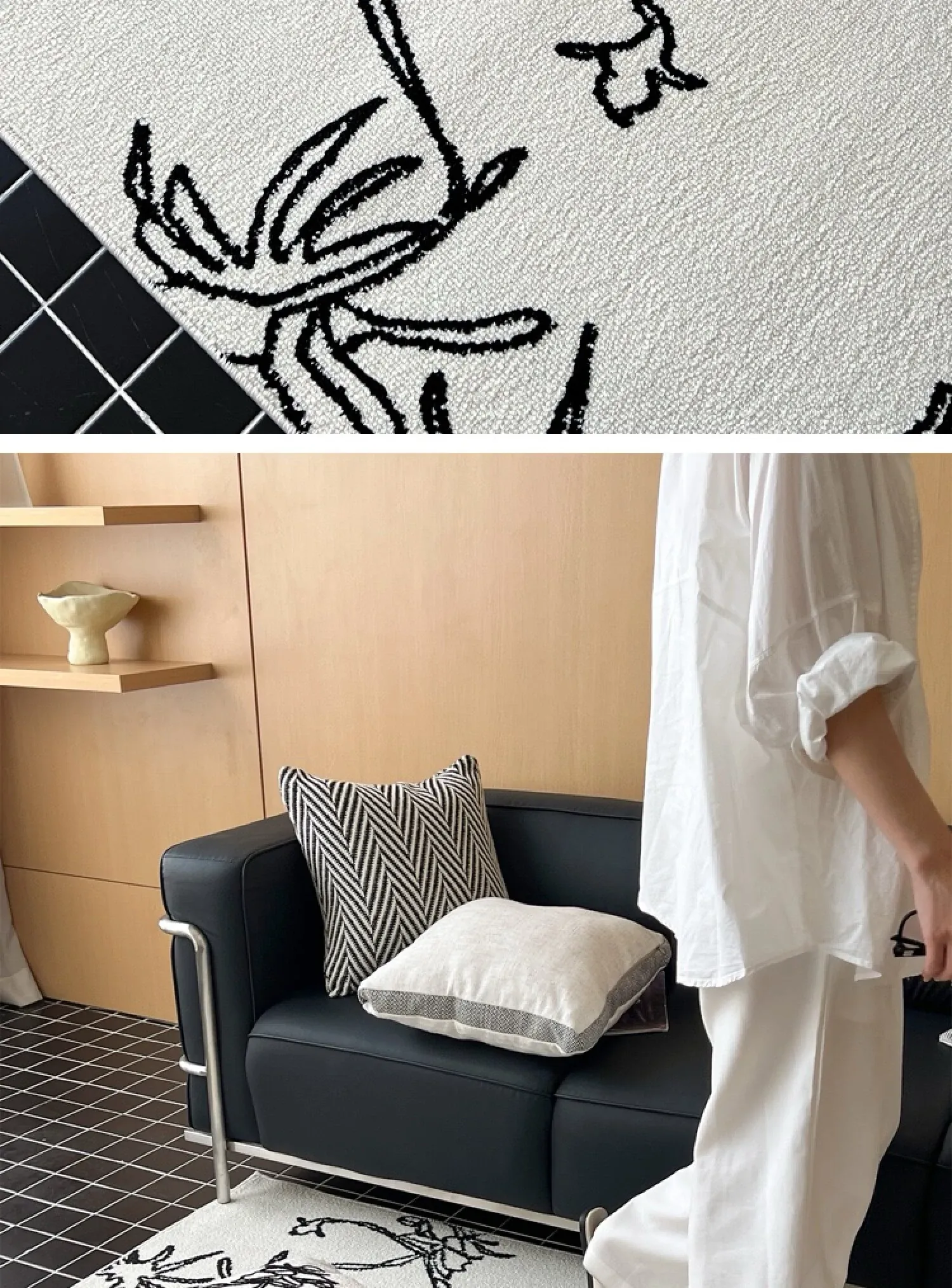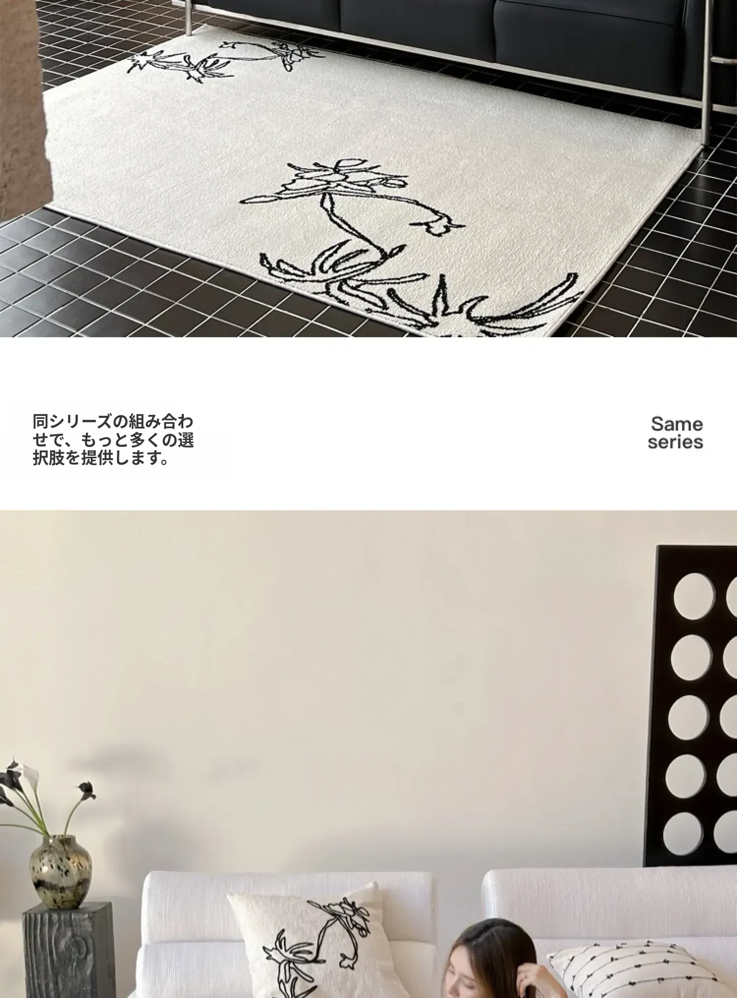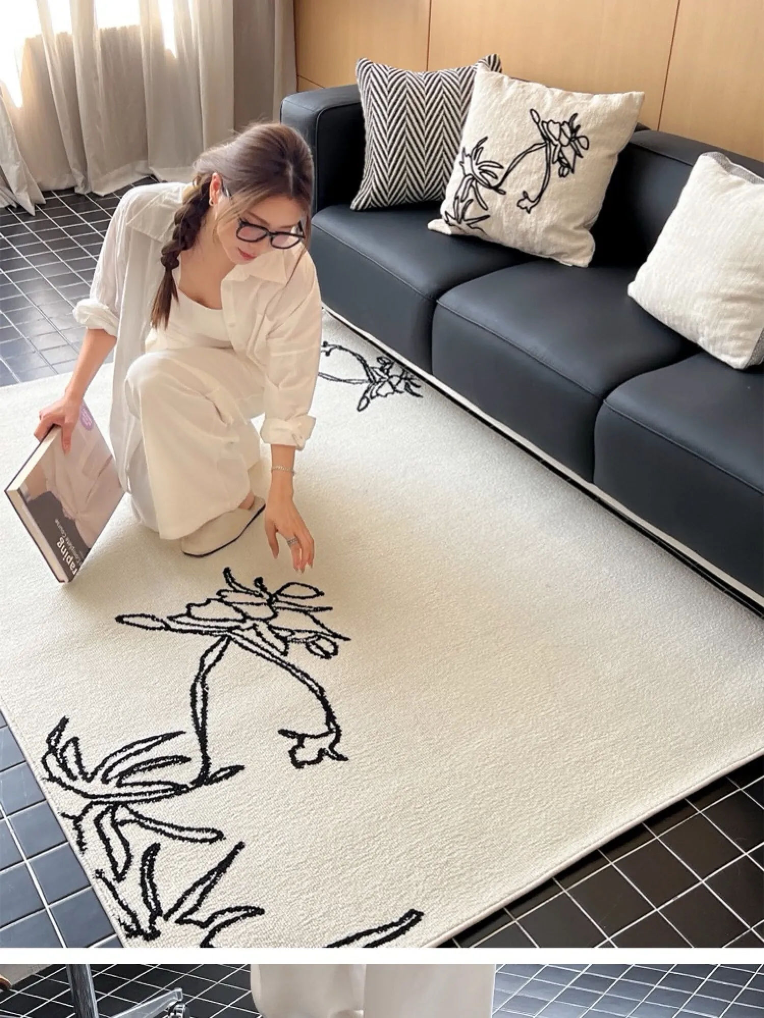 TEXDREAMの美しい椿デザインのラグマット - 高級感あふれるウールラグ、リビングやベッドサイドに最適!あなたの空間を豪華に演出します。