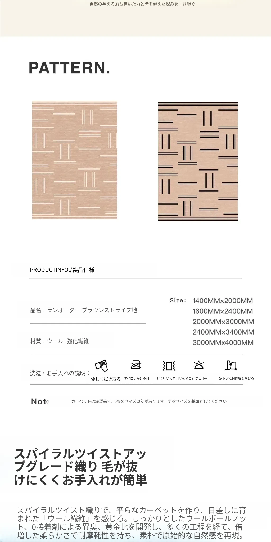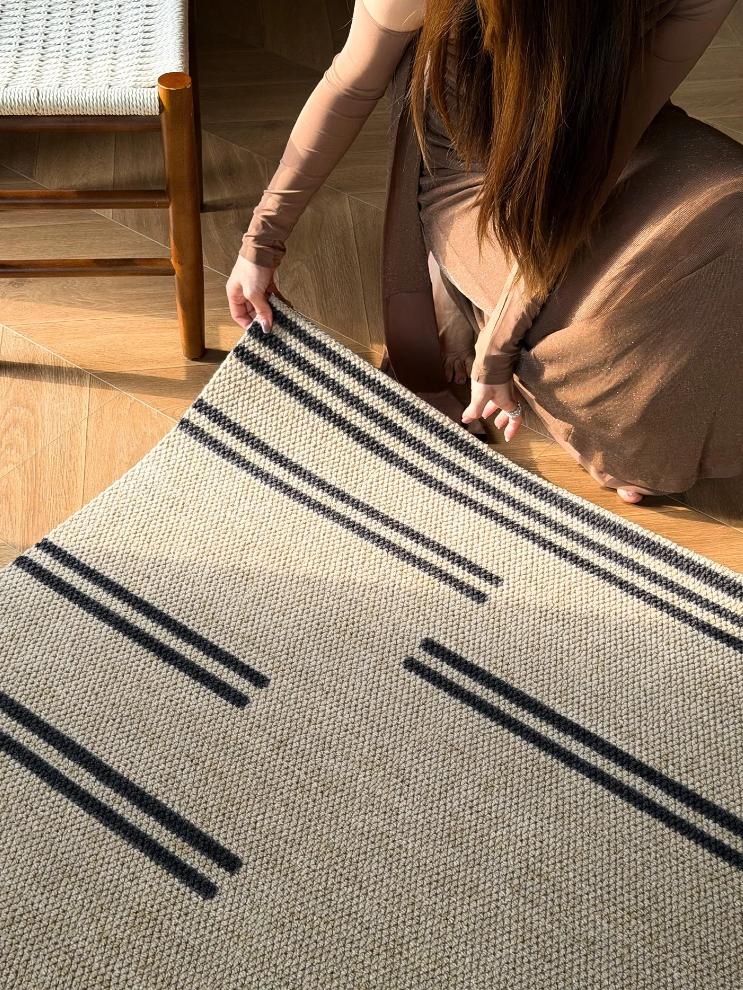 乱序 | ブラックブラウンストライプウールカーペット
