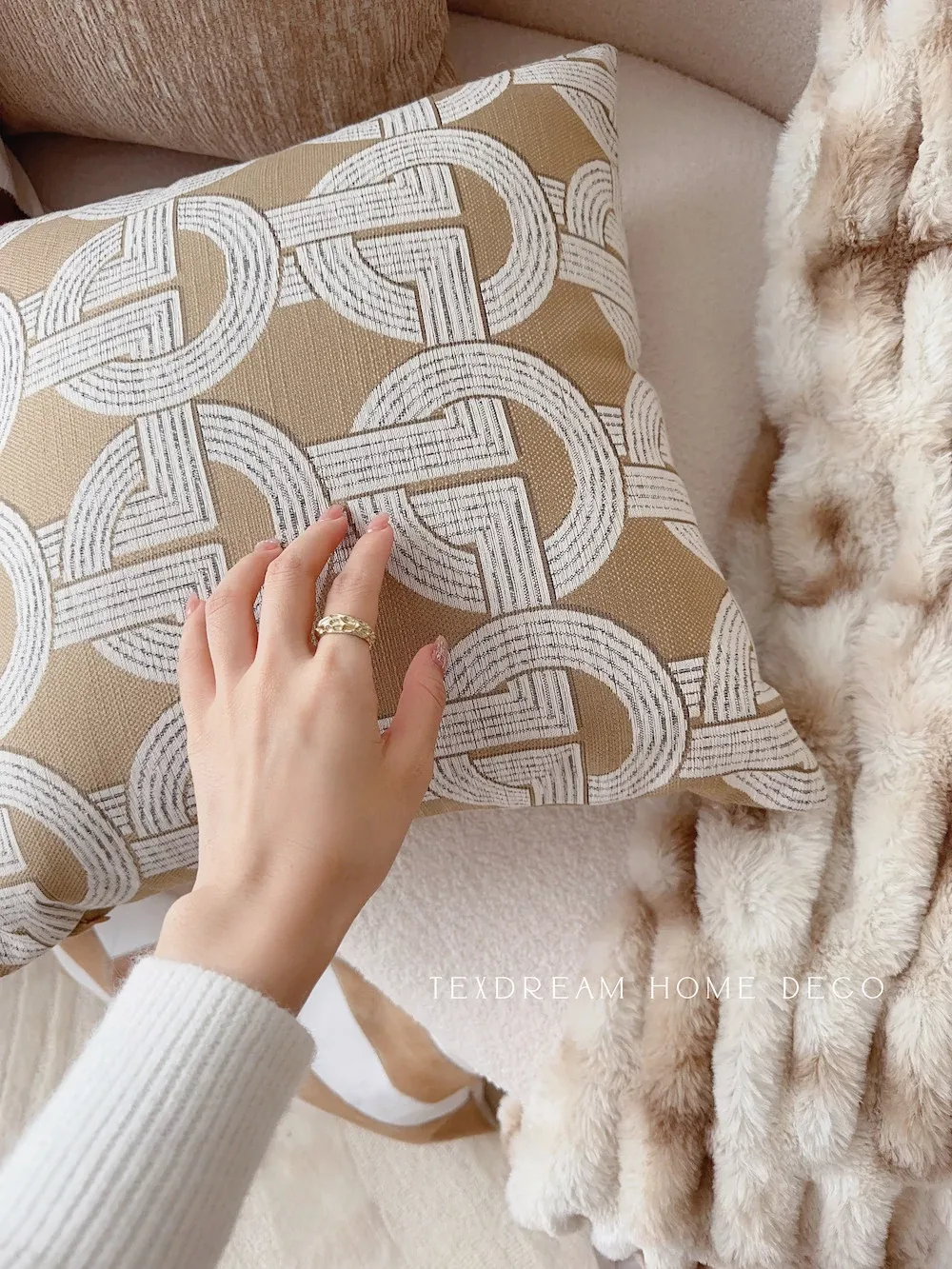 テックスドリームのスタイル ココクリス フレンチヴィンテージソファ用クッション 軽やかなラグジュアリー ファー付きベッドヘッドクッションで、あなたのリビングをおしゃれに演出!
