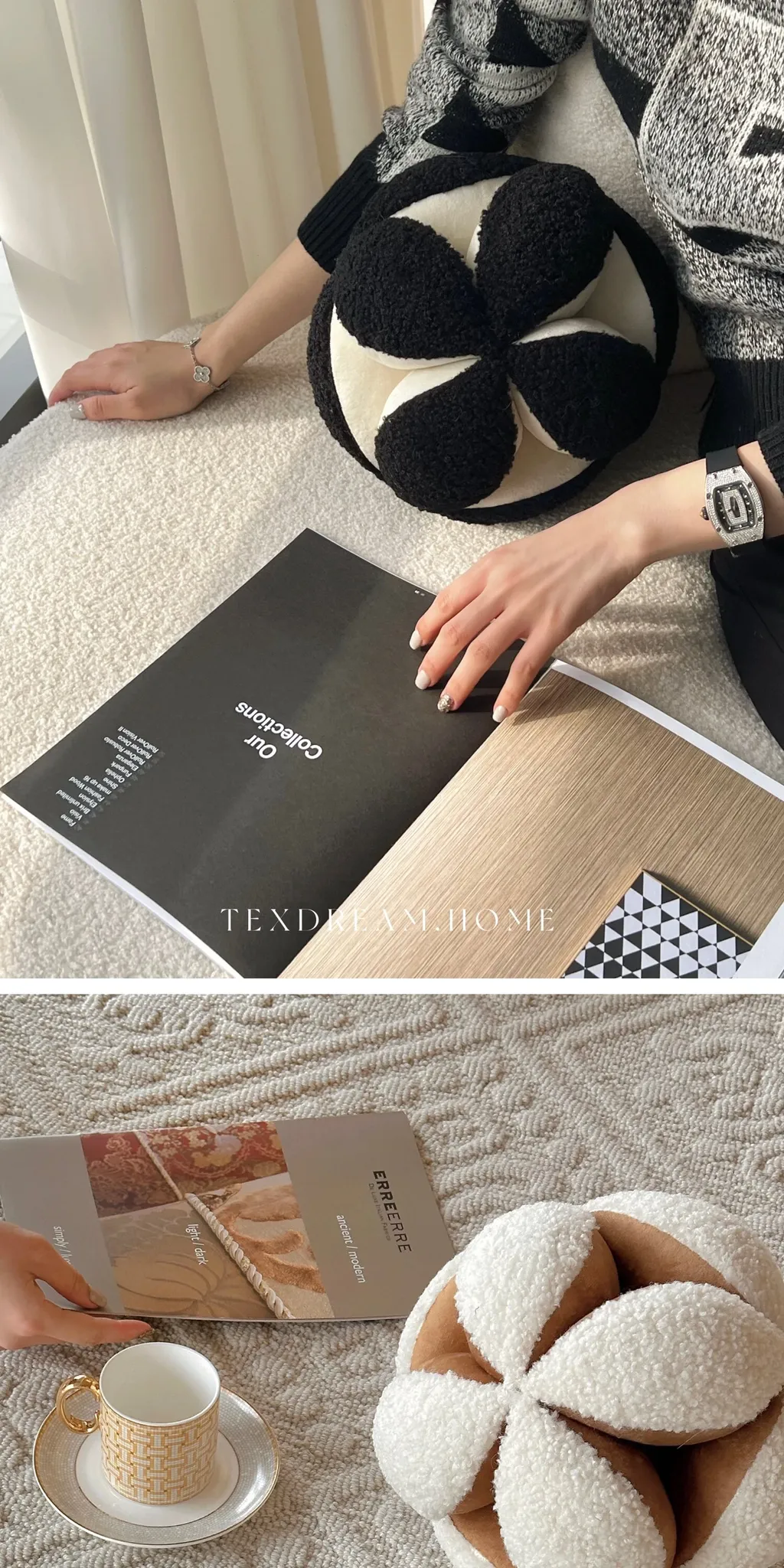 テックスドリームの可愛いフラワーボールクッション - 新中式デザインのユニークな形、モダンでシンプル、上質感溢れるおしゃれな抱き枕!あなたの空間に華やかさをプラス!